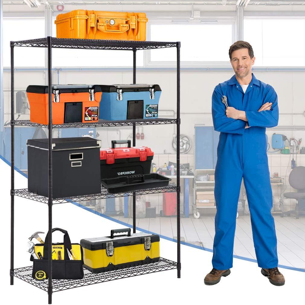 BestOffice 4-Tier Wire Shelving Unit Steel Large Metal Shelf Organizer Garage Storage Shelves Heavy Duty NSF Certified Commercial Grade Height Adjustable Metal Rack 4000 LBS Capacity (Black)(Black)