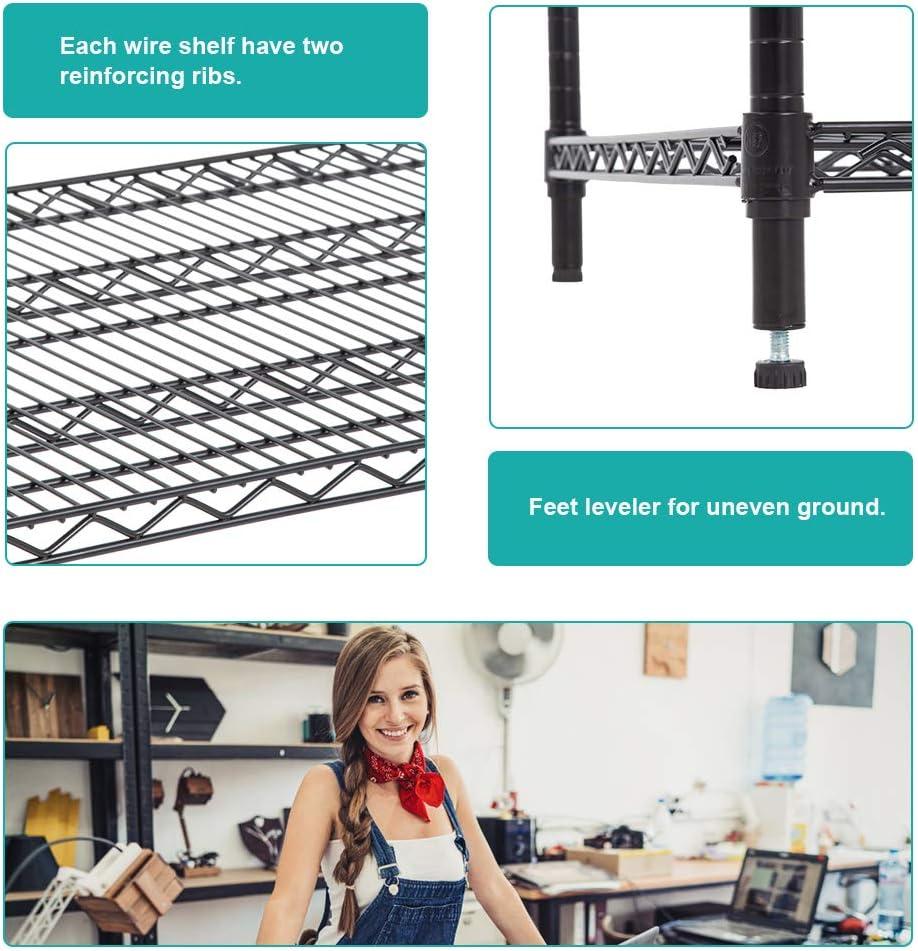 √【STURDY】: The storage shelves use durable steel construction,and to resist dirt buildup and corrosion. The wire shelving unit can take a lot of weight.The metal shelf is very sturdy, each wire shelf have two reinforcing ribs.Maximum weight capacity per shelf is 1000lbs when equally distributed on feet levelers. storage shelves wire shelving unit metal shelf.