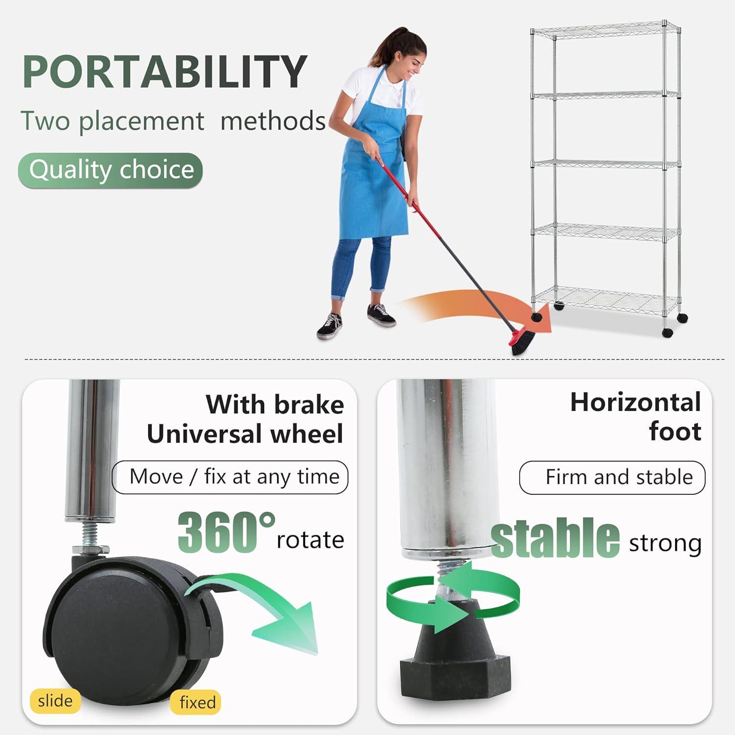 VERTICAL STORAGE SOLUTION: The slim metal shelving unit offers tiered space-efficient storage while minimizing floor footprint, ideal for creating extra room in tight or limited storage areas.