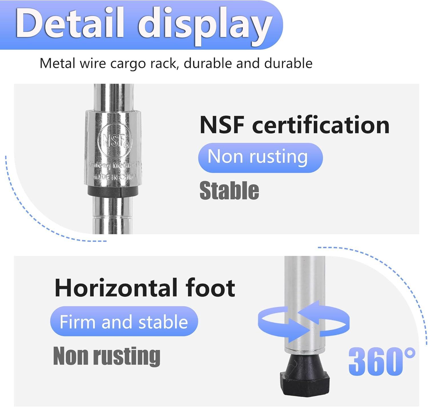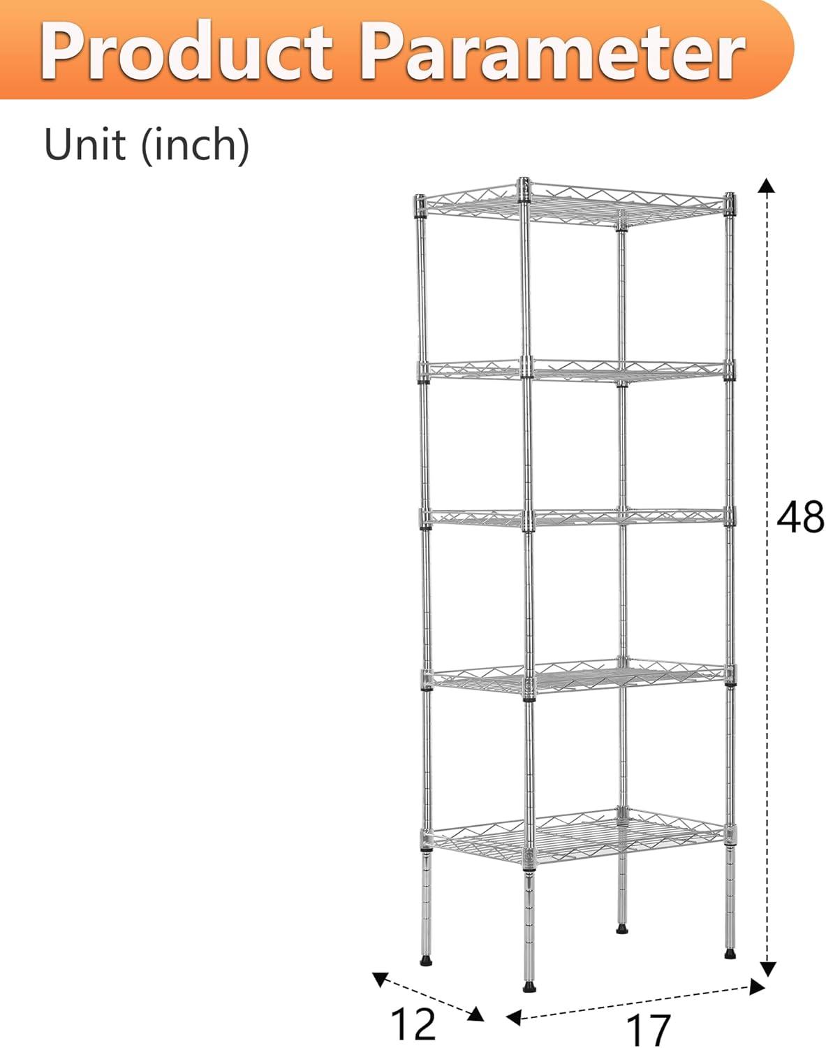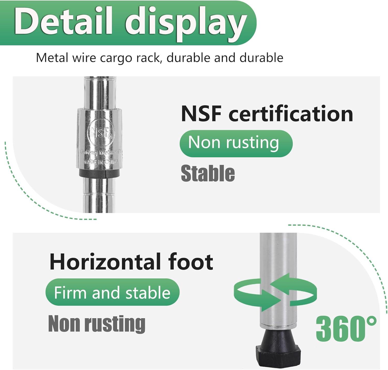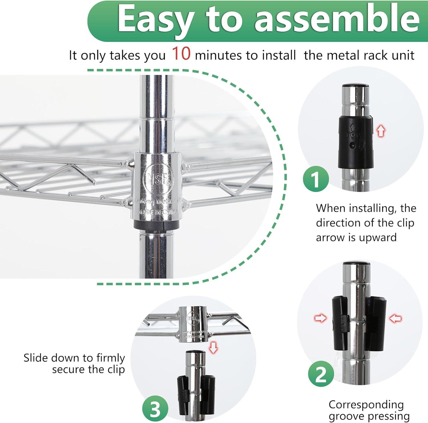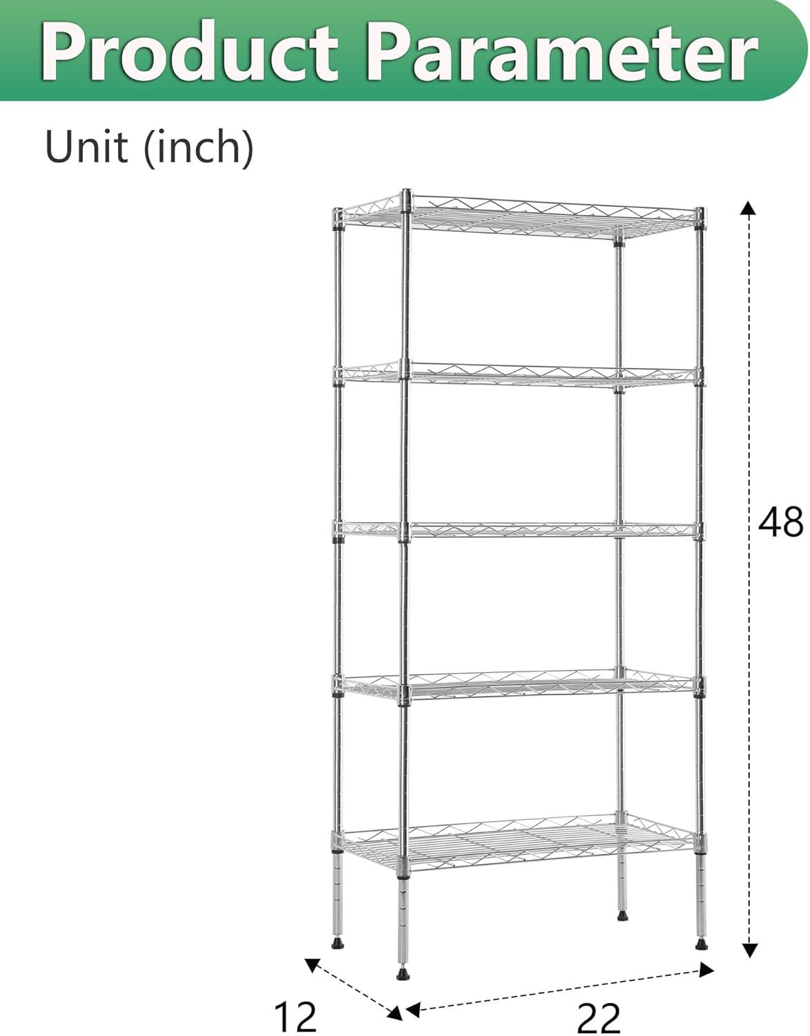 The storage shelves provide an enormous amount of space for you. You can use this metal shelf in the kitchen, bedroom or garage. This wire shelving is sure to make your room more tidy.
