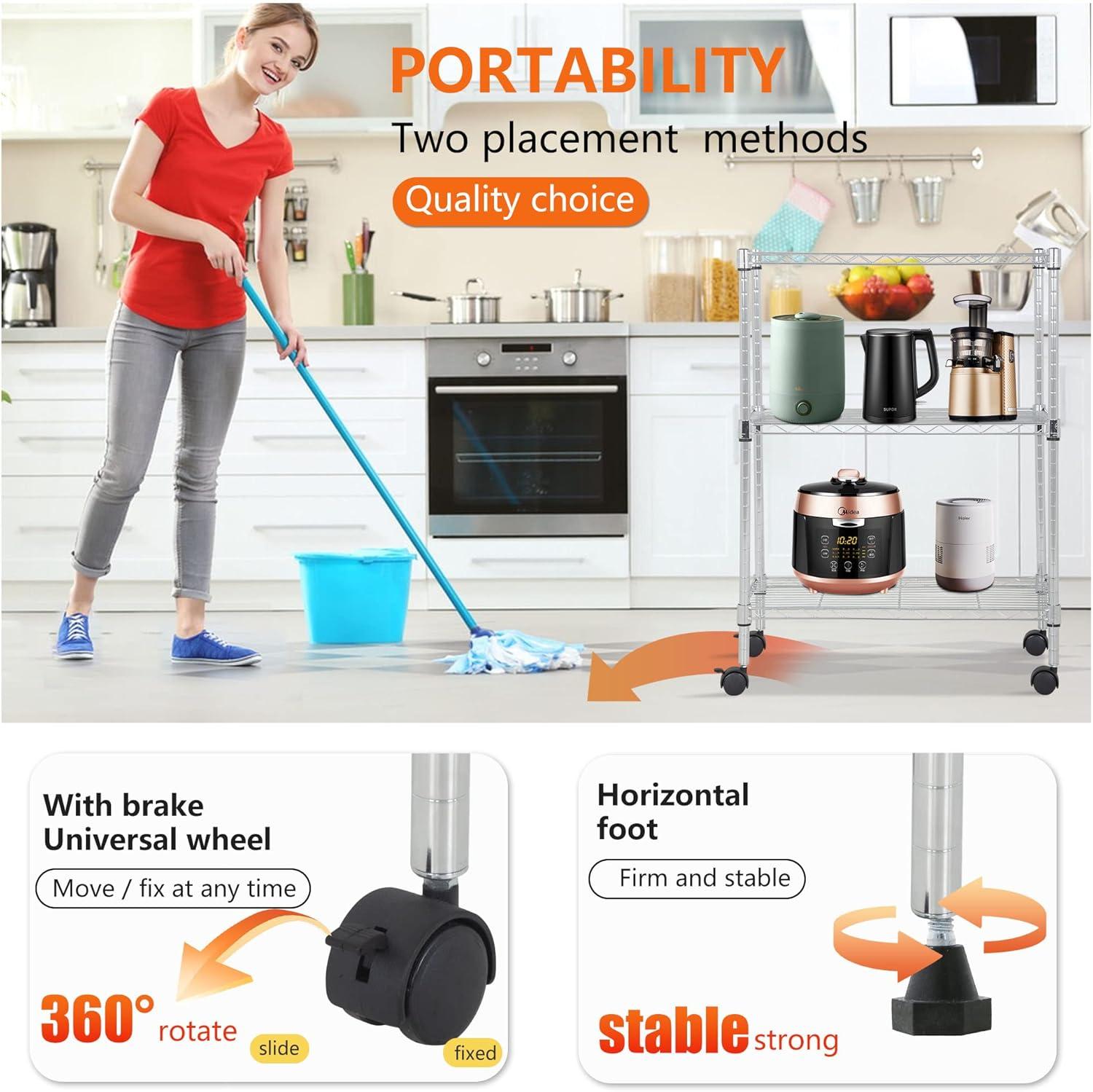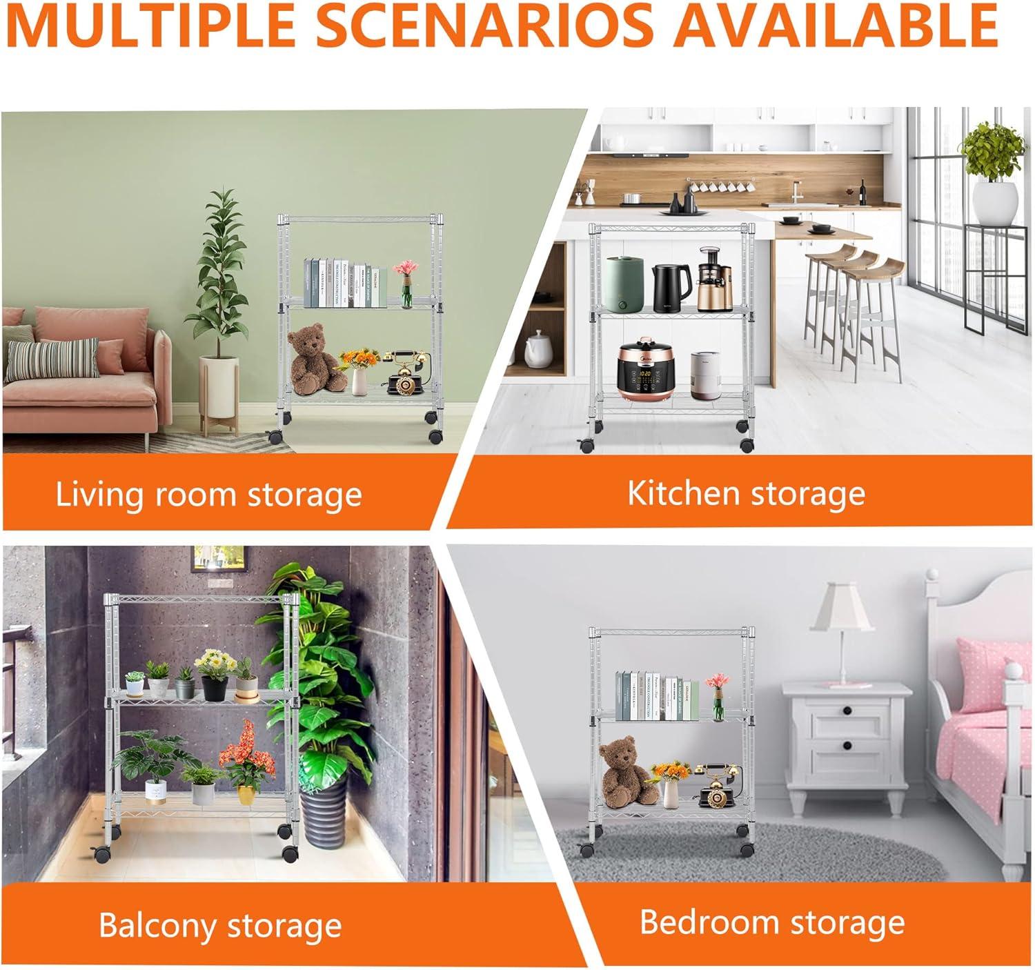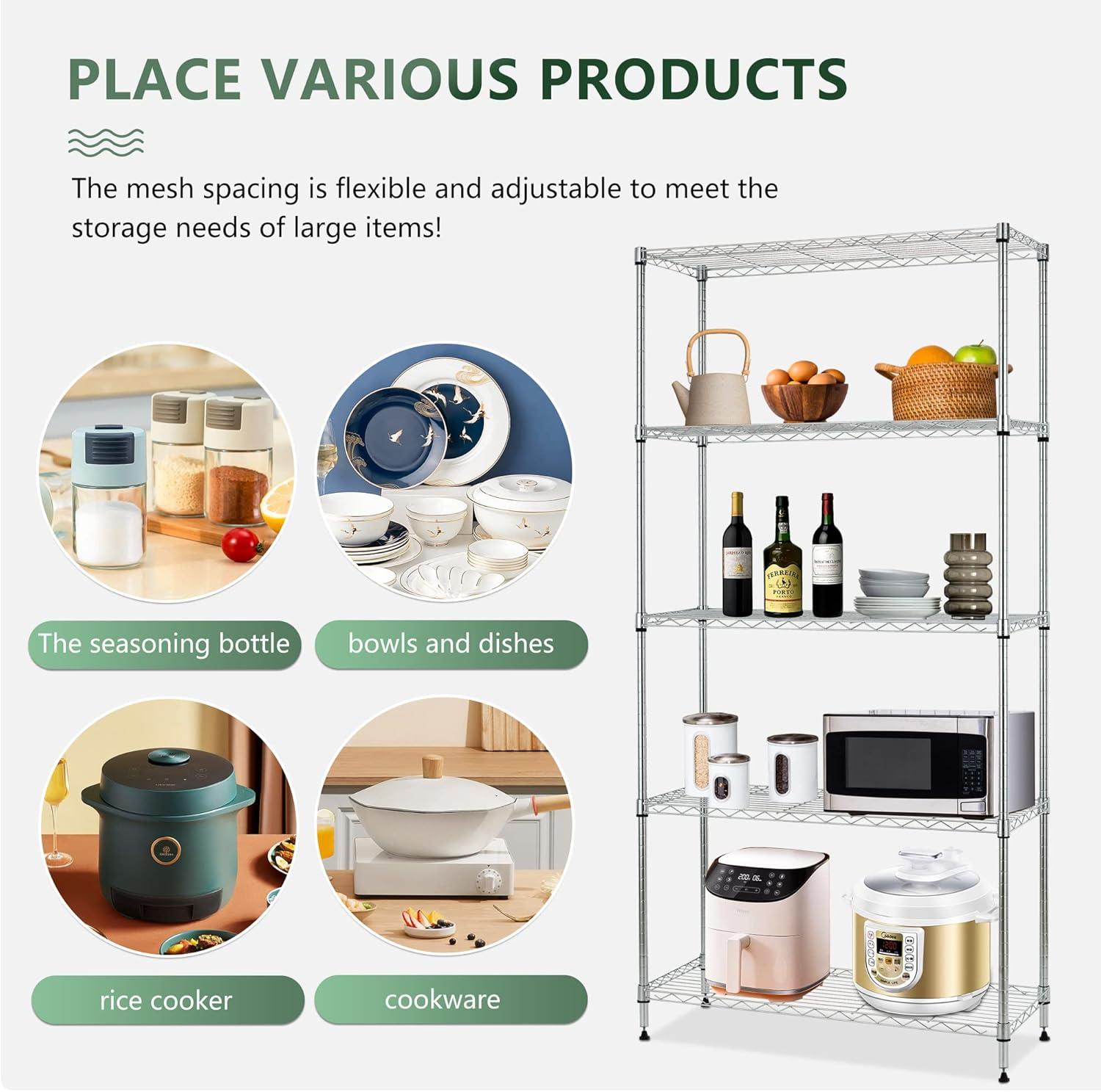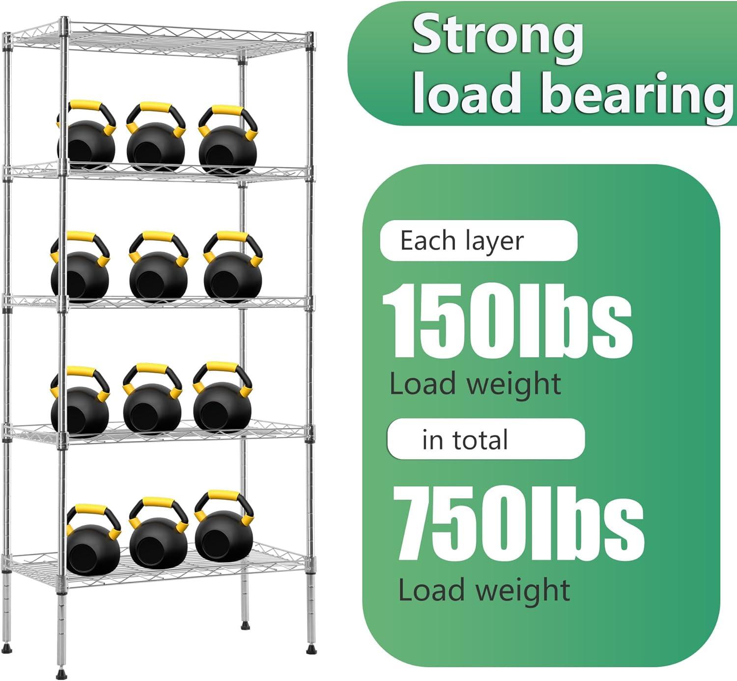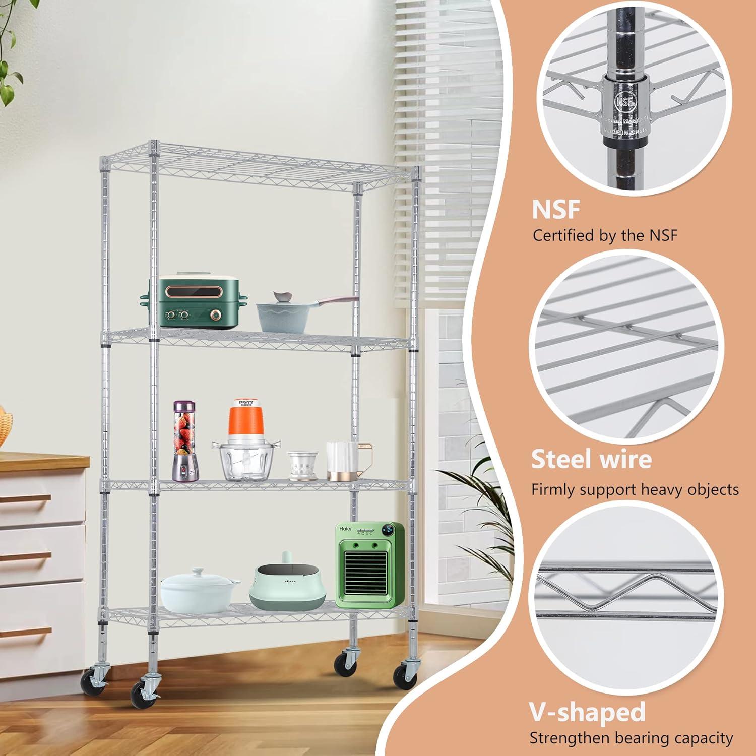The storage shelves provide an enormous amount of space for you. You can use this metal shelf in the kitchen, bedroom or garage. This wire shelving is sure to make your room more tidy.