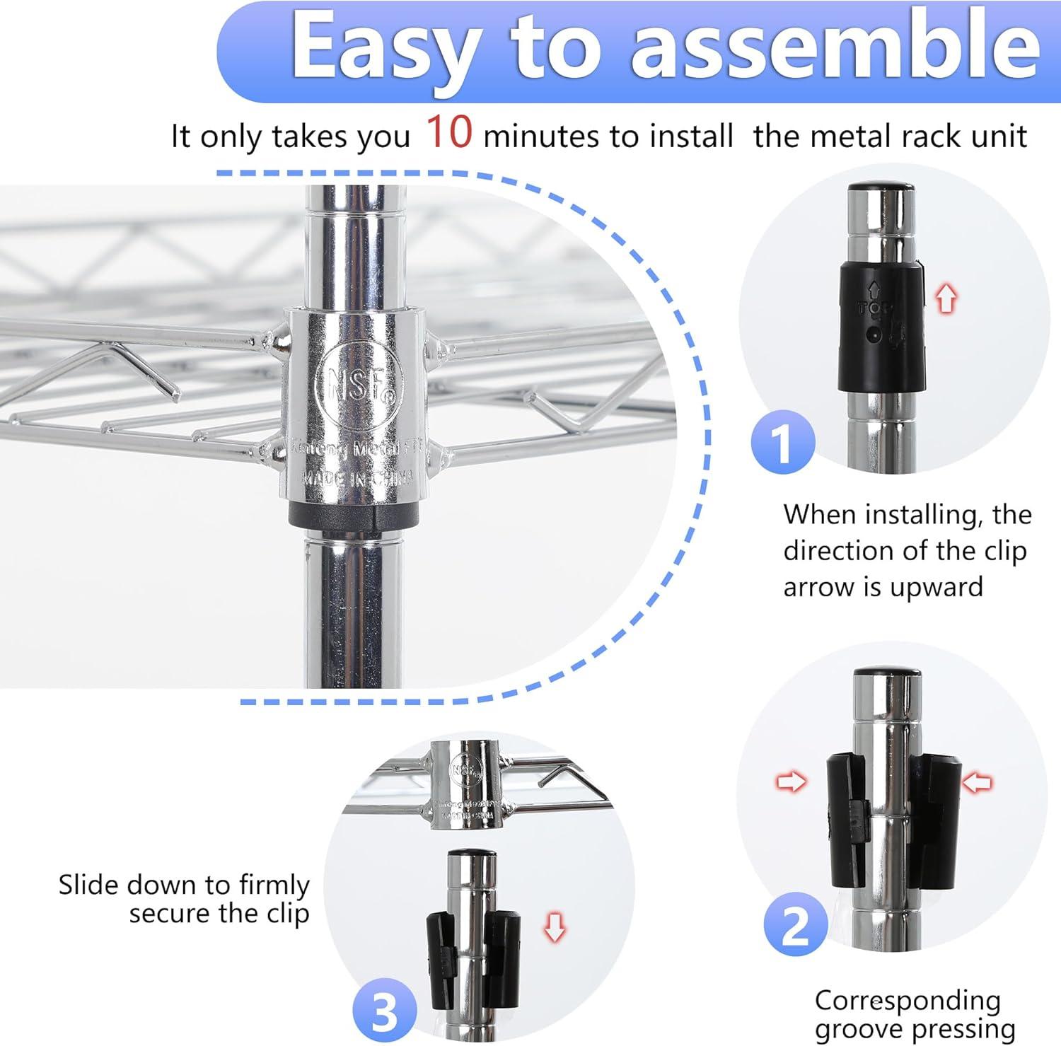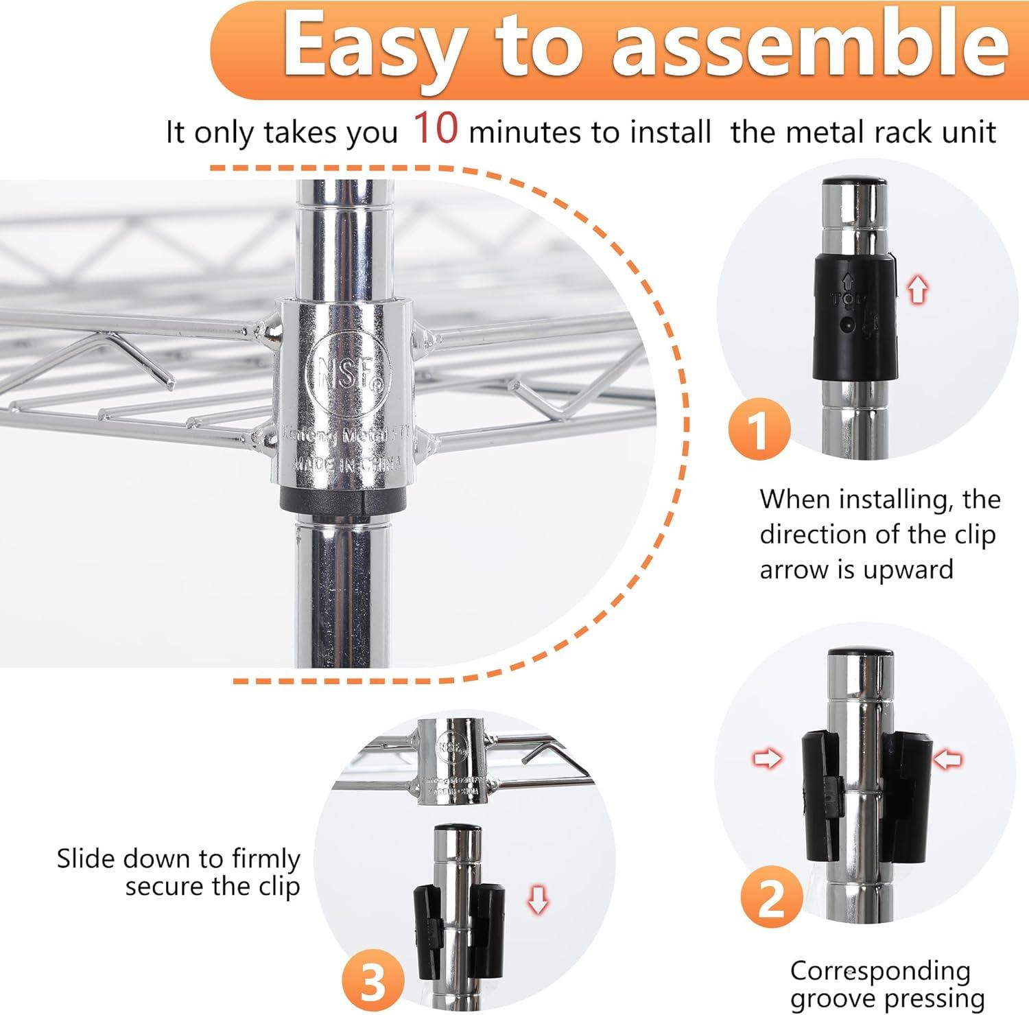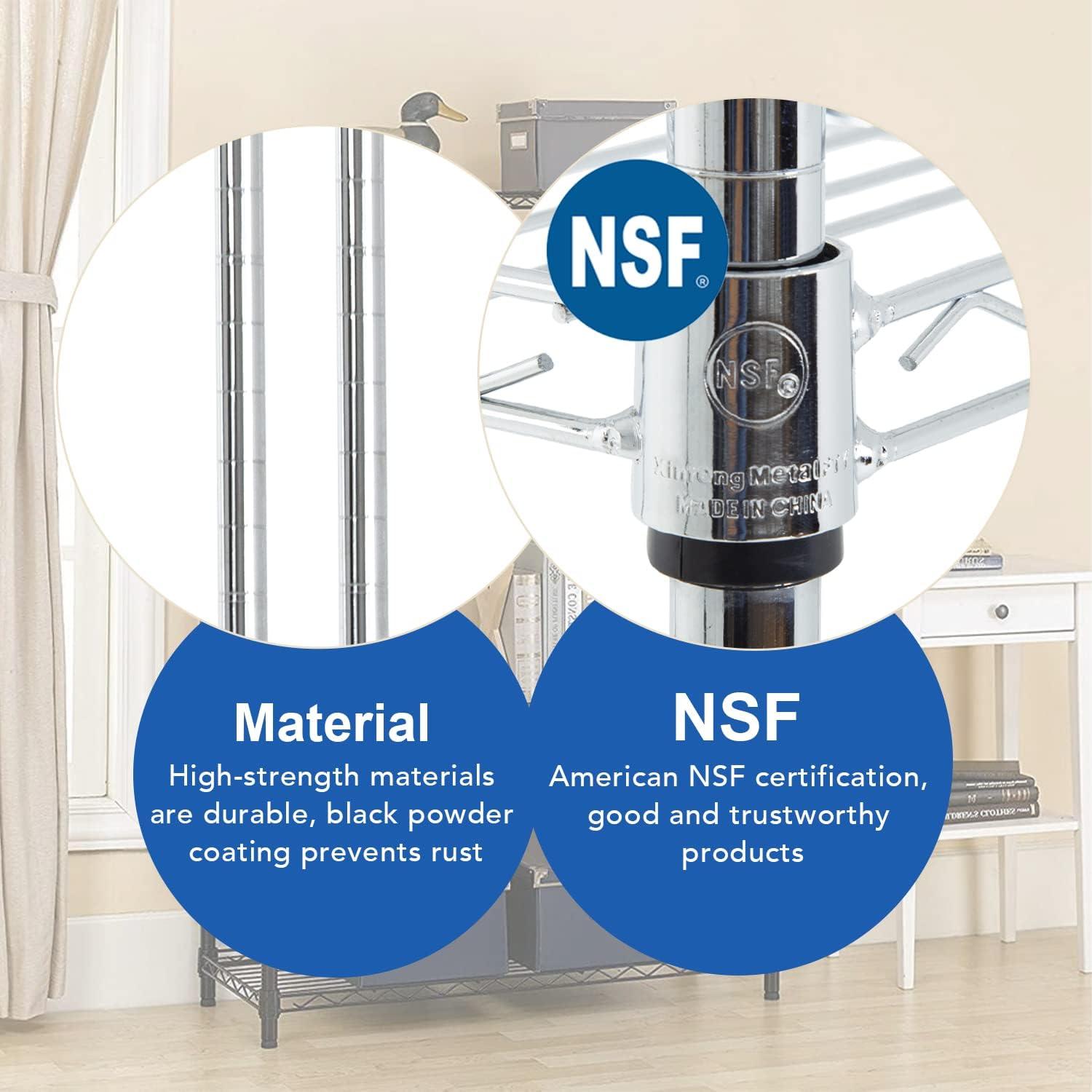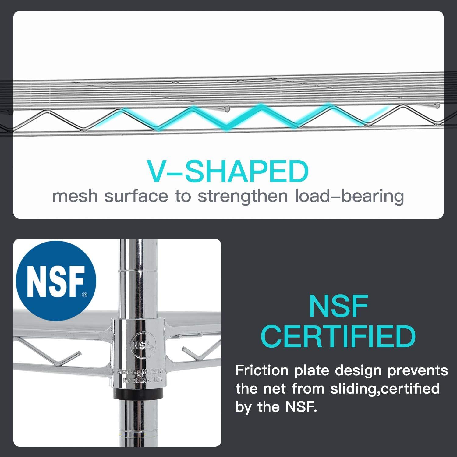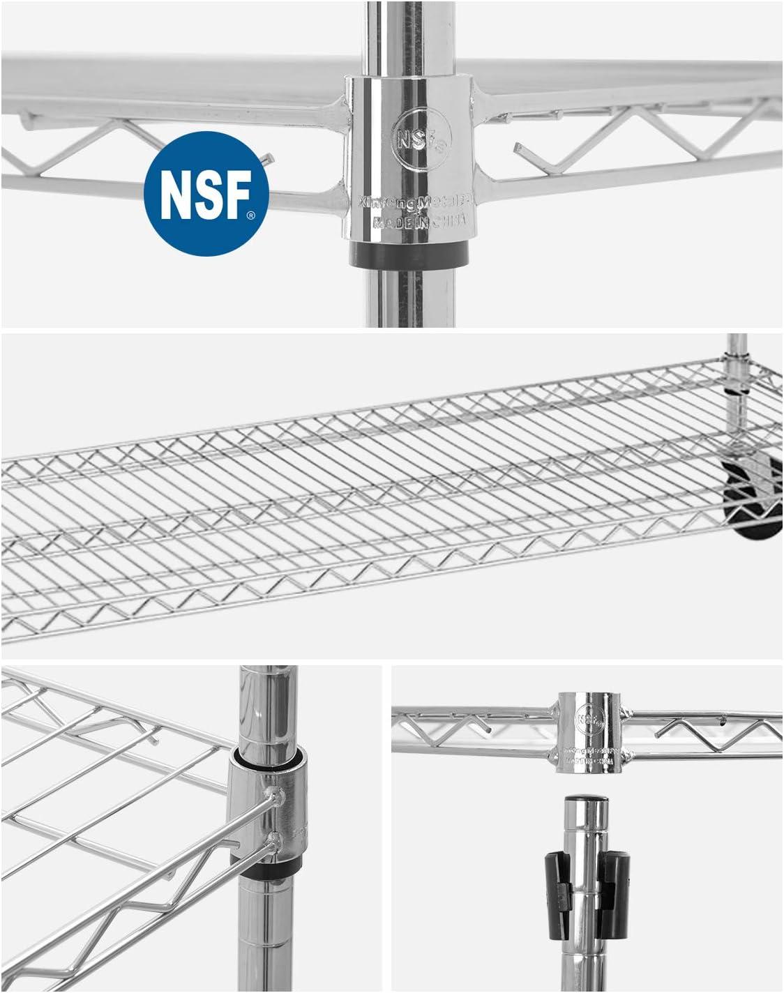 This 6 tier wire shelving is easy to install and you can set it up within 15 minutes. The storage shelf is made of steel wire shelving.