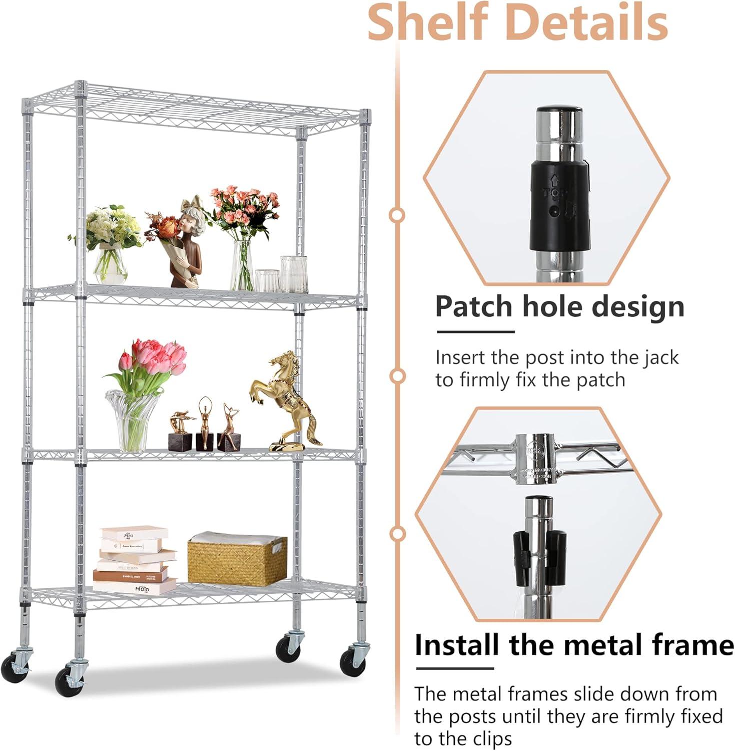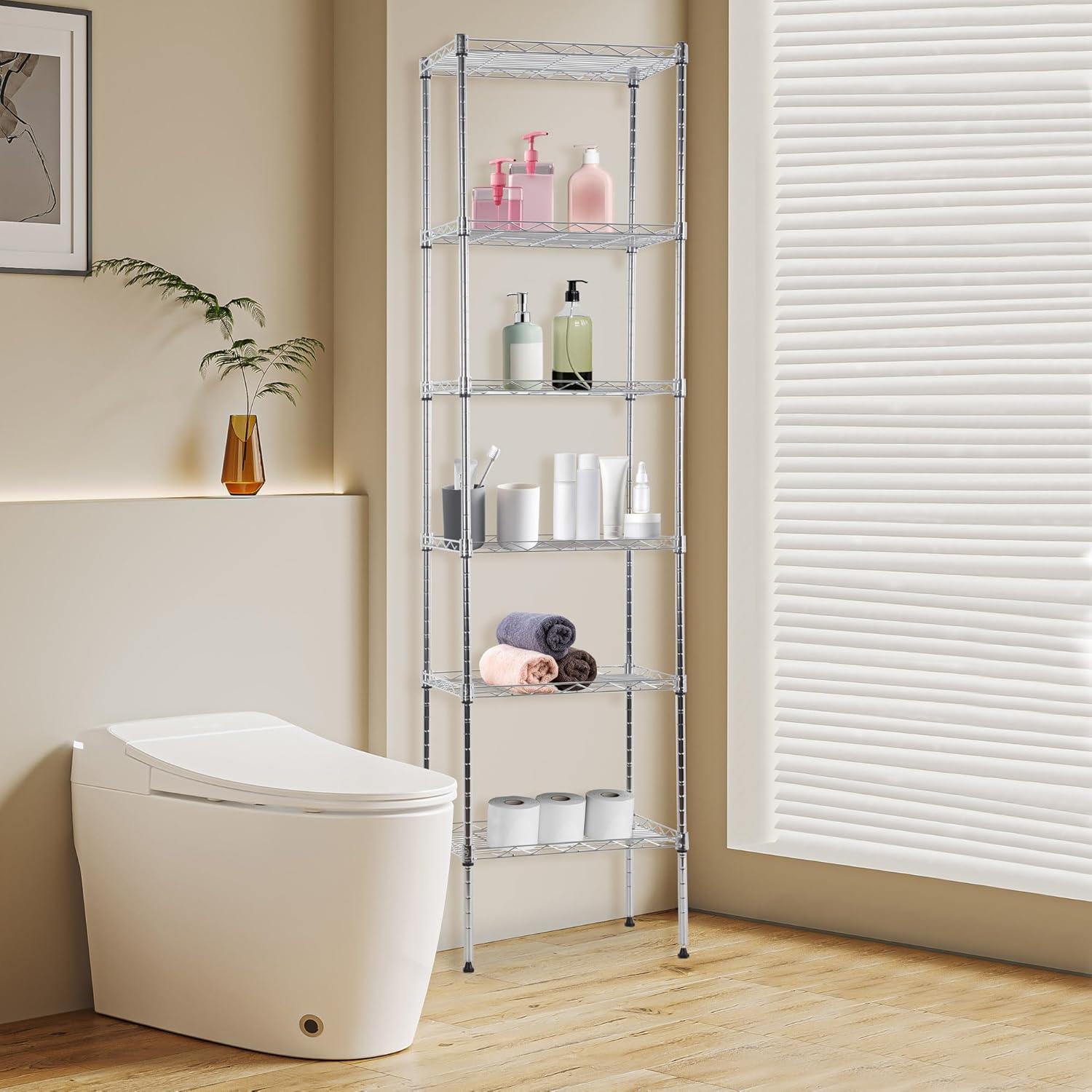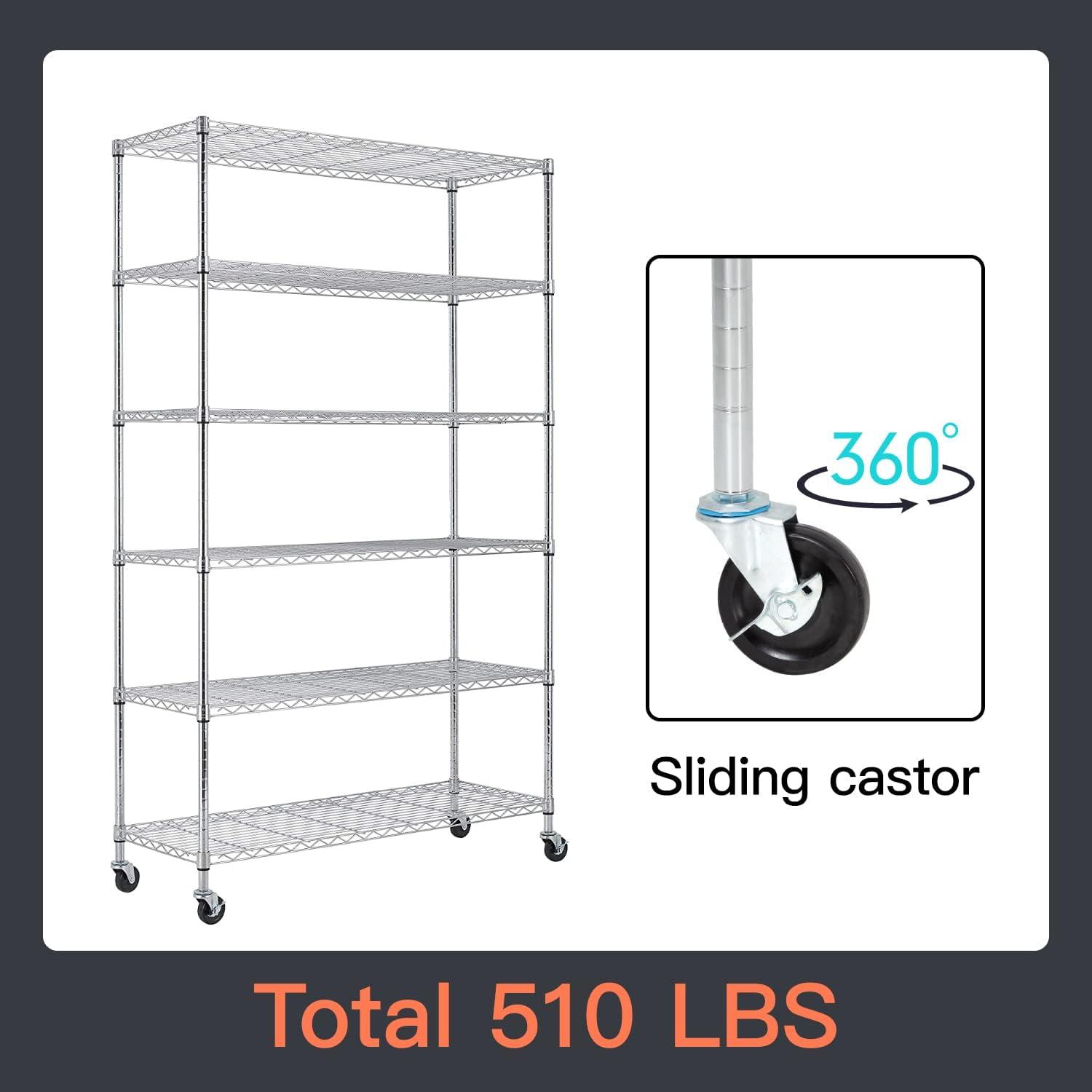 BestOffice | 6-Tier Wire Storage Shelves with Wheels | 18x48x77 | Chrome | Adjustable Racks | Heavy-Duty Metal Shelf, Holds Upto 600 lbs | No-Tool Assembly | Ideal for Home & Garage Shelving(Chrome)