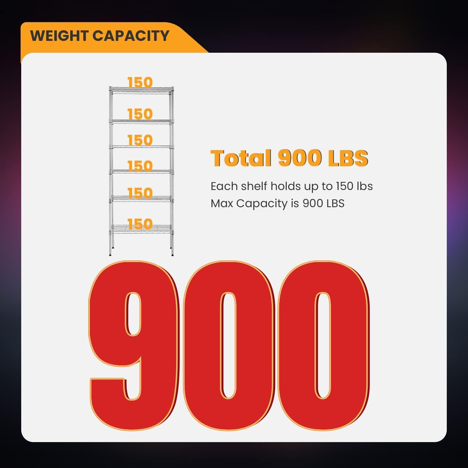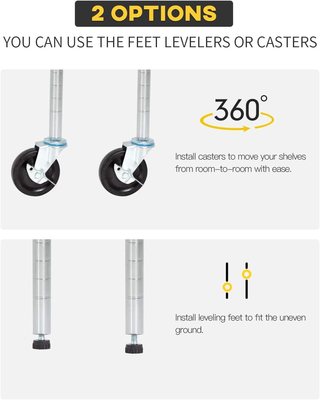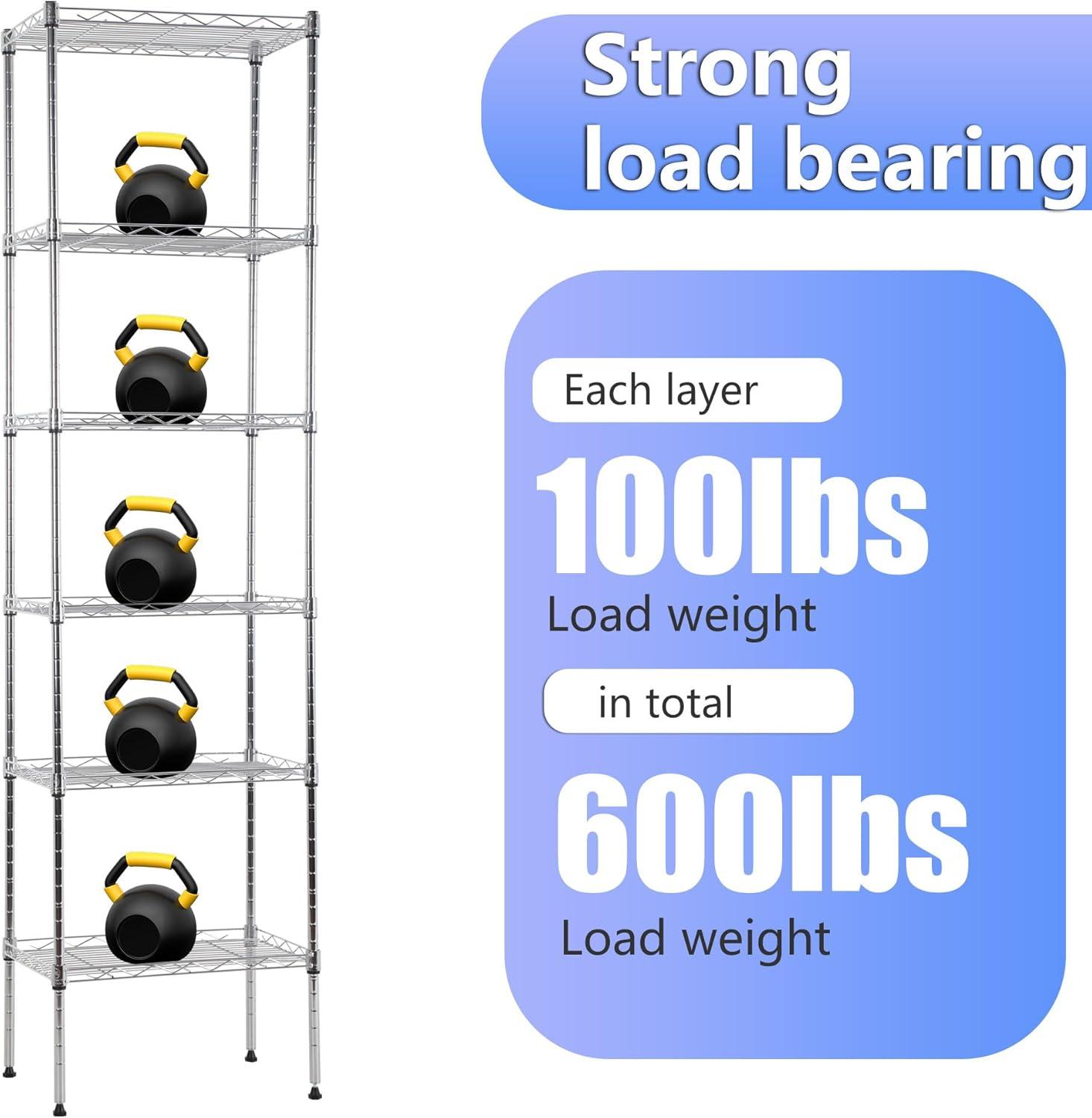 This is 6 Tier Heavy Duty Wire Shelving.our Shelves Will Make Your Room More Tidy.it Can Hold 3600lbs. You Can Use the Feet Levelers Or Wheels to Suit Your Needs.