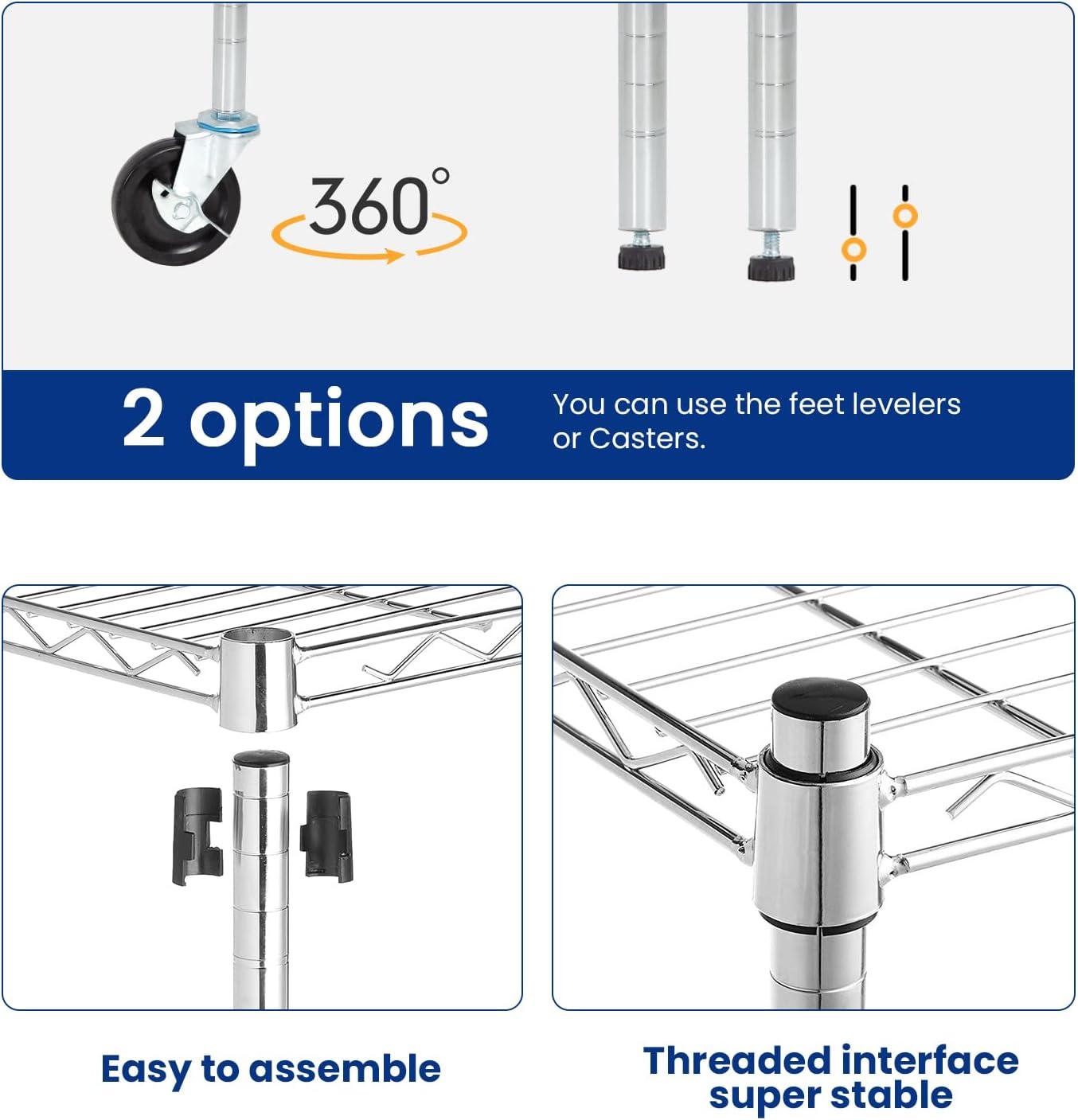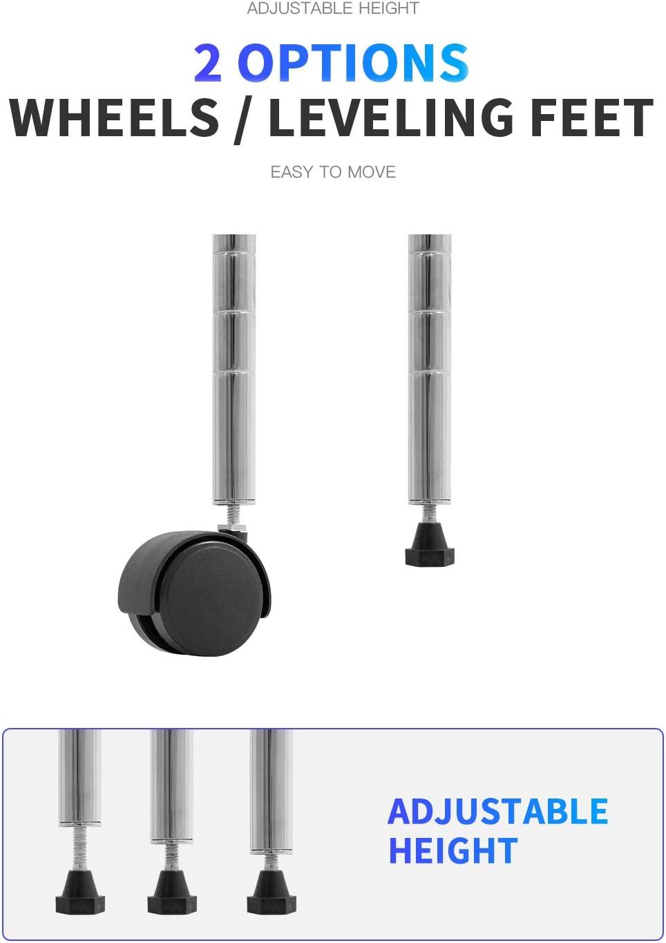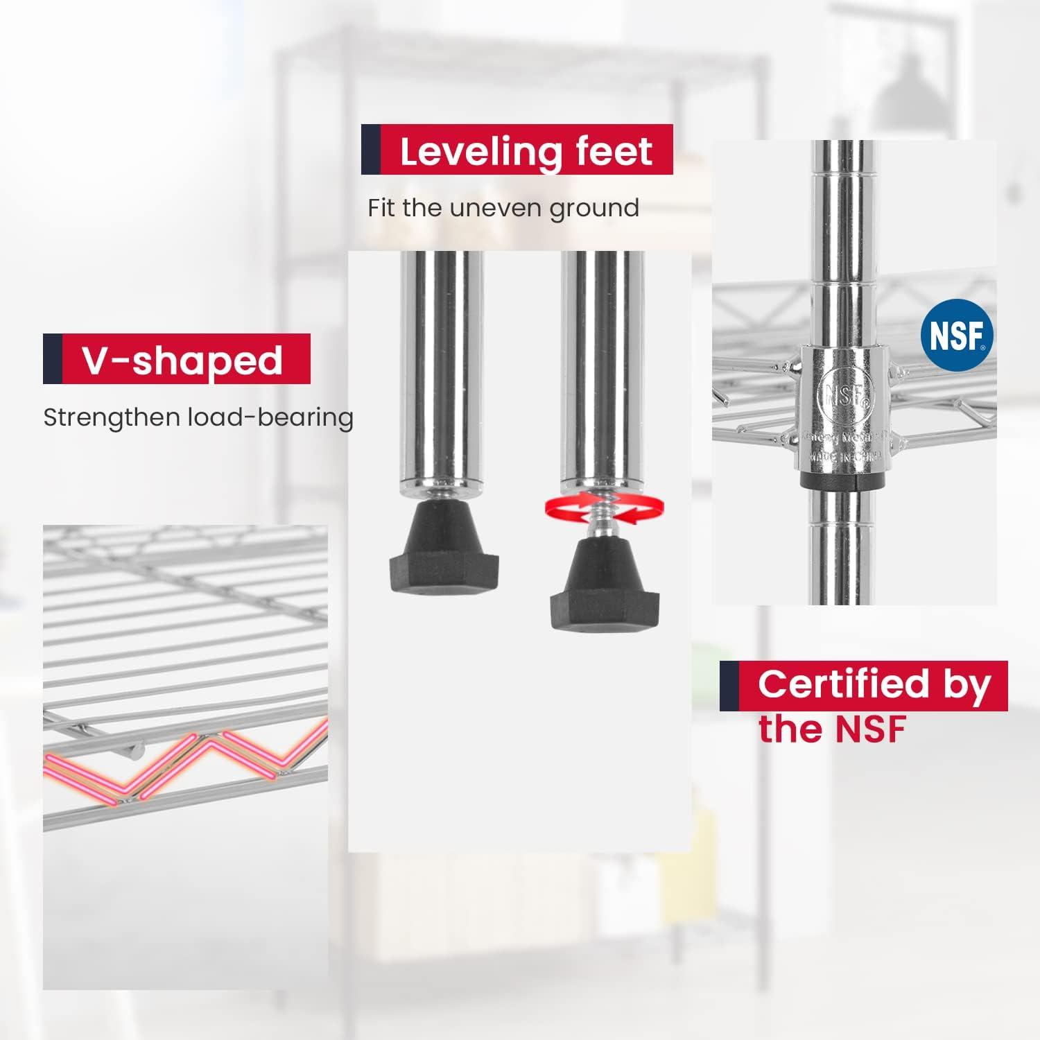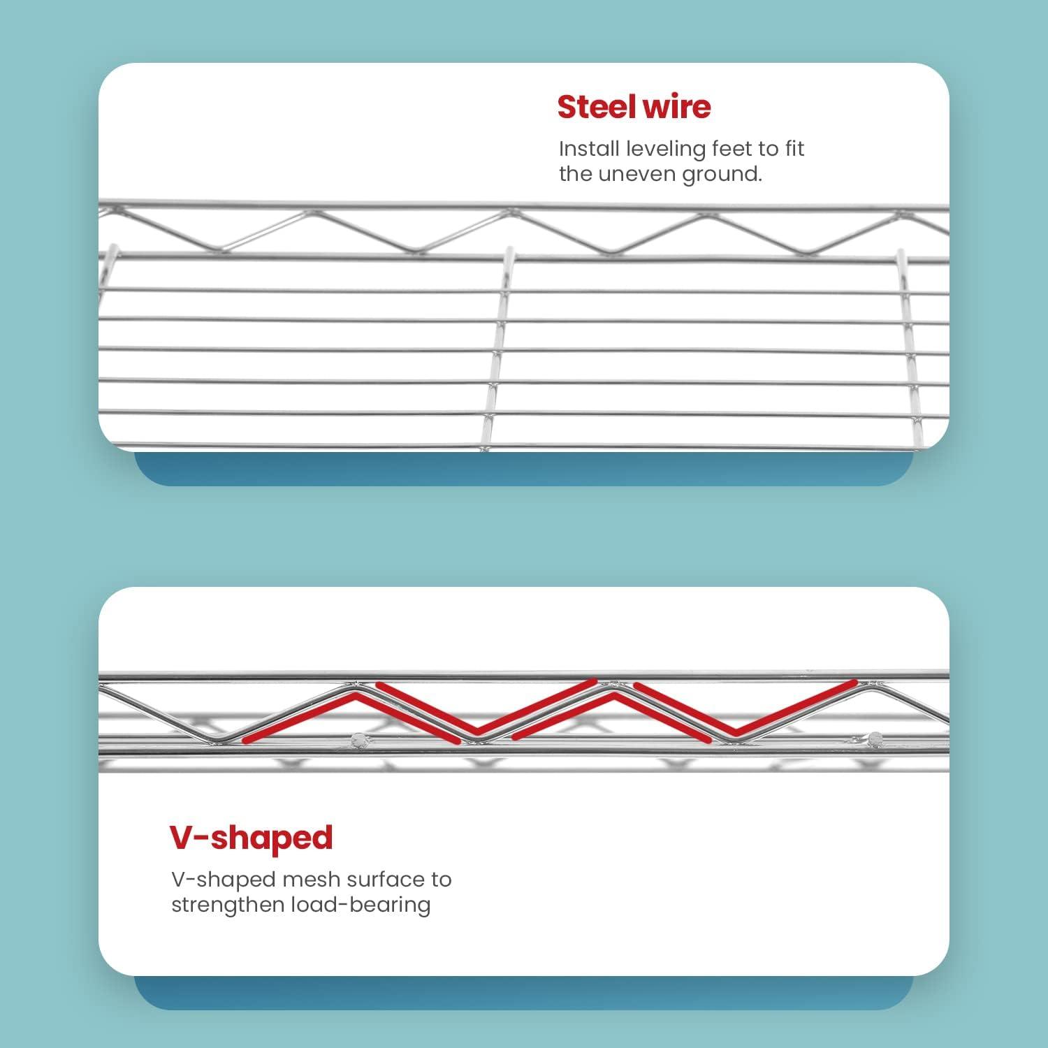 √【ADJUSTABLE】: You can adjust the height of the storage shelves according to the size of the item.The spacing of each layer of this wire shelf can be adjusted.shelves adjustable leveling feet allow the wire shelving unit to be placed on uneven ground–a simple twist is all it takes to stabilize.storage shelves wire shelf wire shelving unit.