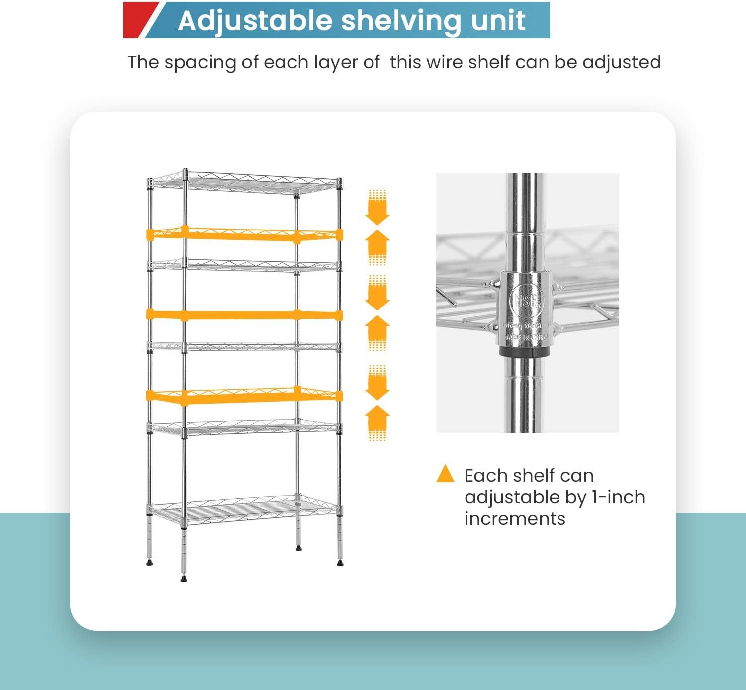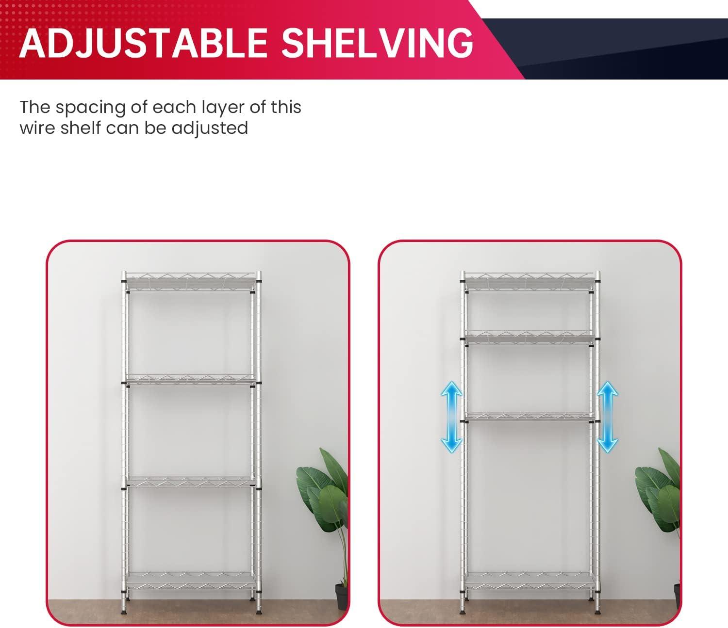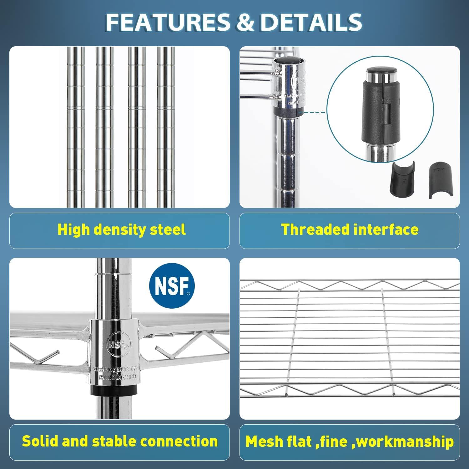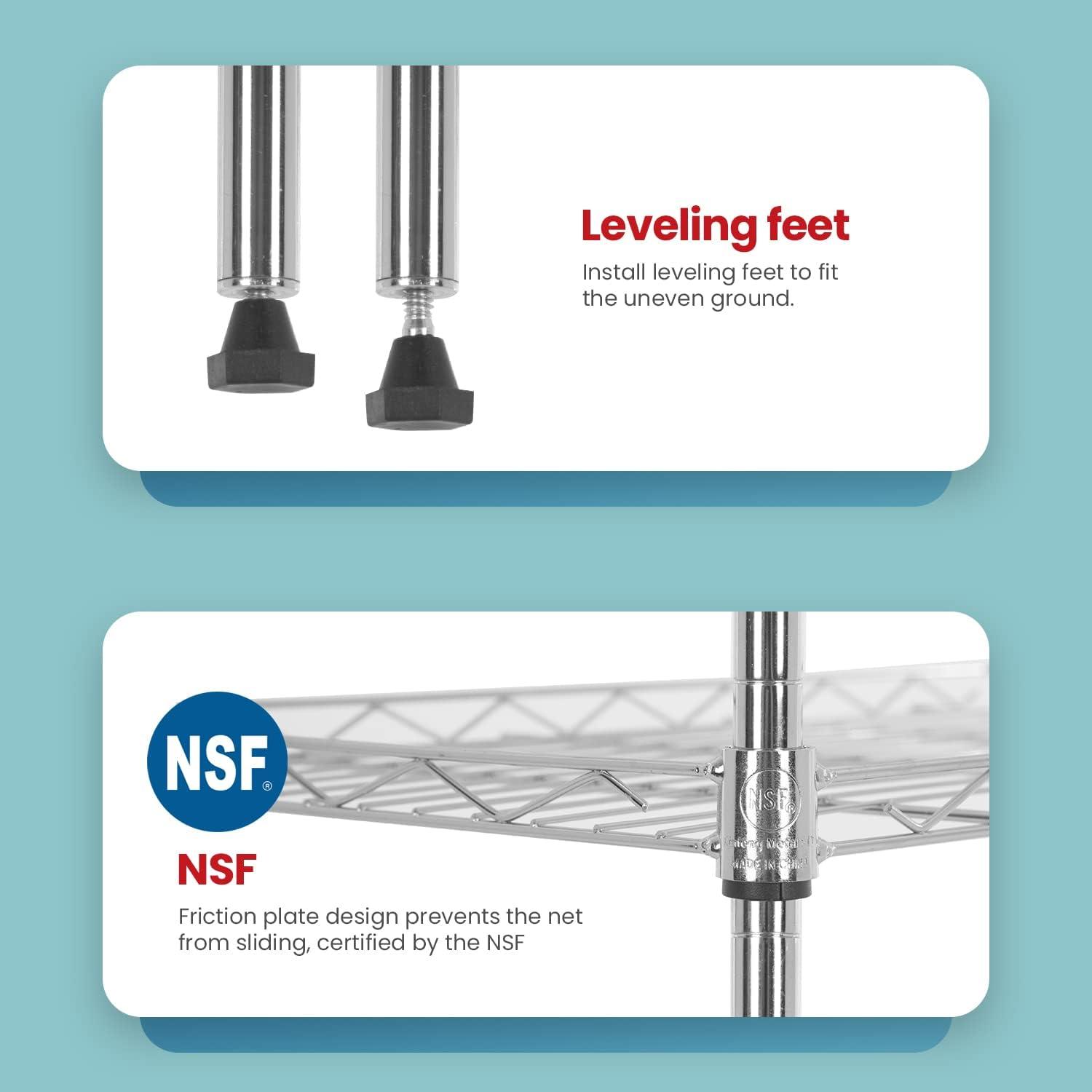 √【ADJUSTABLE】: You can adjust the height of the storage shelves according to the size of the item.The spacing of each layer of this wire shelf can be adjusted.shelves adjustable leveling feet allow the wire shelving unit to be placed on uneven ground–a simple twist is all it takes to stabilize.storage shelves wire shelf wire shelving unit.