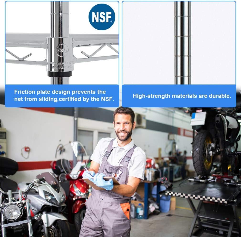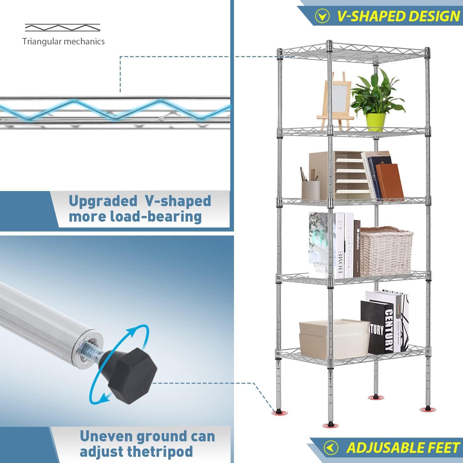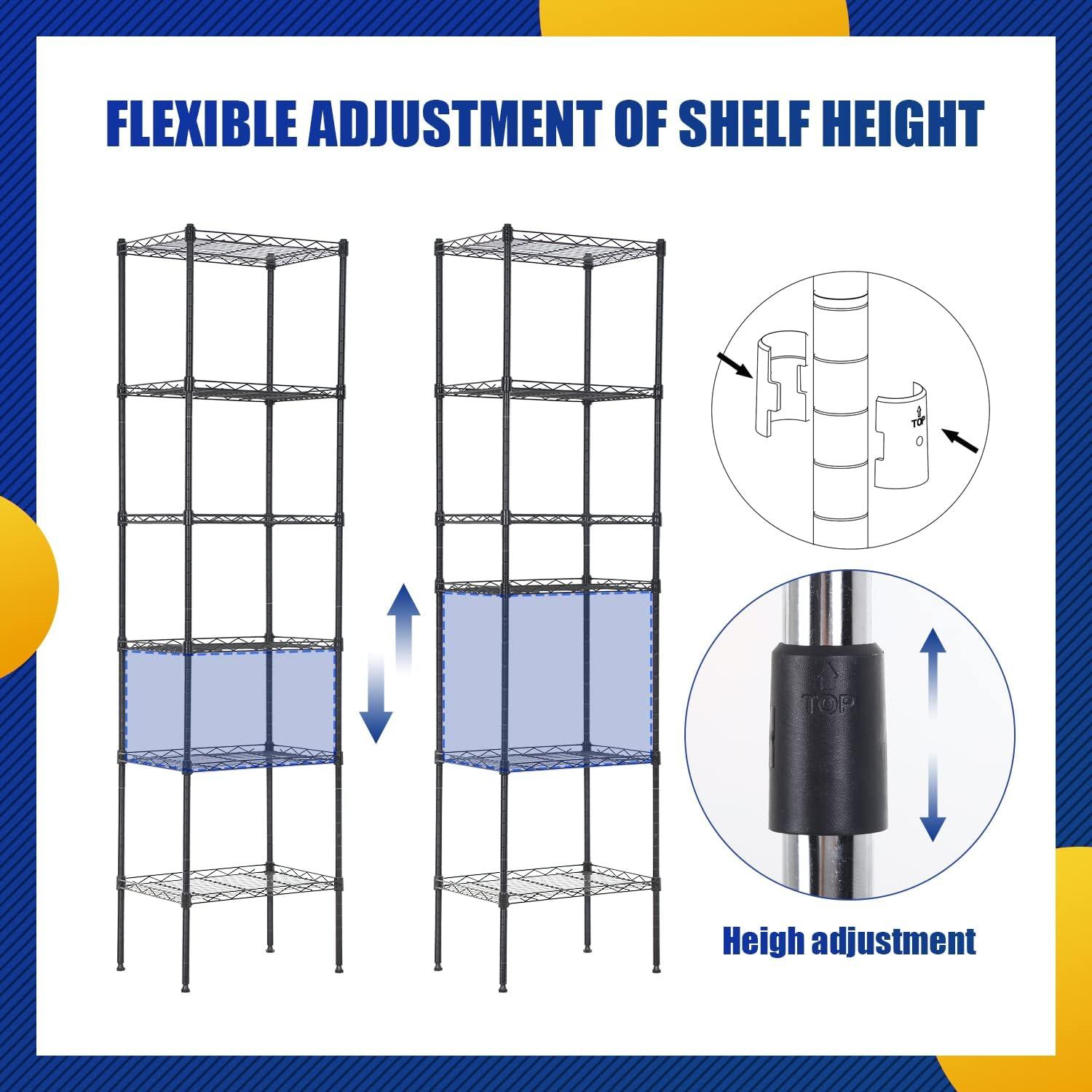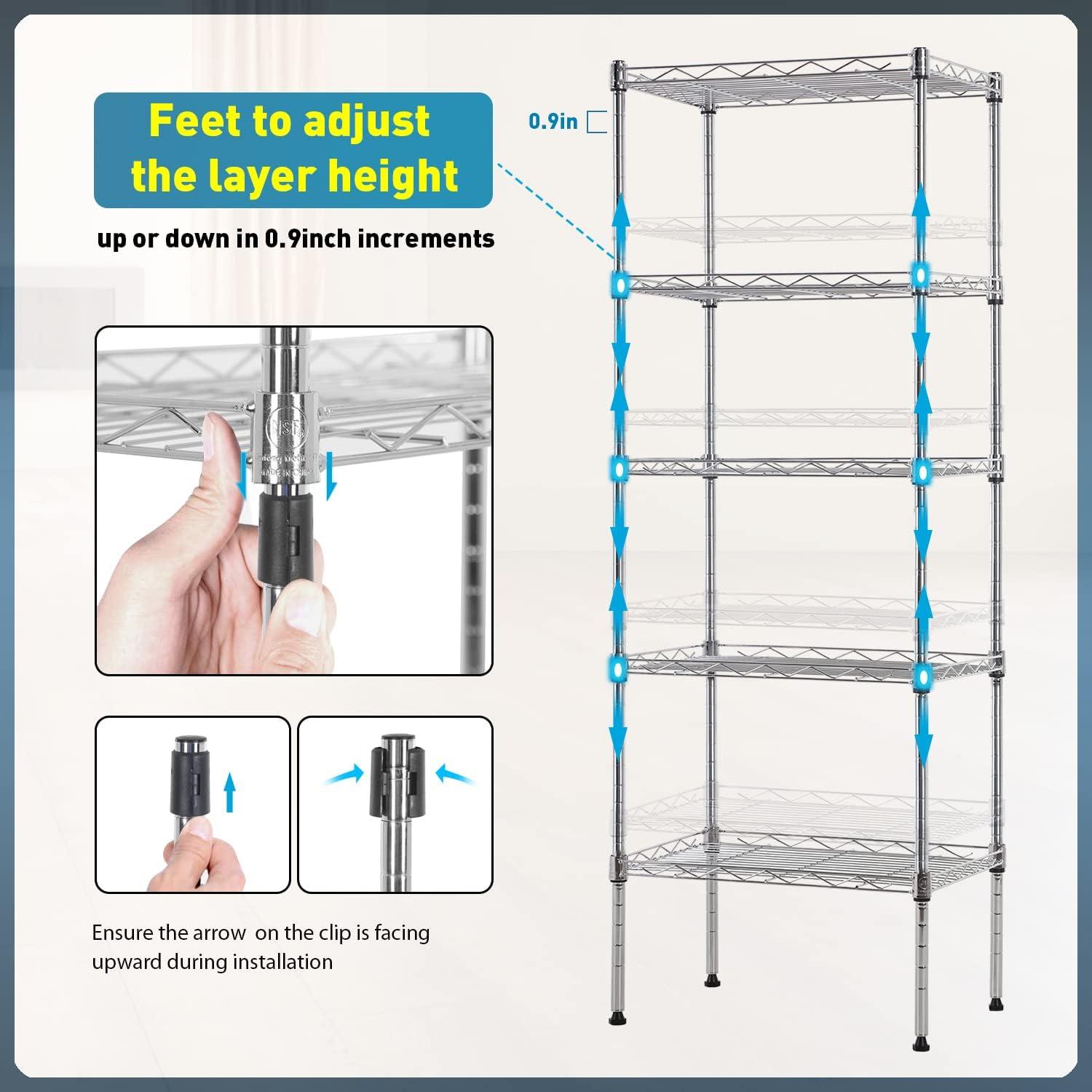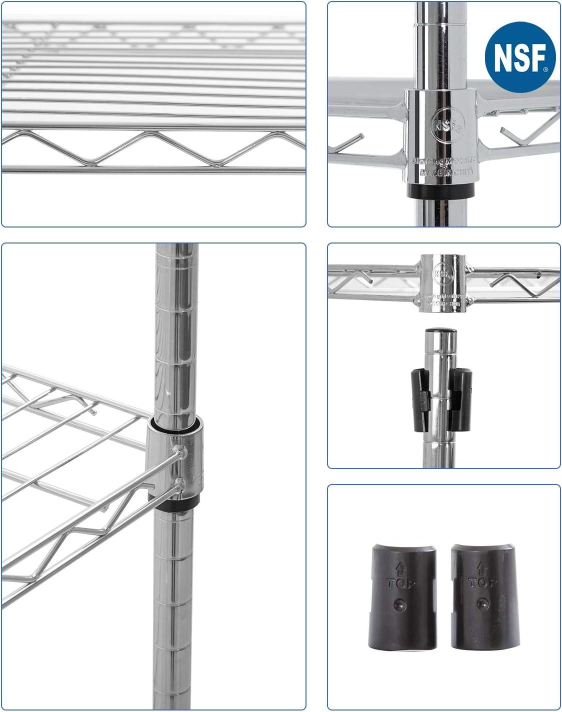√【ADJUSTABLE】: You can adjust the height of the storage shelves according to the size of the item.The spacing of each layer of this wire shelf can be adjusted.shelves adjustable leveling feet allow the wire shelving unit to be placed on uneven ground–a simple twist is all it takes to stabilize.storage shelves wire shelf wire shelving unit.