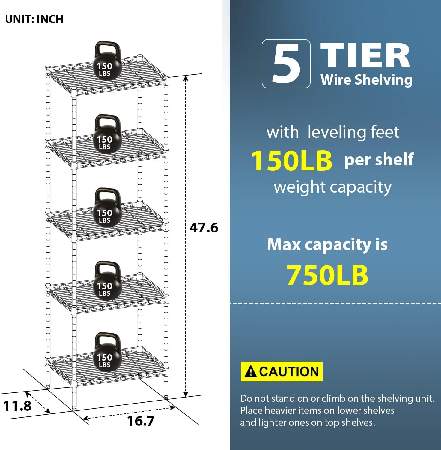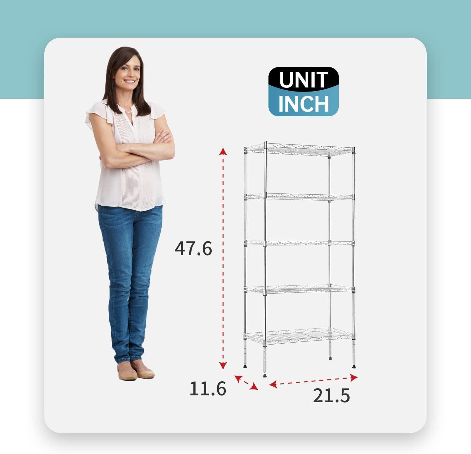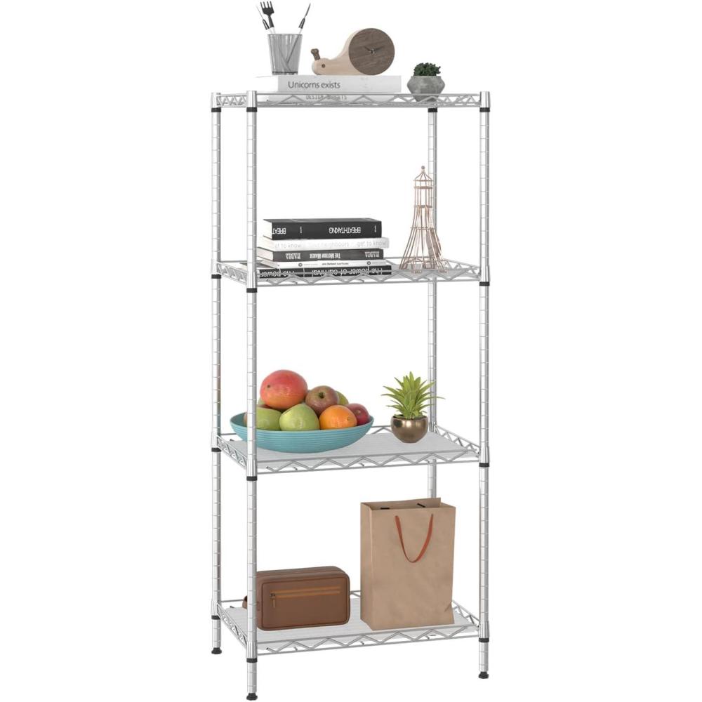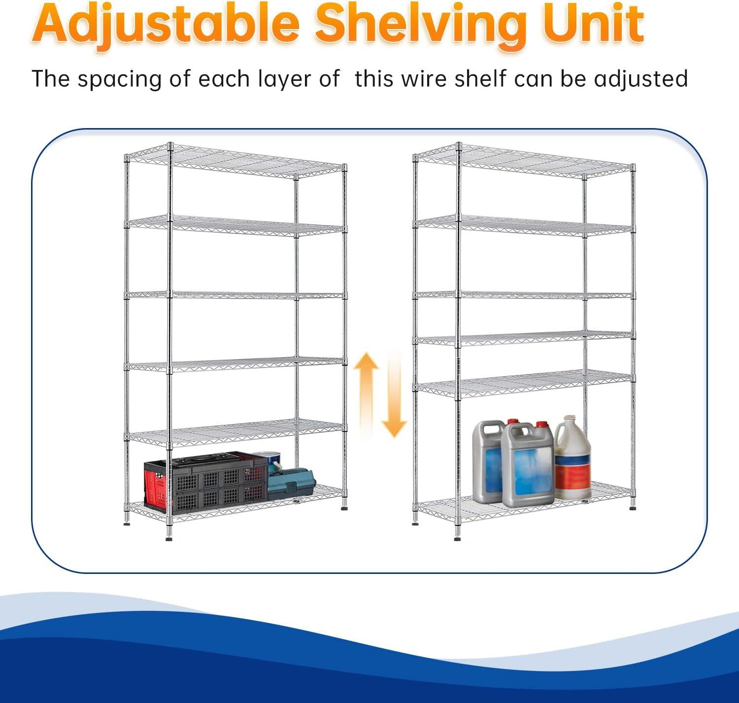 √【ADJUSTABLE】: You can adjust the height of the storage shelves according to the size of the item.The spacing of each layer of this wire shelf can be adjusted.shelves adjustable leveling feet allow the wire shelving unit to be placed on uneven ground–a simple twist is all it takes to stabilize.storage shelves wire shelf wire shelving unit.