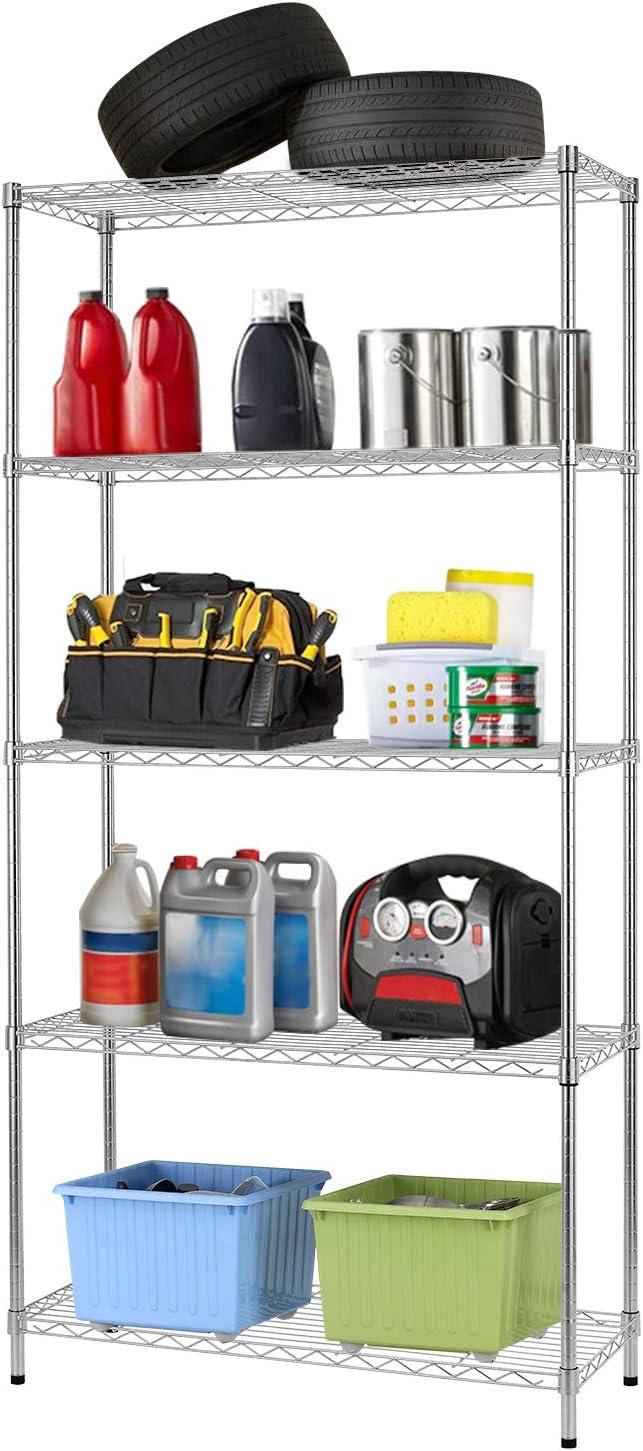 BestOffice Adjustable Wire Shelving Storage Shelves Heavy Duty Shelving Unit for Small Places Kitchen Garage (Chrome, 36×14×54)(Chrome)