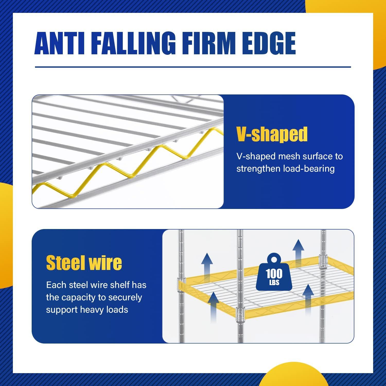 √【MULTIFUNCTIONAL】: This commercial wire shelf is for a wide range of applications.You can use this wire shelving unit in a variety of places, such as the bathroom kitchen garage.Tools, books,and other things can be placed on this storage shelves.wire shelf wire shelving unit storage shelves.