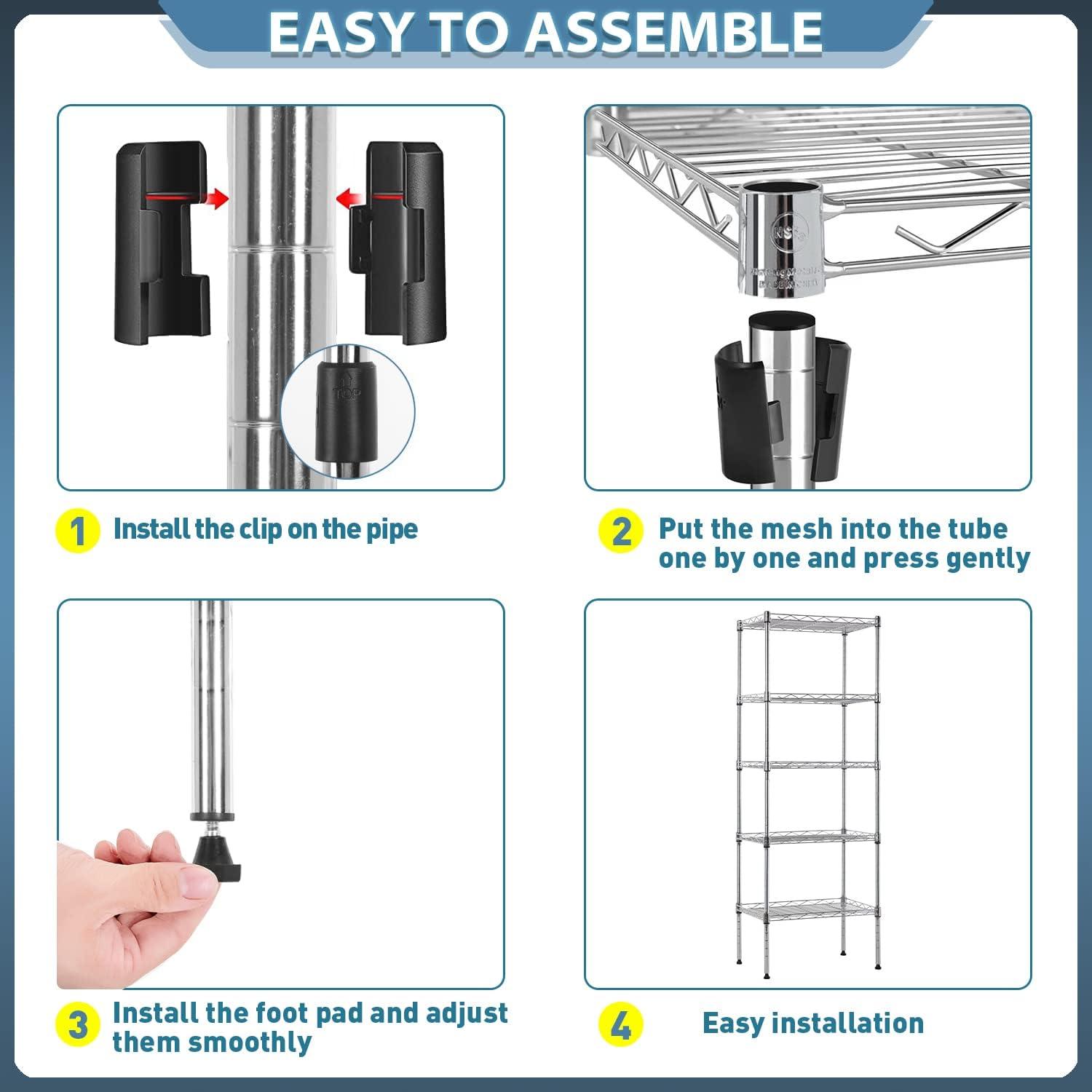 √【EASY TO ASSEMBLE】: The wire shelf is easy to assemble,This storage shelves structure is very simple ,No tools required to assemble it.The wire shelving unit is simple to assemble,You only need to spend 15min to install it.wire shelf storage shelves wire shelving unit.