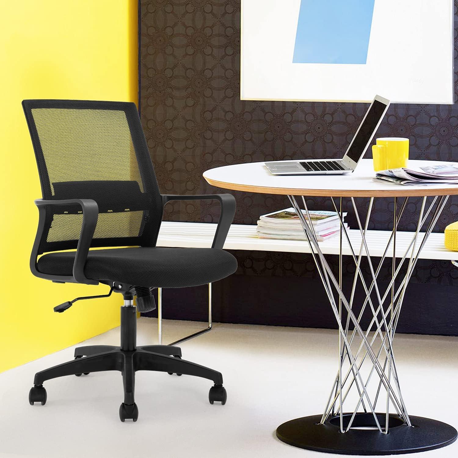 BestOffice Swivel Rolling Computer Chair Executive Lumbar Support Task Mesh Chair Adjustable Stool for Women Men (Black)(White)