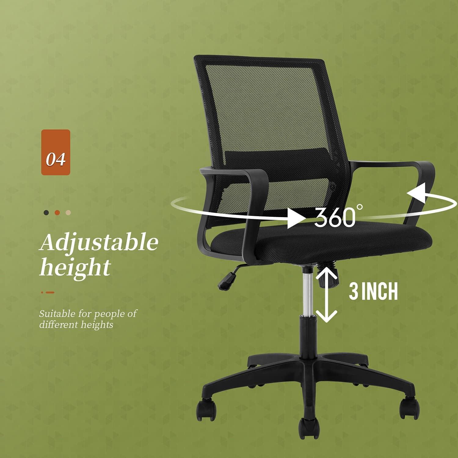 🍁【Sturdy & Durable】 Our mesh office chair has a heavy-duty Nylon base that great stability and mobility.Skin-Friendly and No Smell at all, breathable mesh back keeps you cool throughout all day. We adopts high quality accessories strictly meet BIFMA Standard to max ensure your safety. Our computer desk chair is ideal for home and office use.