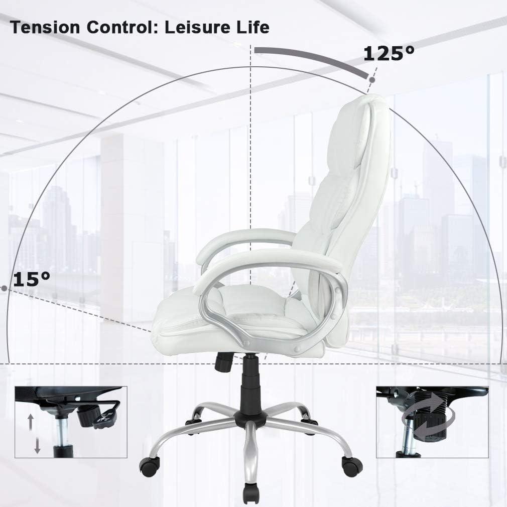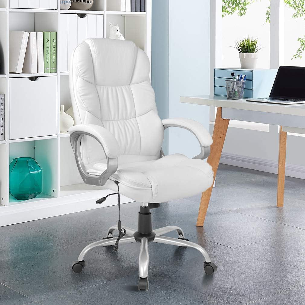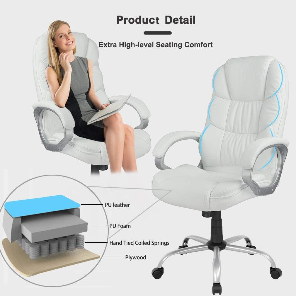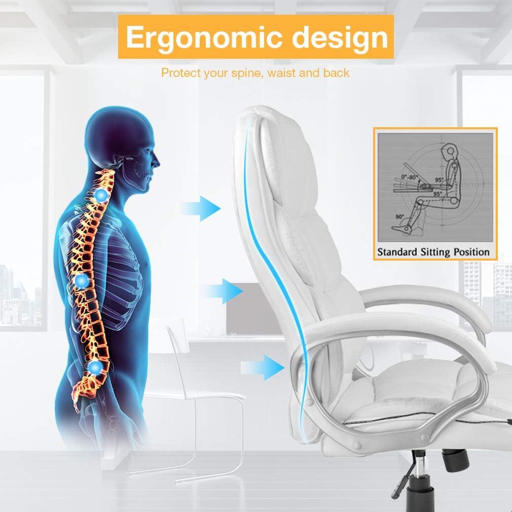 BestOffice Office Chair Cheap Desk Chair Ergonomic Computer Chair with Lumbar Support Arms Headrest PU Leather Modern Rolling Swivel Executive Chair for Back Pain Women Men Adults,Black(White)