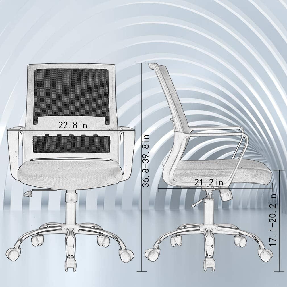Office Computer Mesh Chair Ergonomic Mid Back Swivel Rolling Desk Chair with Armrest Height Adjustable Lumbar Support x ,Black(White)