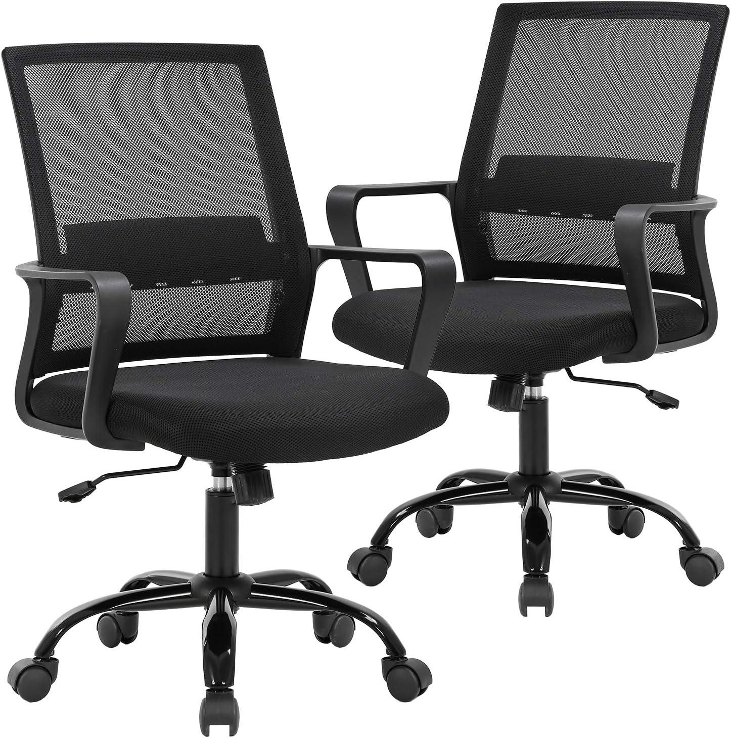 BestOffice Swivel Rolling Computer Chair Executive Lumbar Support Task Mesh Chair Adjustable Stool for Women Men (Black)(Black)