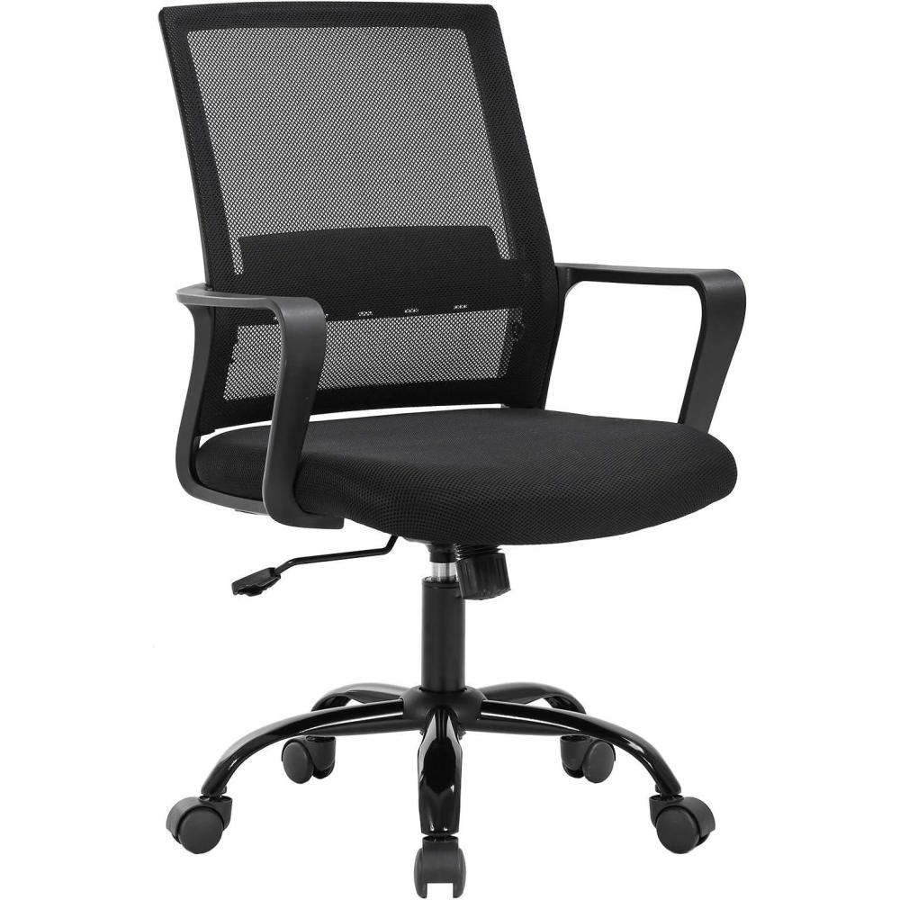 imageOffice Computer Mesh Chair Ergonomic Mid Back Swivel Rolling Desk Chair with Armrest Height Adjustable Lumbar Support x BlackWhite