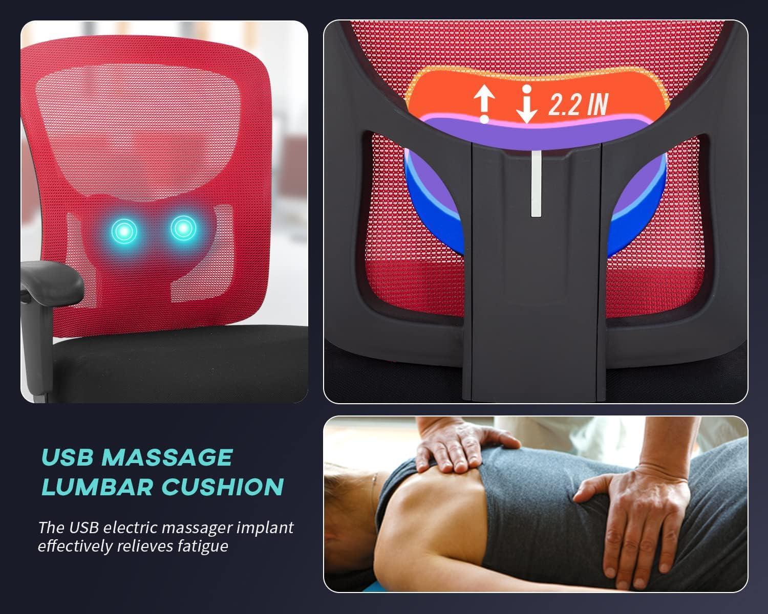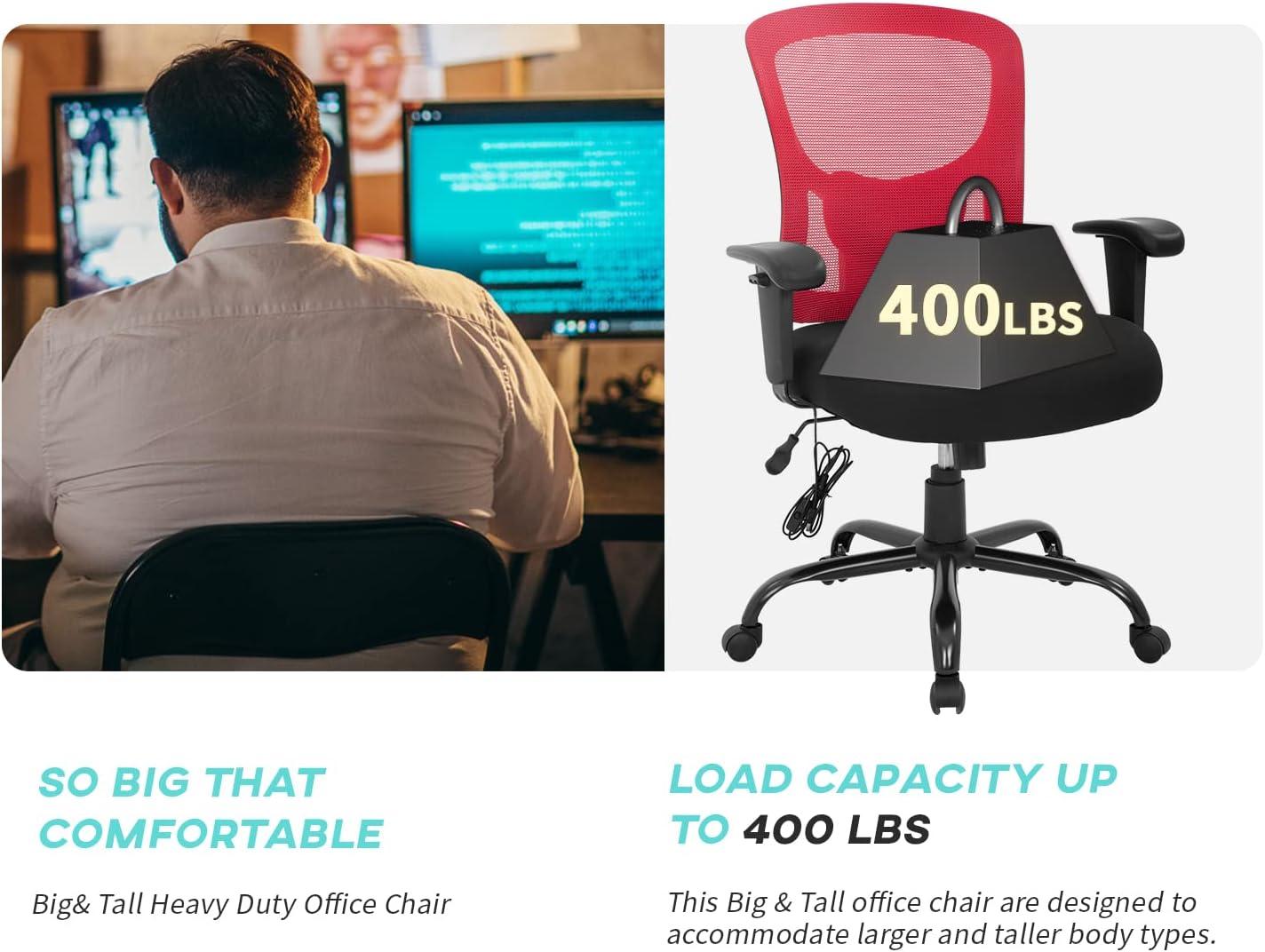 Big and Tall Office Chair 400lbs Wide Seat Mesh Desk Chair Massage Rolling Swivel Ergonomic Computer Chair with Lumbar Support Adjustable Arms Task Chair for Heavy People(Red)
