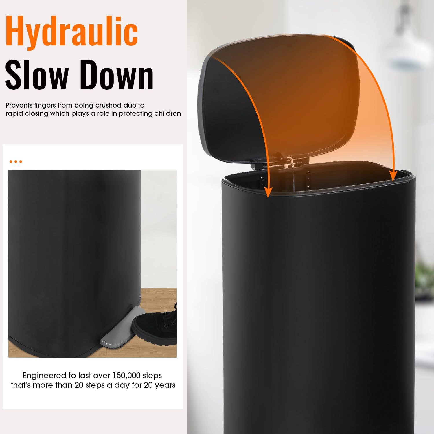 FDW 13 Gallon/50 L Garbage Can Kitchen Trash Can with Lid for Office Bedroom Bathroom Step Trash Bin Fingerprint-Proof Brushed Stainless Steel 13 Gallon / 50 Liter(Black)