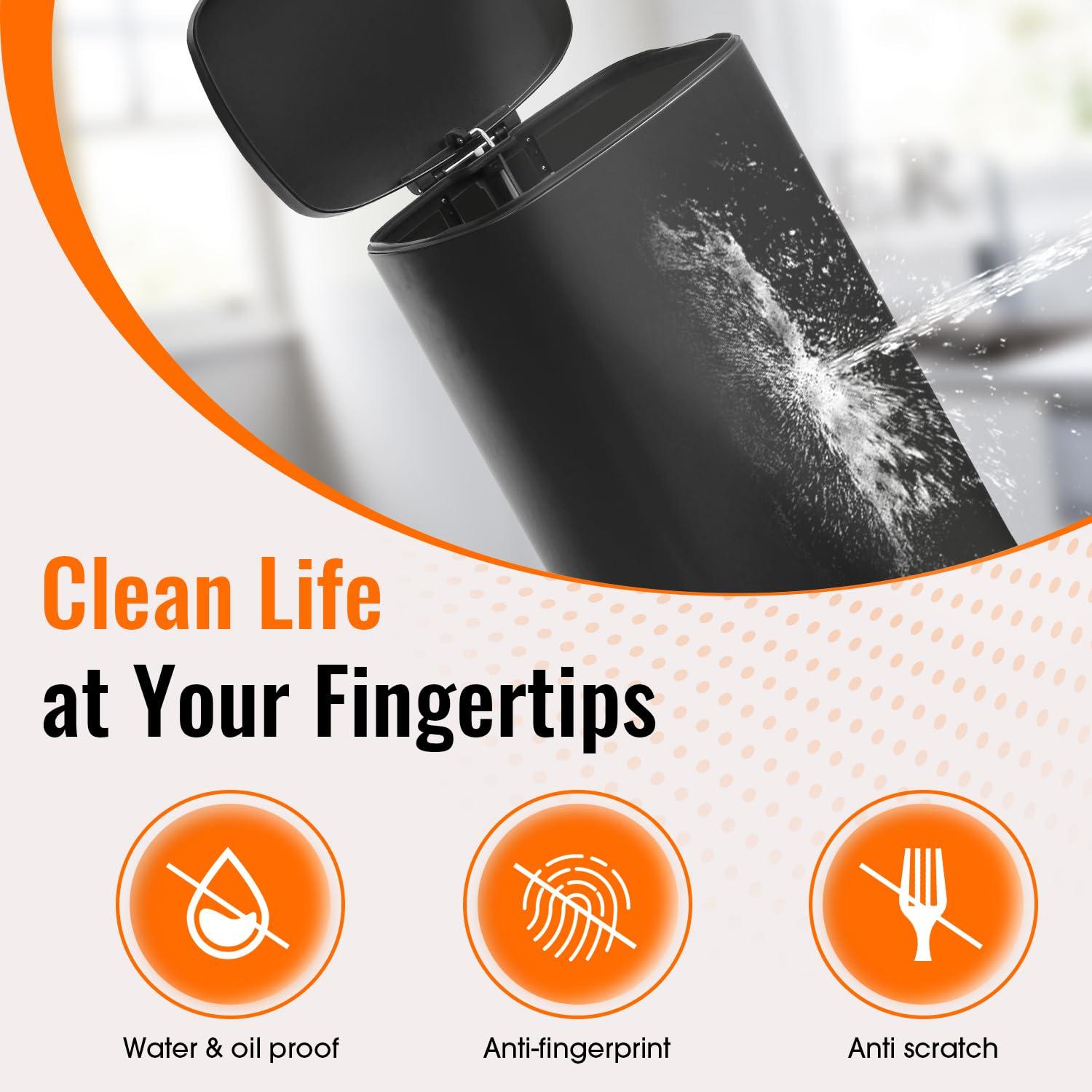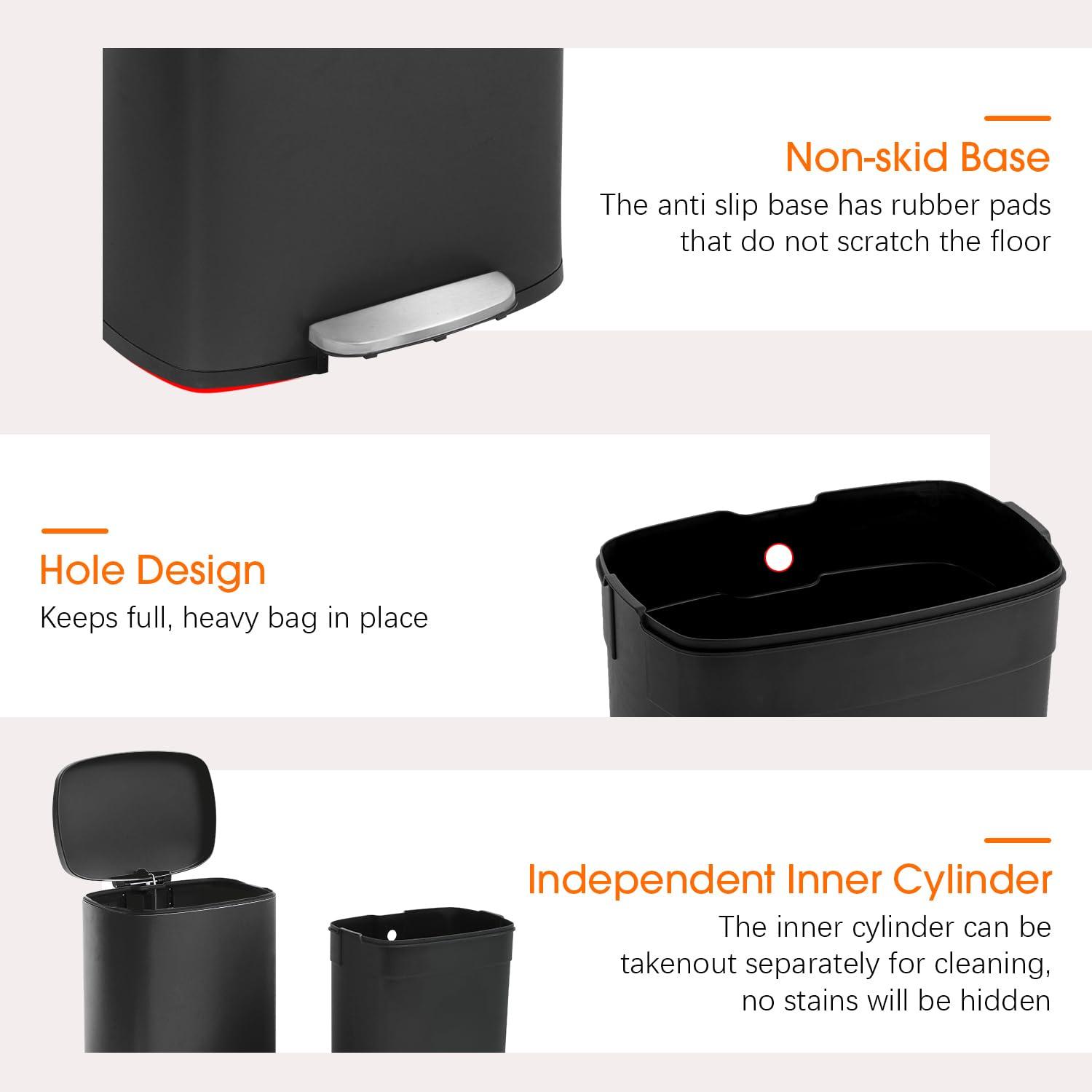 ★『STRONG &FASHIONABLE APPEARANCE』Our kitchen trash can is made of high quality stainless steel with a stainless steel wire drawing surface. The oval body with a sloping lid makes the garbage can look even more cool and beautiful. Buying our stainless steel trash can is a great deal for you.