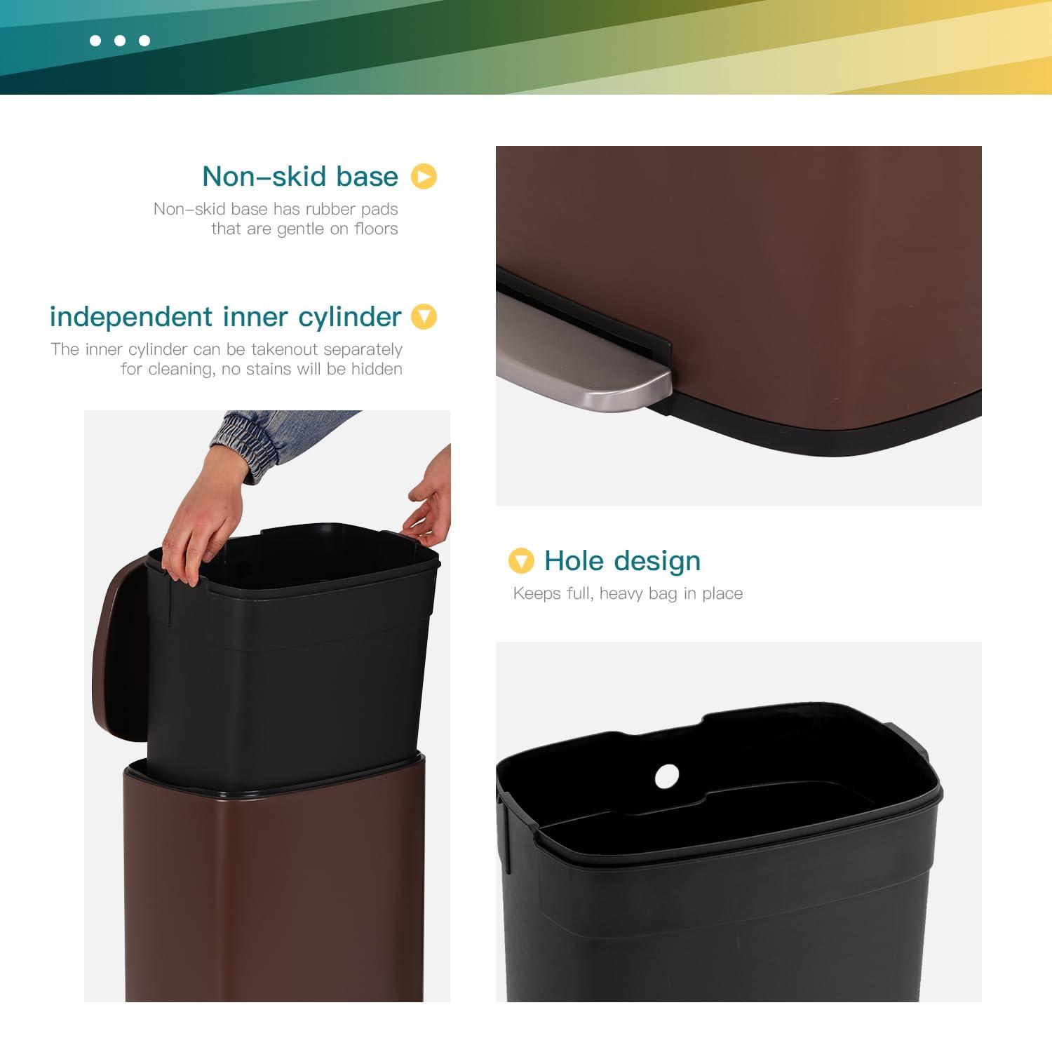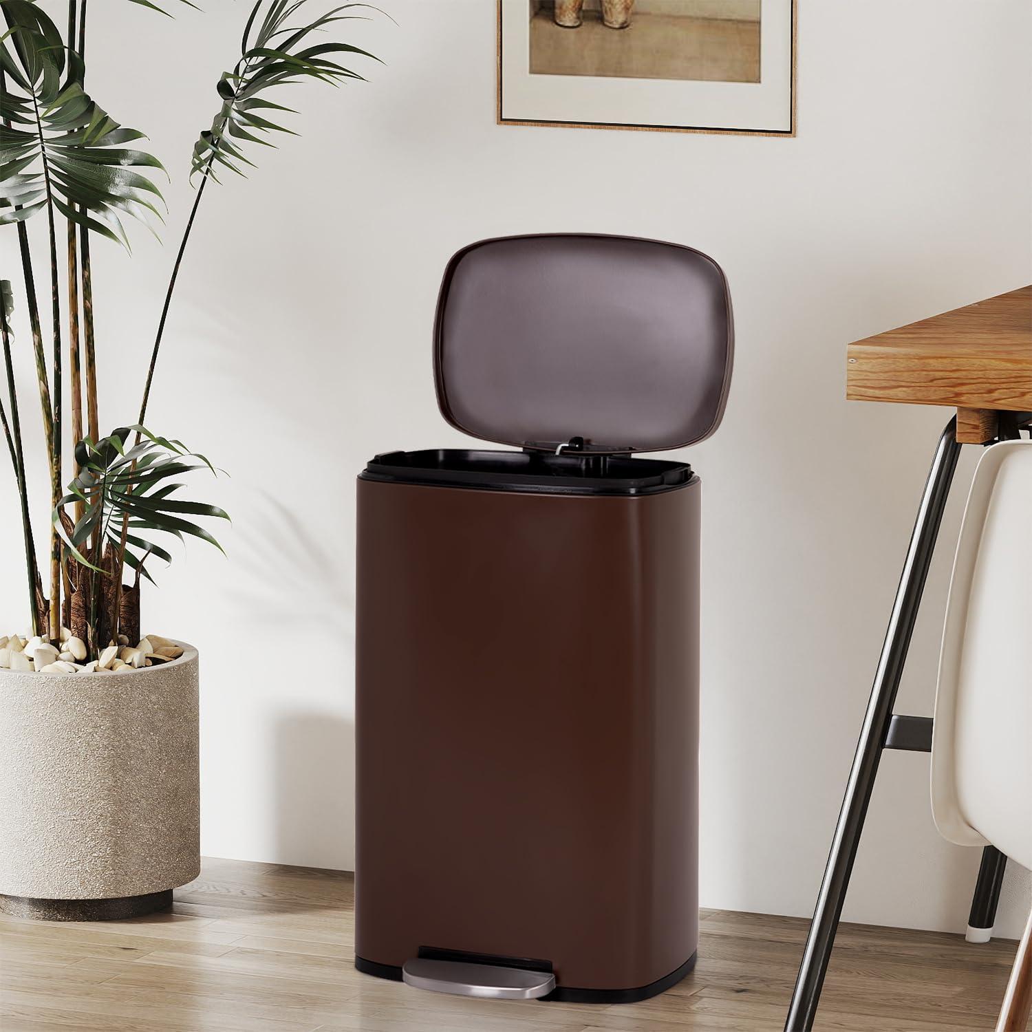 FDW 13 Gallon/50 L Garbage Can Kitchen Trash Can with Lid for Office Bedroom Bathroom Step Trash Bin Fingerprint-Proof Brushed Stainless Steel 13 Gallon / 50 Liter(Brown)