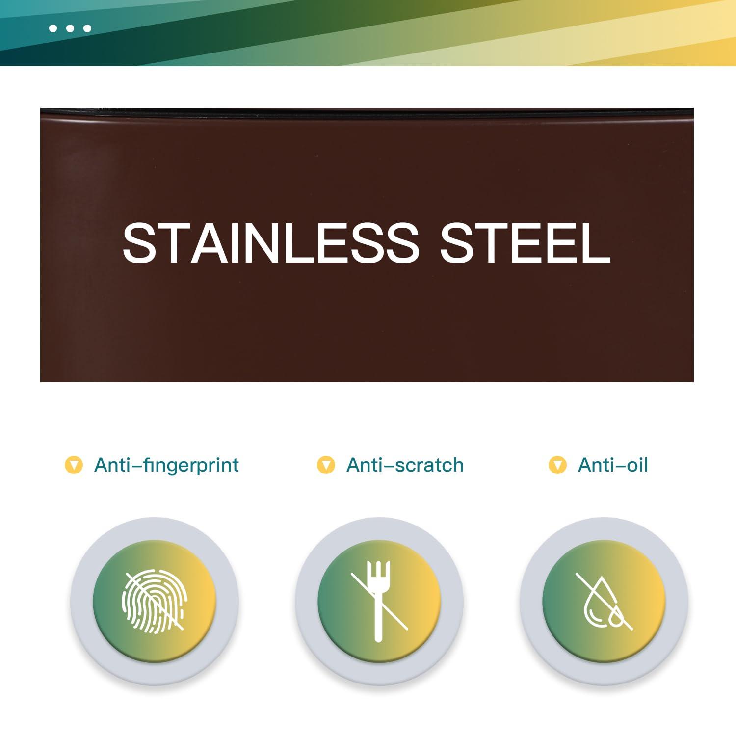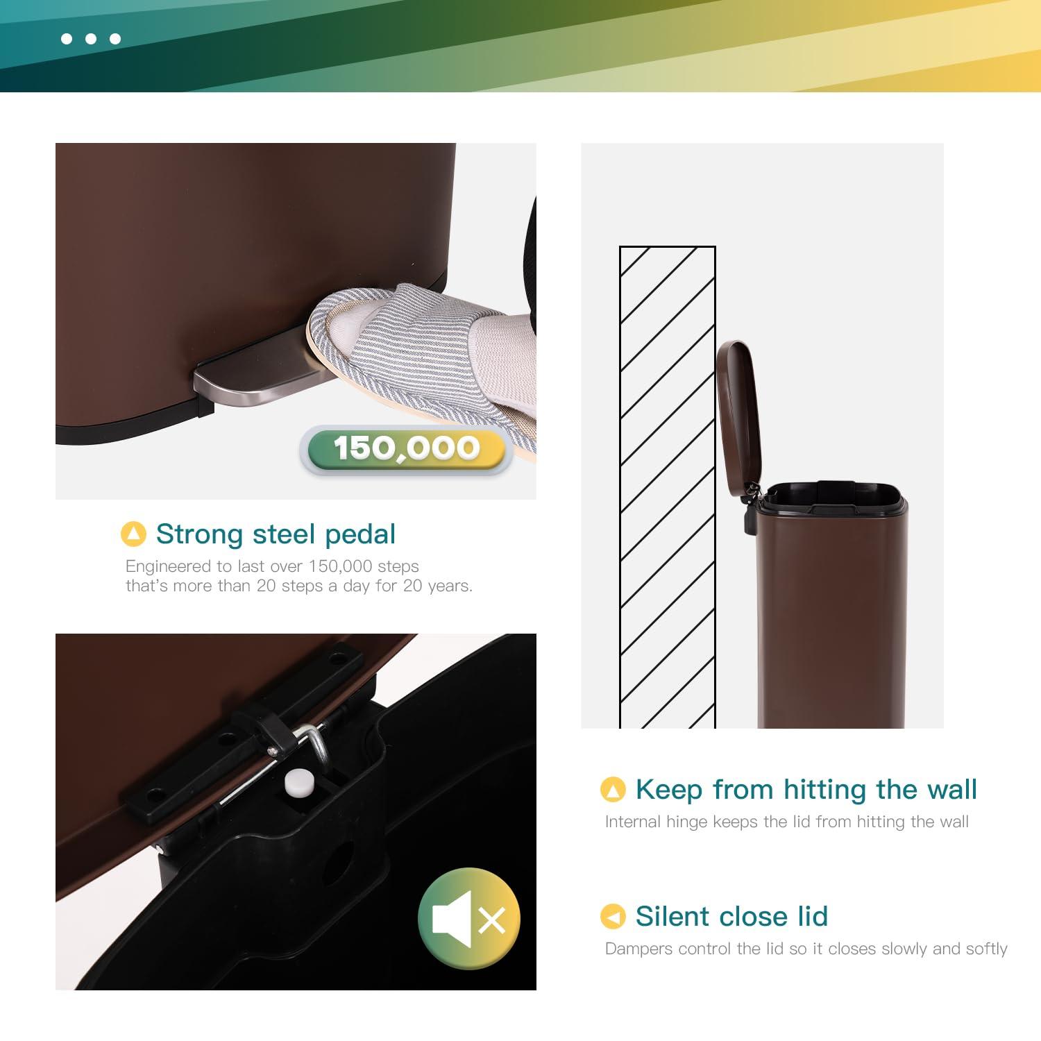 ★『STRONG &FASHIONABLE APPEARANCE』Our kitchen trash can is made of high quality stainless steel with a stainless steel wire drawing surface. The oval body with a sloping lid makes the garbage can look even more cool and beautiful. Buying our stainless steel trash can is a great deal for you.
