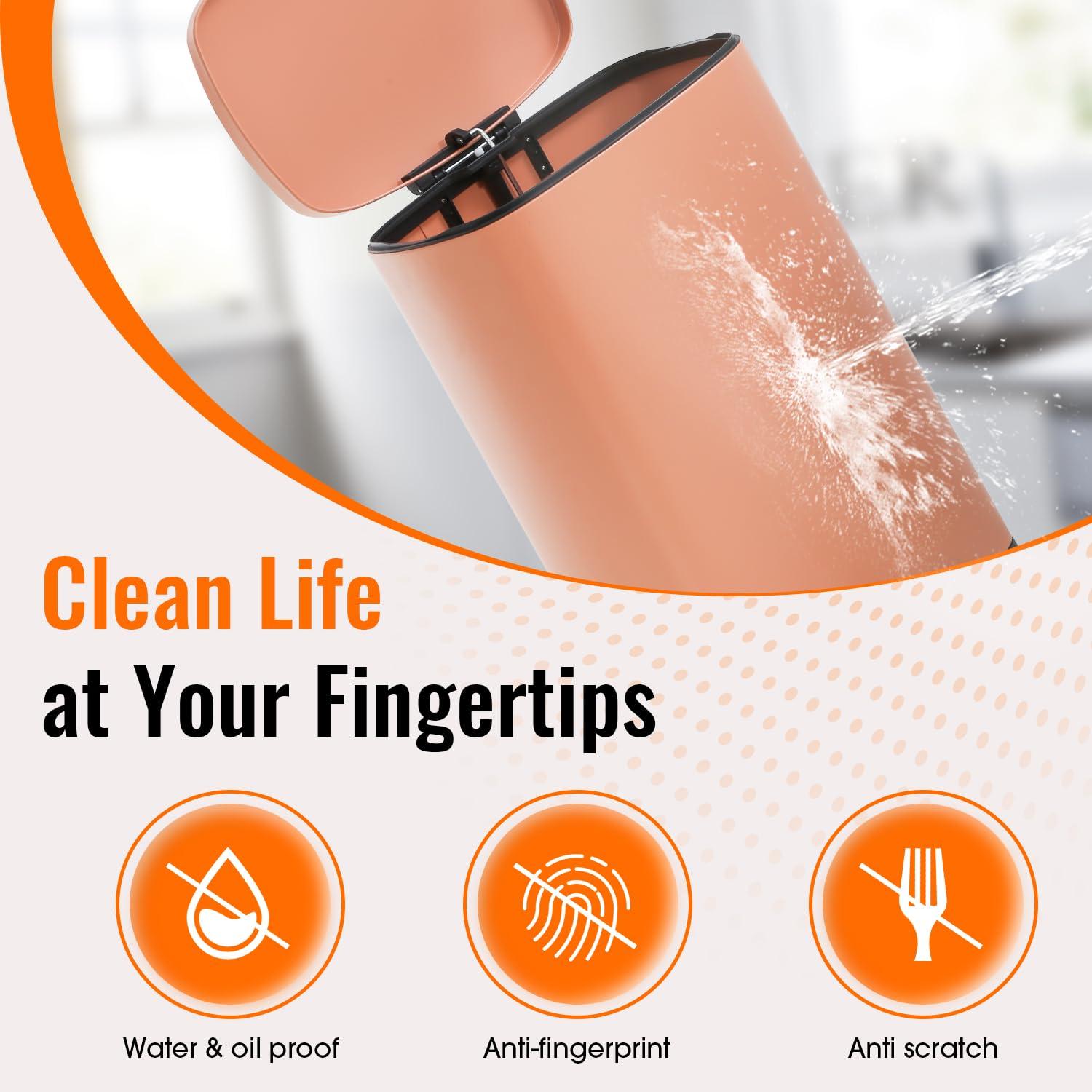 ★【EASY TO CLEAN & ISOLATED SMELL 】Our kitchen trash can is treated with stainless steel wire drawing, which makes it very convenient to clean up the stainless steel trash can. The dirt on the surface of the garbage can be easily removed with only a rag. If you don't want the whole house to smell like you don't like, you need to make sure that the lid of the bathroom trash can is always closed, and good sealing makes this possible.