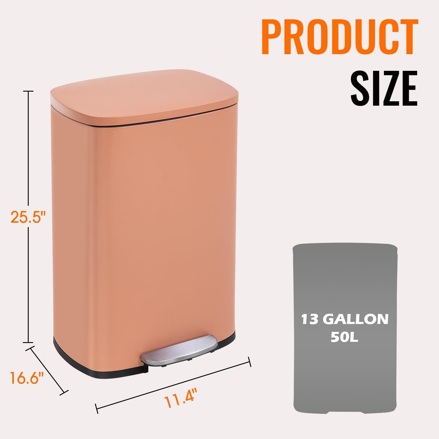 ★『13 GALLON ULTRA-LARGE CAPACITY』 13 gallons can absolutely meet your daily use, in the kitchen table next to a kitchen trash can, you will be more convenient to deal with kitchen waste. The regular 13-gallon garbage bag in the supermarket can be used in our stainless steel trash can, and it's kind of you to use a bigger bag. The lid of the garbage can is removable, it’s convenient for you to put in and take out the garbage bag.