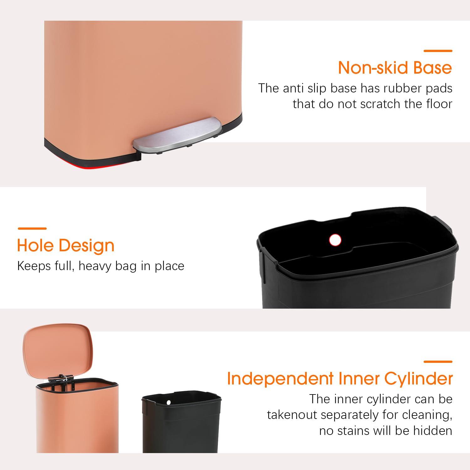★【SUITABLE FOR VARIOUS PLACES】 Our stainless steel trash can be used in all places where we can use it. It's big, beautiful and the price is right. Why not to buy one ? The kitchen, the bedroom, the living room, the study, the activity room, even in your kid's cabin, I think it's all right to put one of our kitchen trash can .Quality assurance, if garbage can have any quality problems, you can contact us the first time, we will give you a satisfactory answer.