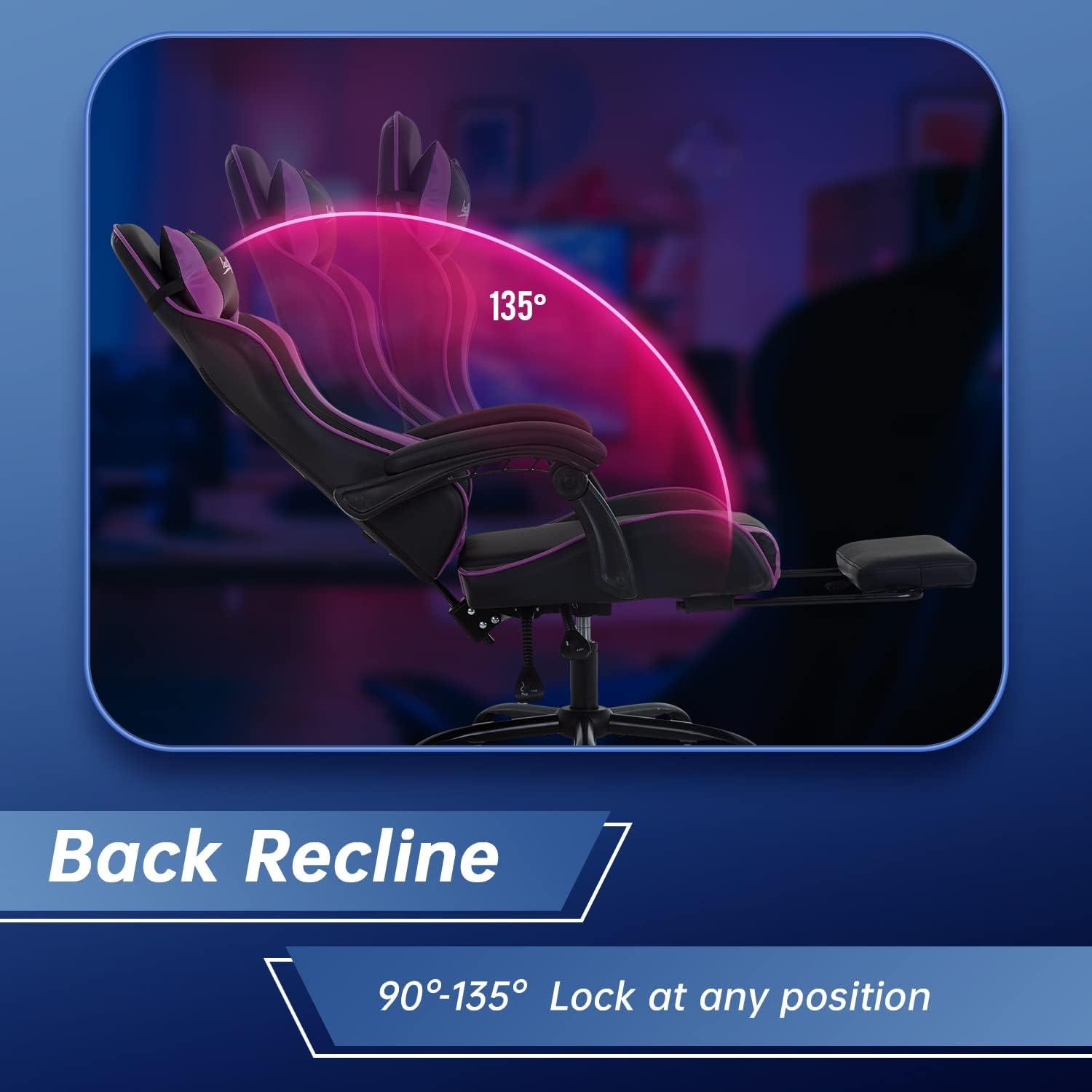 Racing computer chair have 90-135 degrees tilt mechanism, reclining armrest, and large comfortable seat cushion. Furthermost, the office chair swivels for multitasking convenience, and its five-legged base with durable casters allows for smooth-rolling mobility from one area to another.