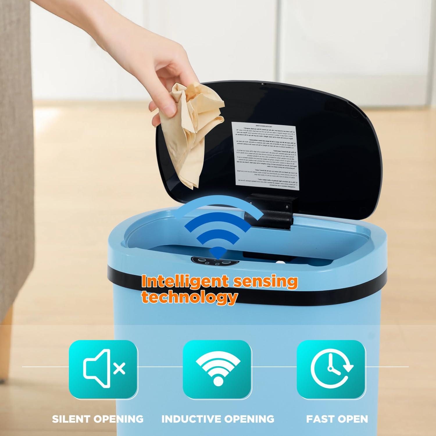 AUTOMATIC & HYGIENIC – The touchless sensor lid opens and closes automatically, keeping your hands clean and ensuring a noiseless, sanitary trash experience.
