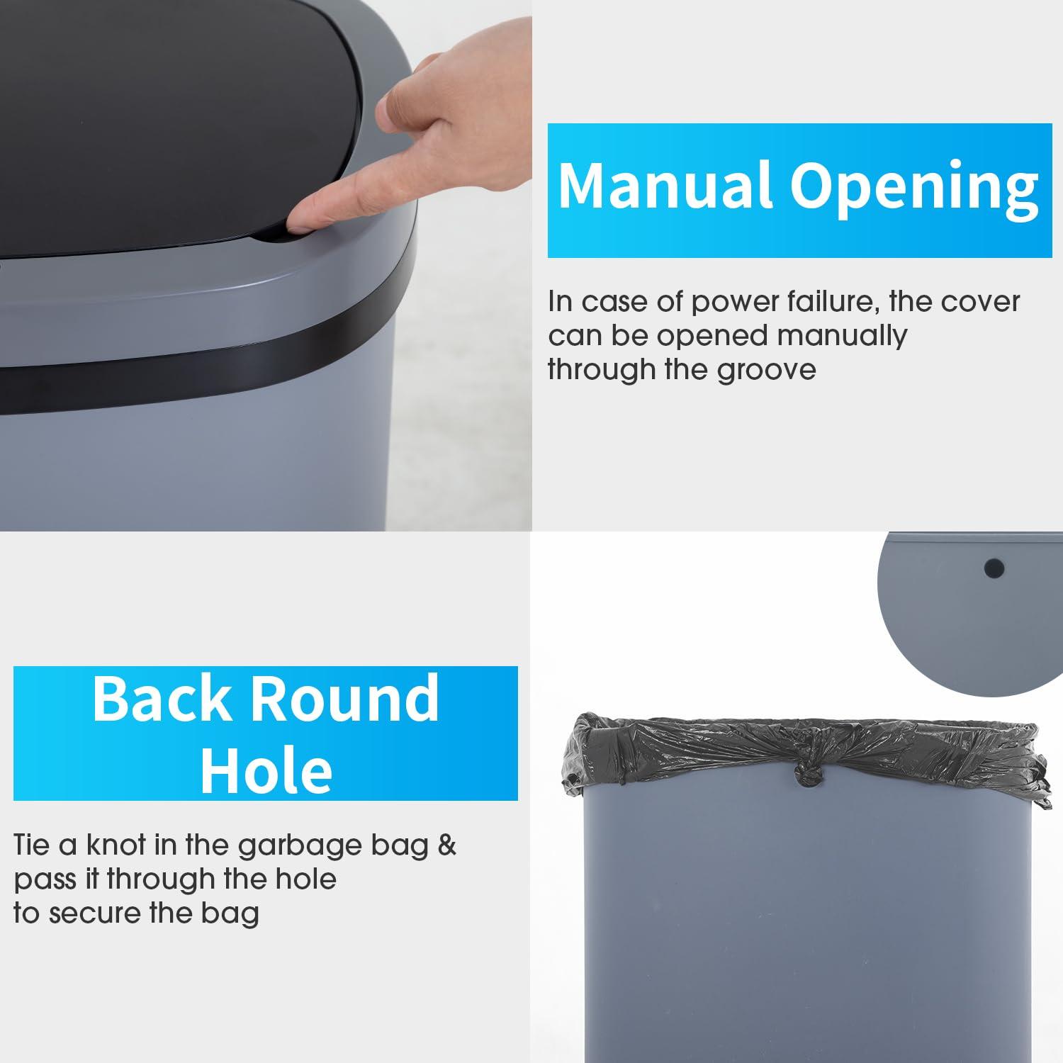 AUTOMATIC & HYGIENIC – The touchless sensor lid opens and closes automatically, keeping your hands clean and ensuring a noiseless, sanitary trash experience.