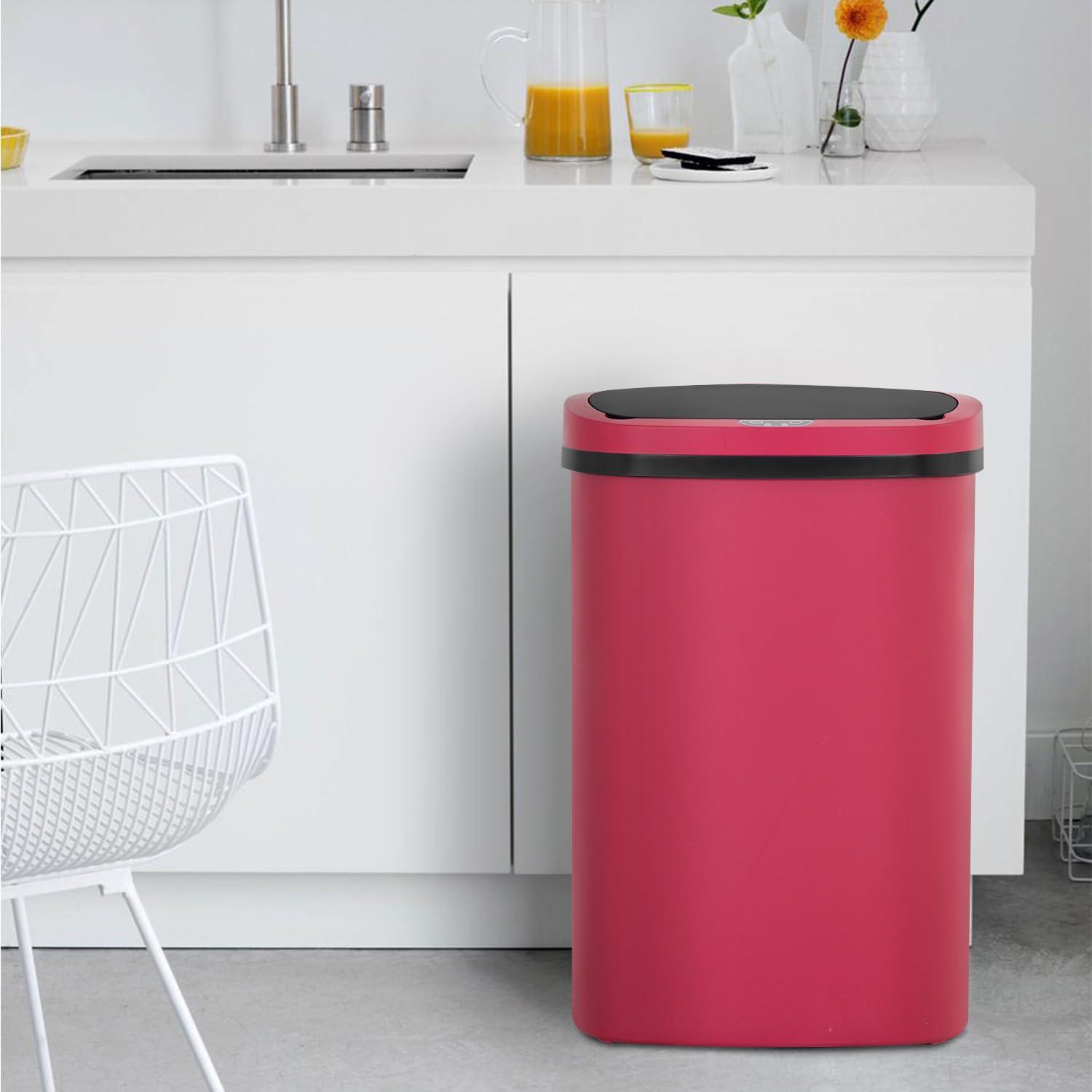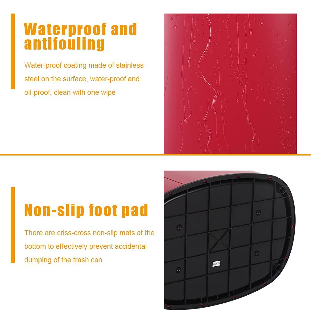 MODERN & DURABLE DESIGN – Made of premium stainless steel with a fingerprint-resistant finish. The sleek oval body and sloping lid design fit seamlessly into kitchens, bathrooms, bedrooms, and offices.