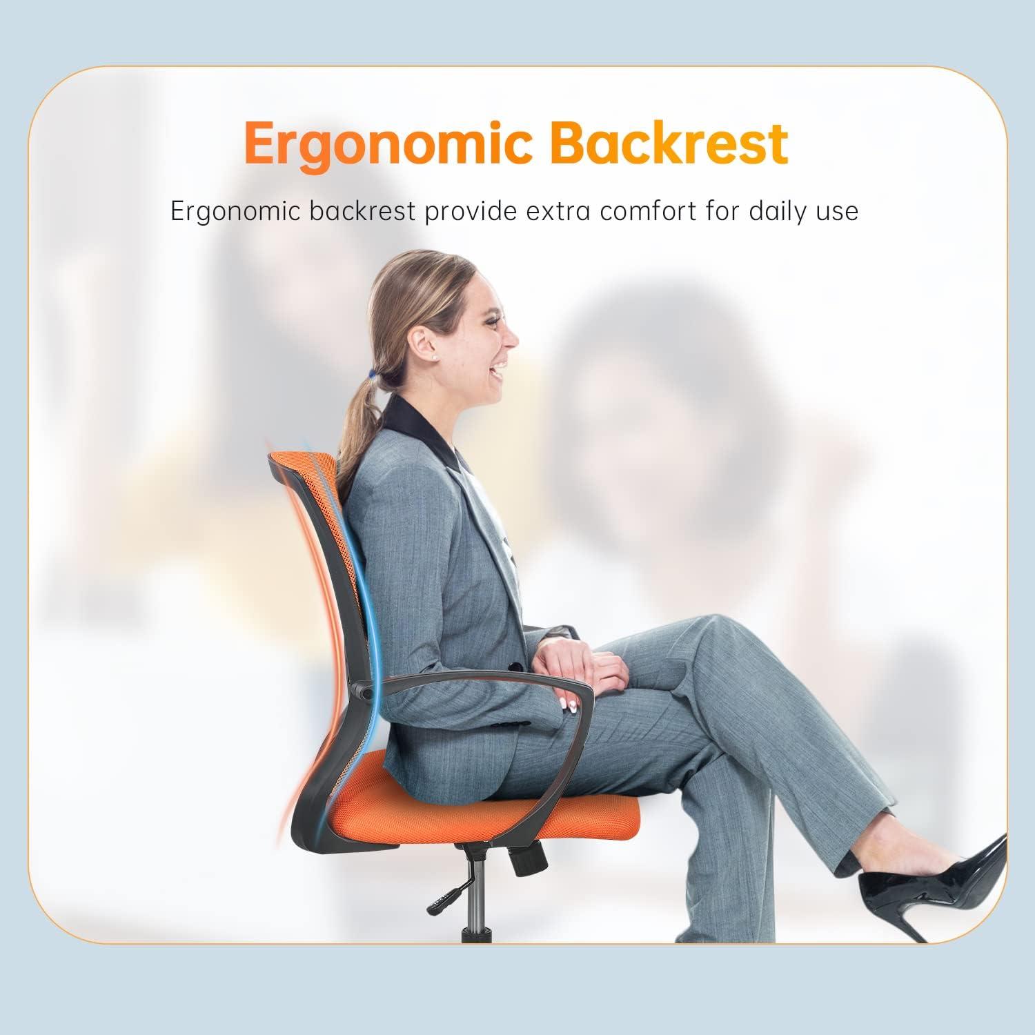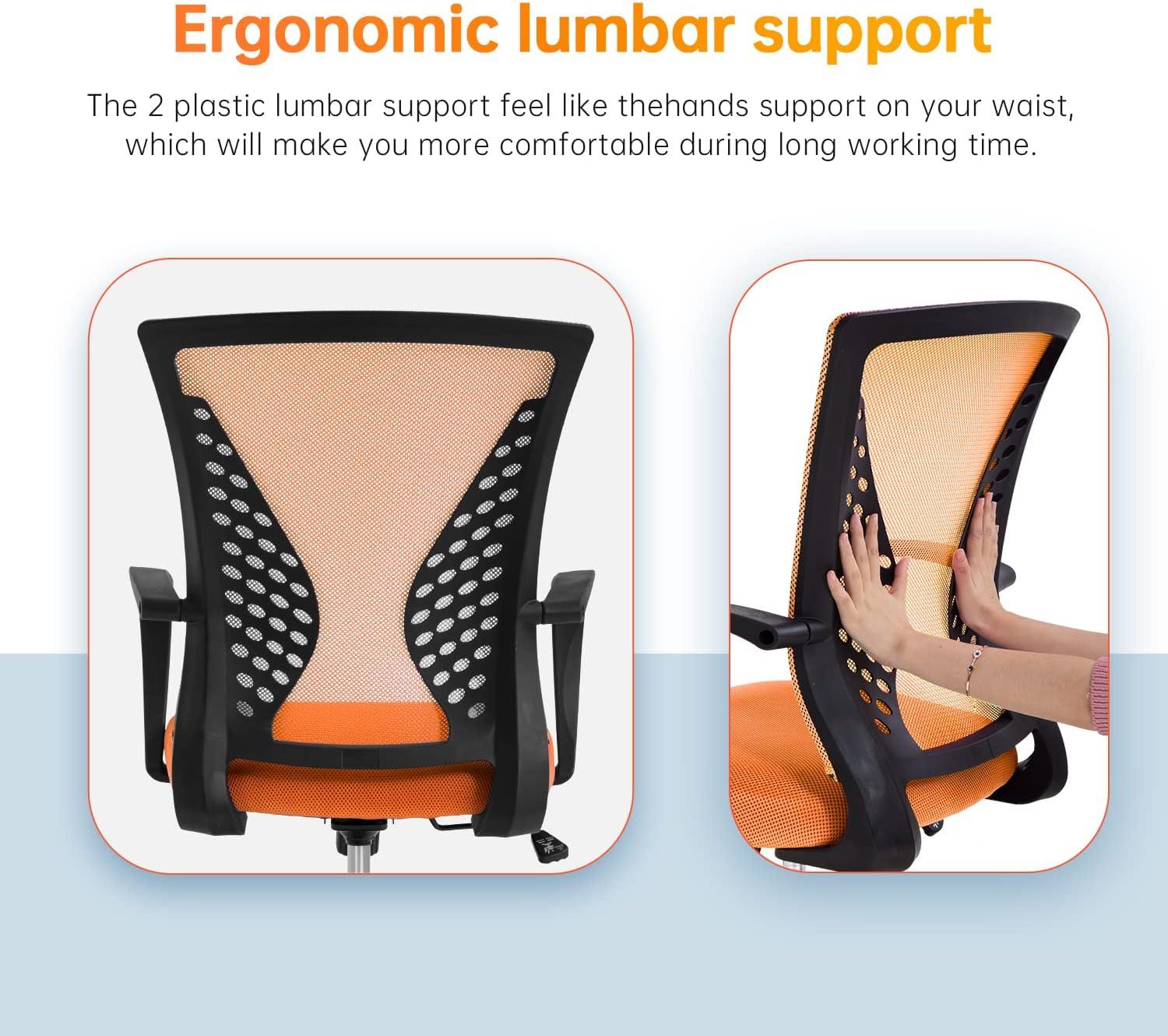 Office Computer Mesh Chair Ergonomic Mid Back Swivel Rolling Desk Chair with Armrest Height Adjustable Lumbar Support x ,Black(Orange)