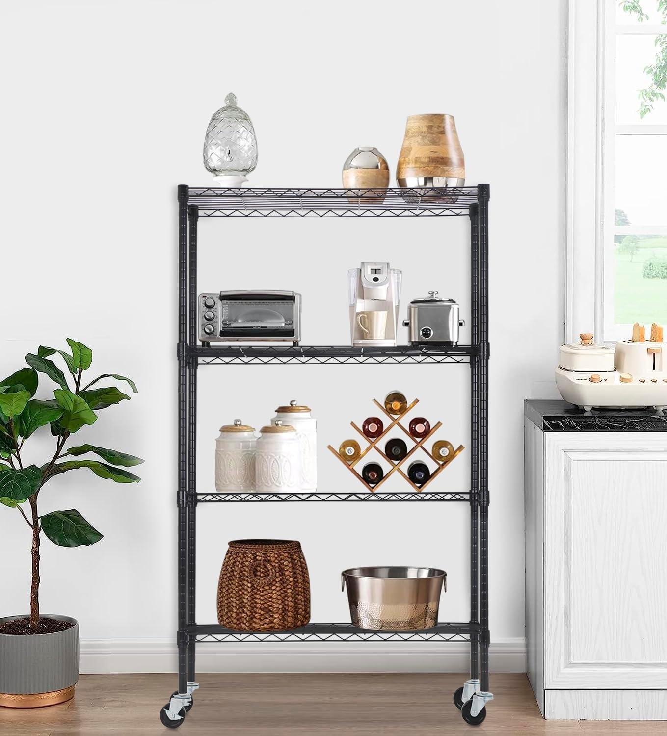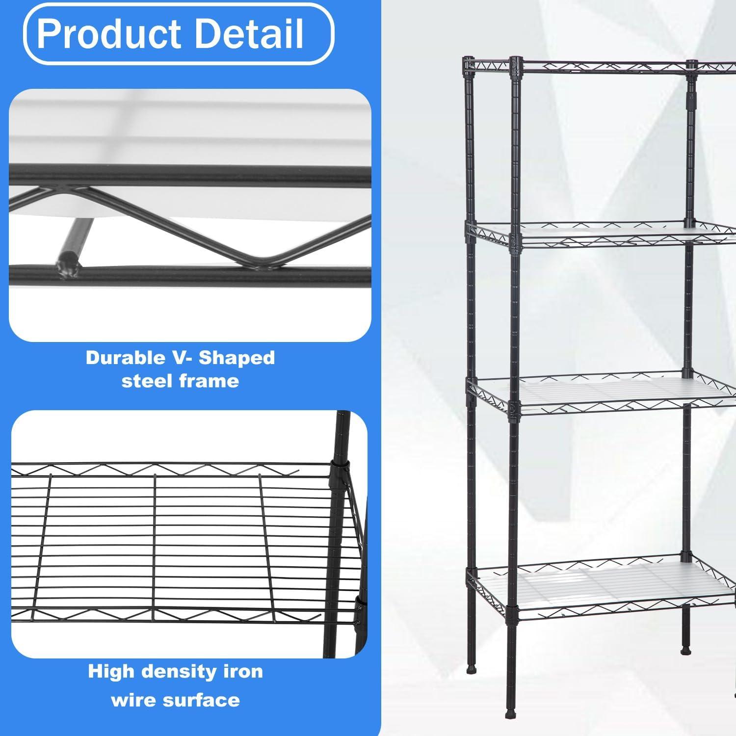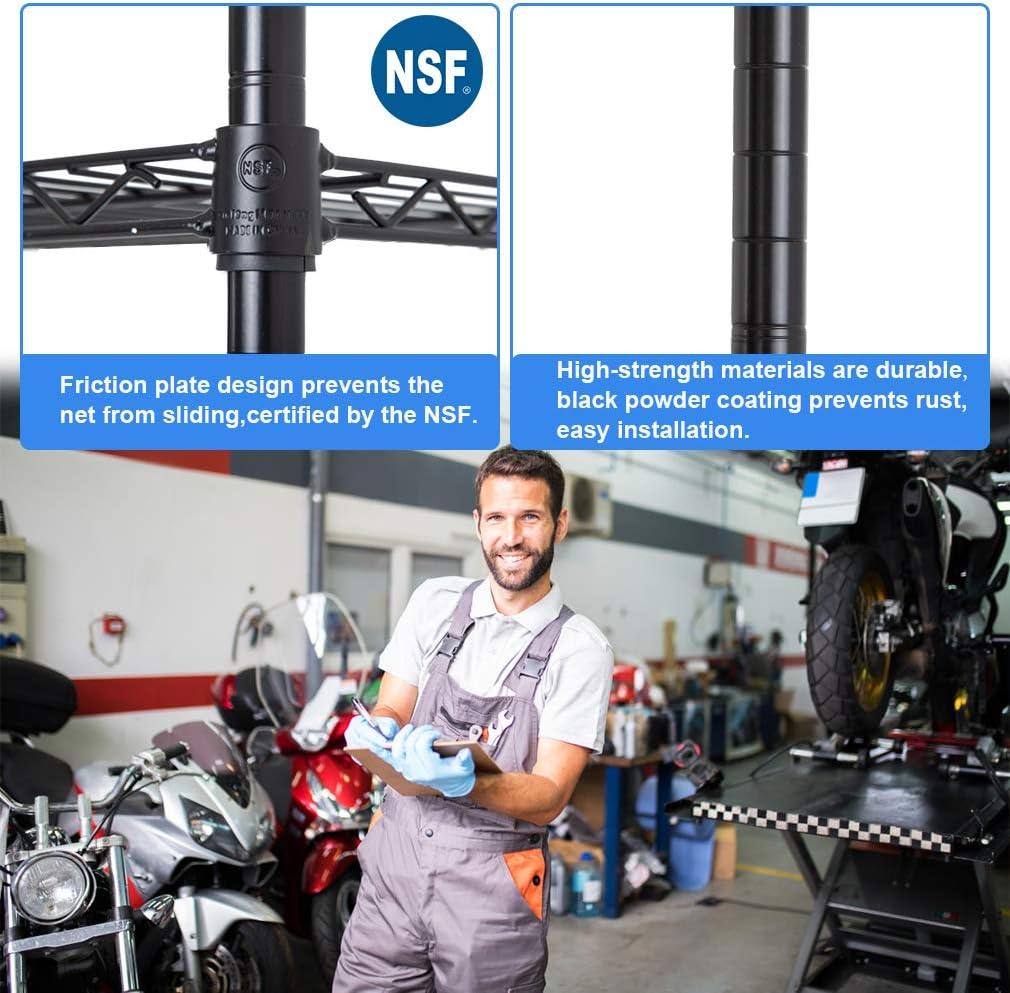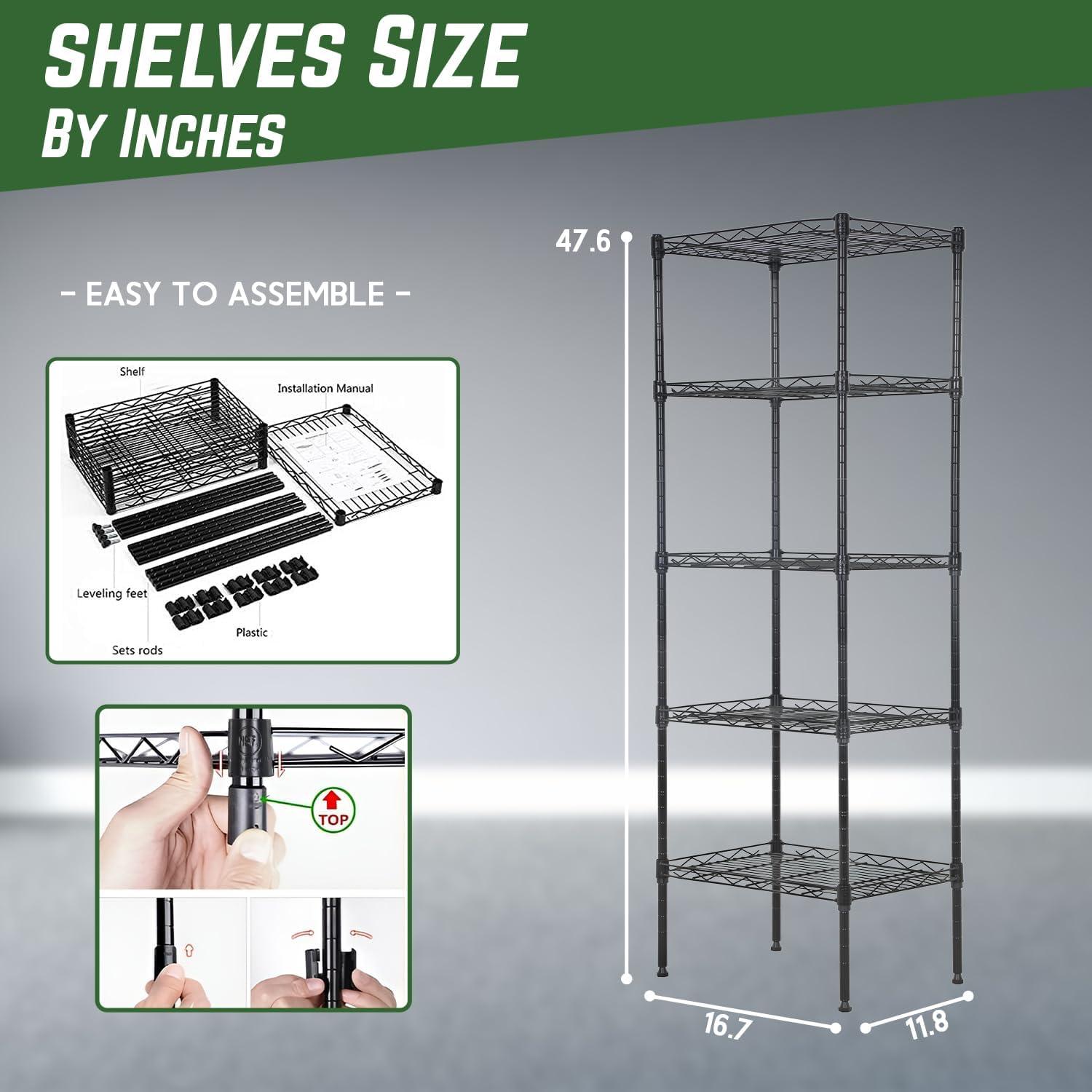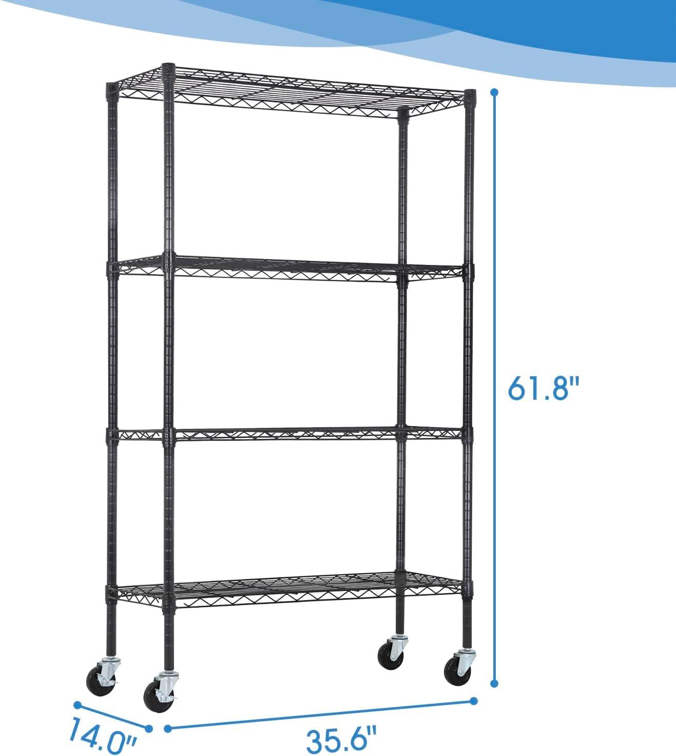 This is 6 tier commercial grade wire shelf,you only need to spend 15min to install it.The shelving unit is made of steel wire shelving.Maximum weight capacity per shelf is 220lbs when equally distributed on feet levelers.Maximum entire unit weight capacity is 500lbs when equally distributed on casters.You can use the feet levelers or wheels to suit your needs.The storage rack provide an enormous amount of space for you.You can use this wire shelving in the kitchen bedroom garage Large commercial warehouse.