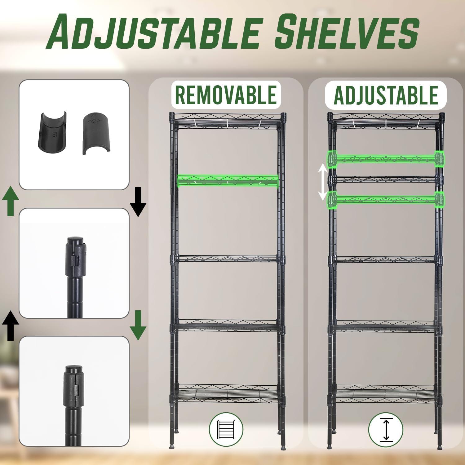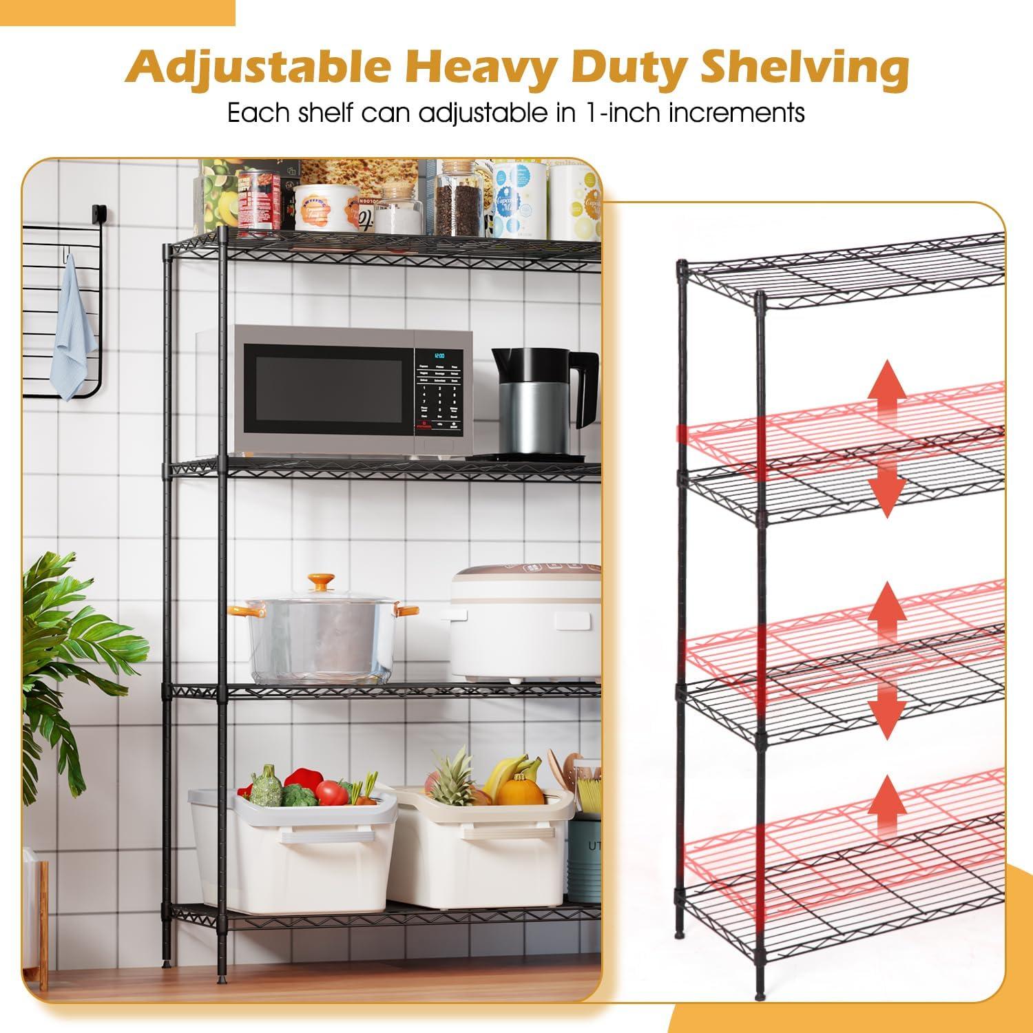 Adjustable,The shelves can be placed higher or lower in 1-inch increments.Easy to store things.