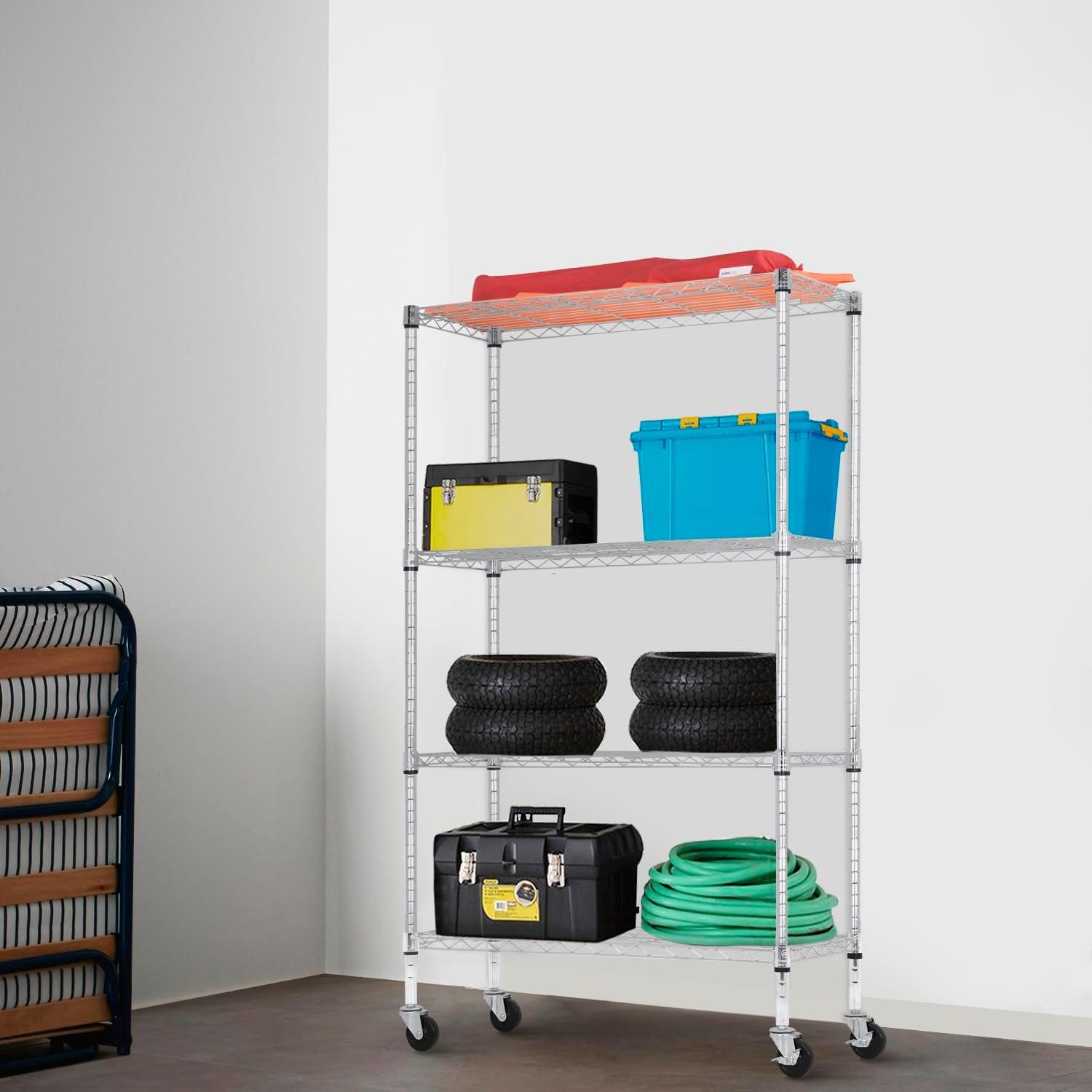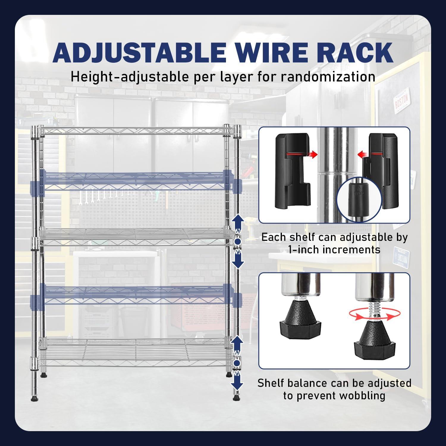 BestOffice 4-Tier Wire Shelving Unit Steel Large Metal Shelf Organizer Garage Storage Shelves Heavy Duty NSF Certified Commercial Grade Height Adjustable Metal Rack 4000 LBS Capacity (Black)(Black)
