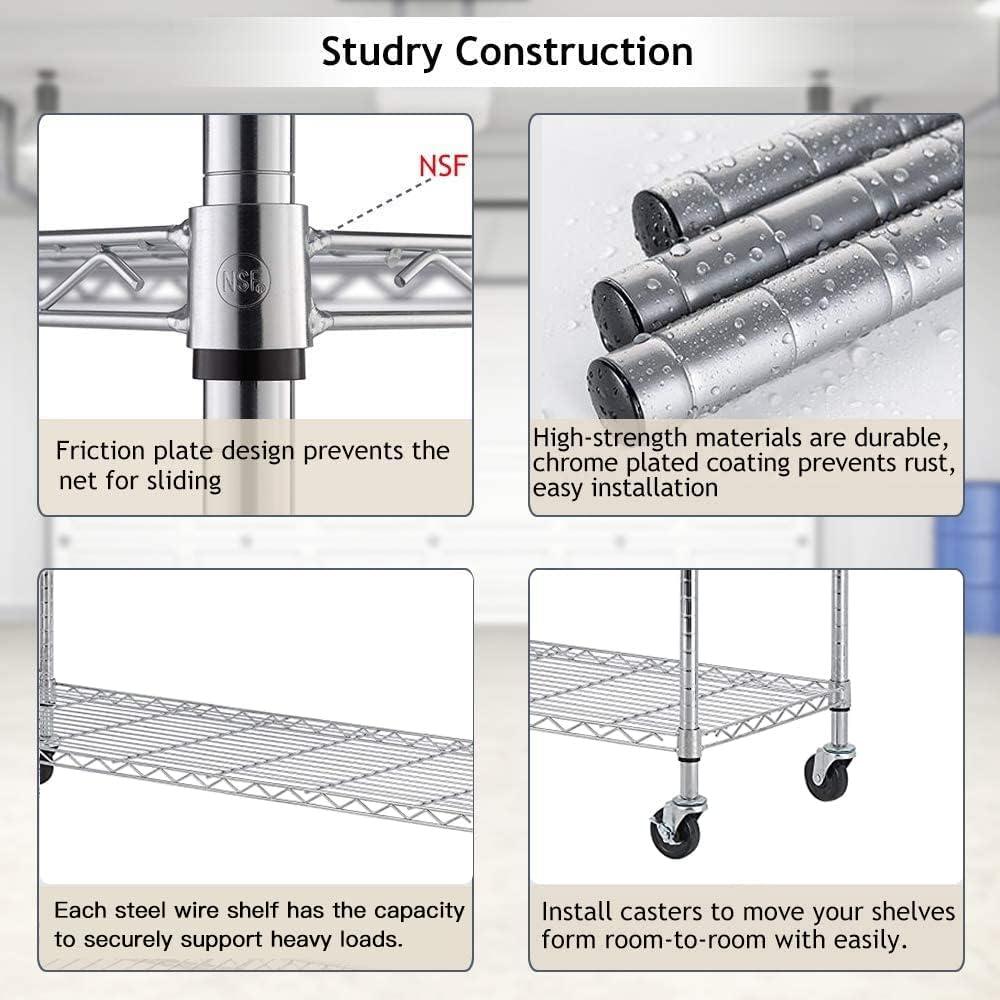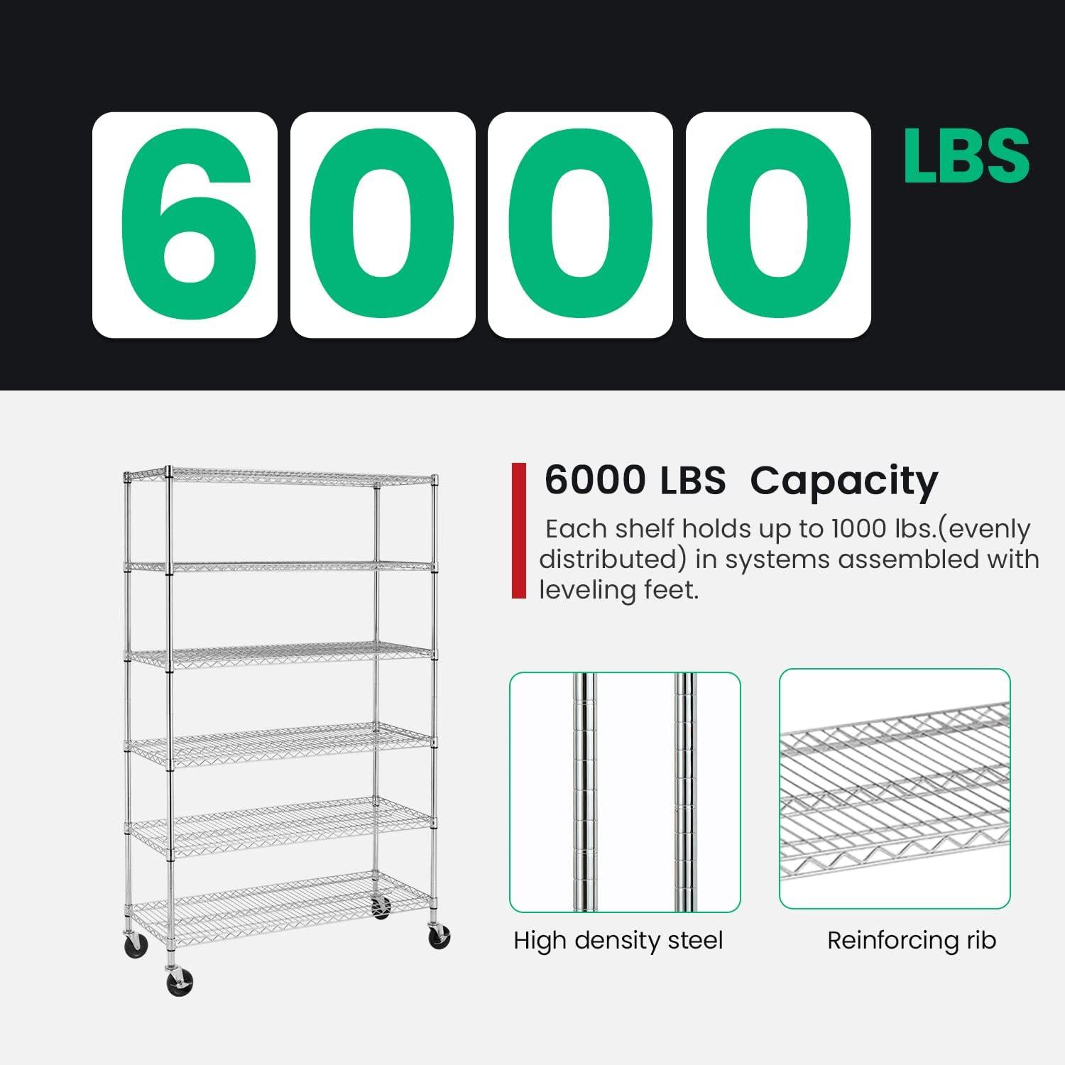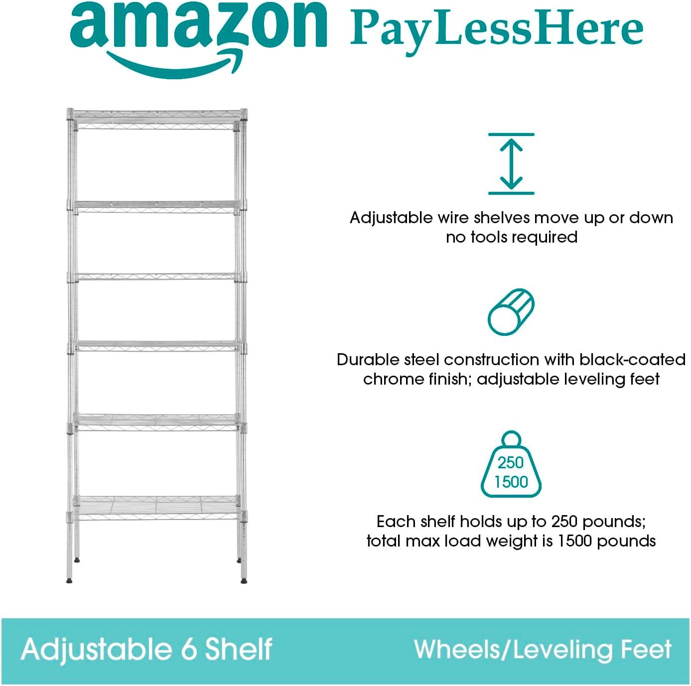 imagePayLessHere  6Tier Wire Shelf with Wheels  48quotx18quotx82quot  Chrome  Adjustable Racks  HeavyDuty Storage Shelves Holds Upto 510 lbs  RustResistant NoTool Assembly  for Home Garage ShelvingChrome