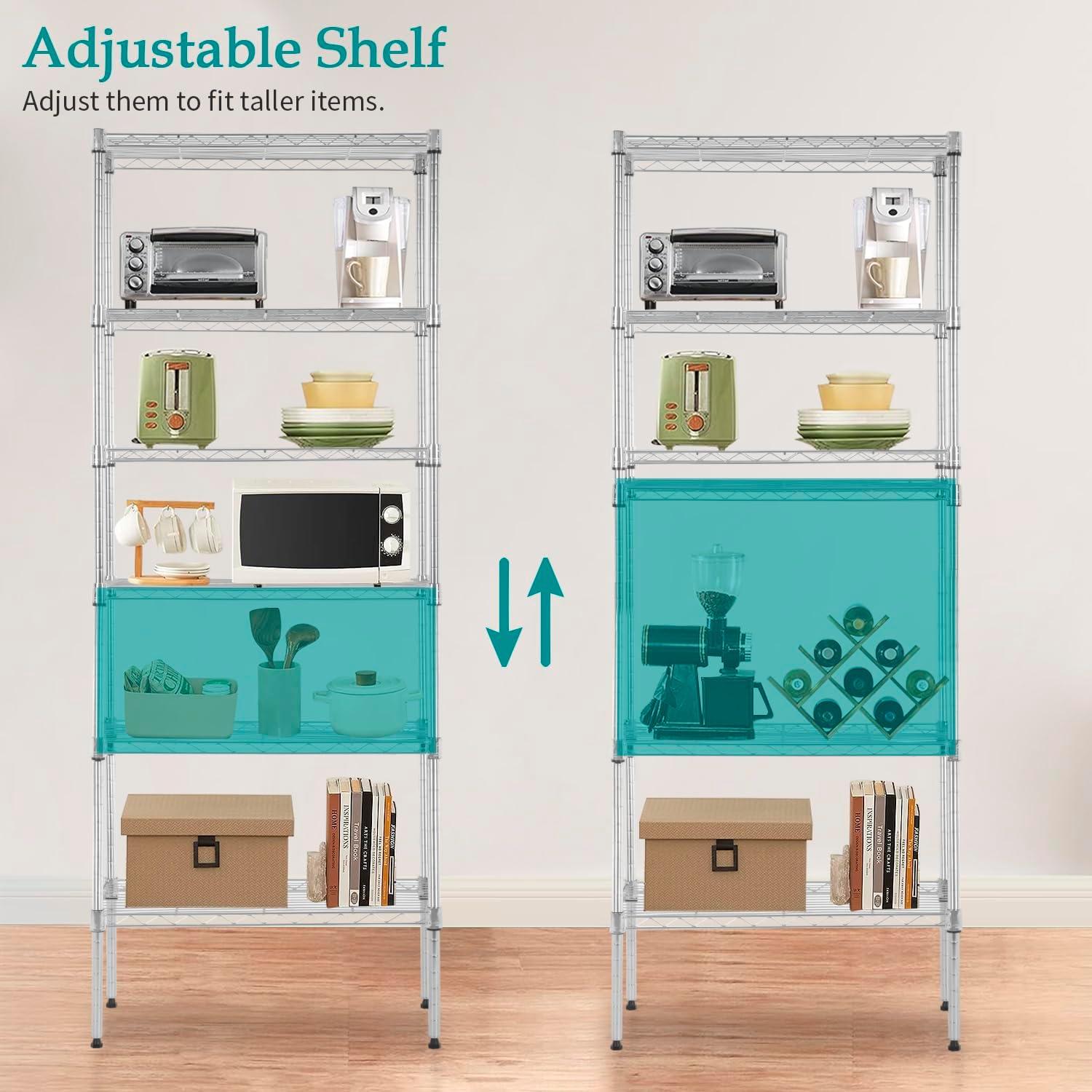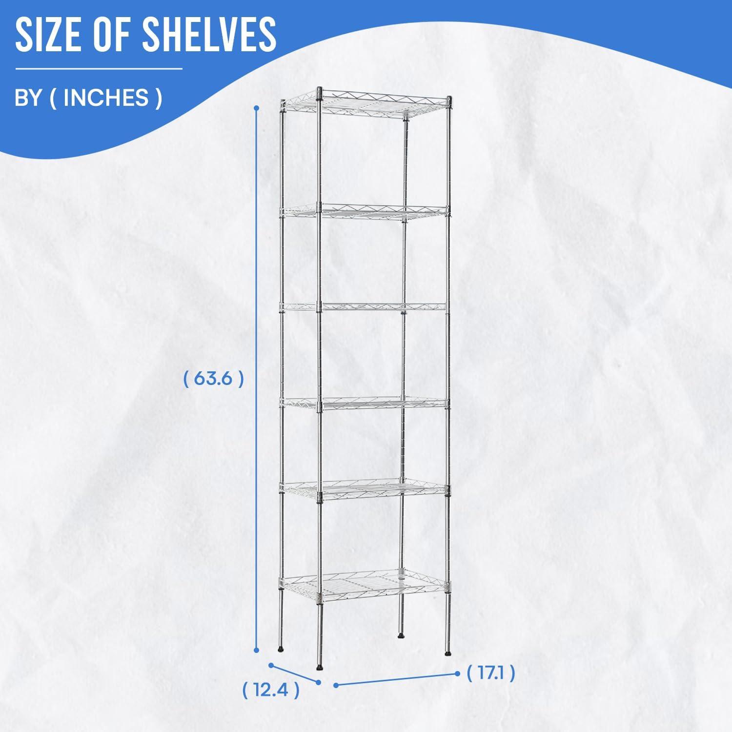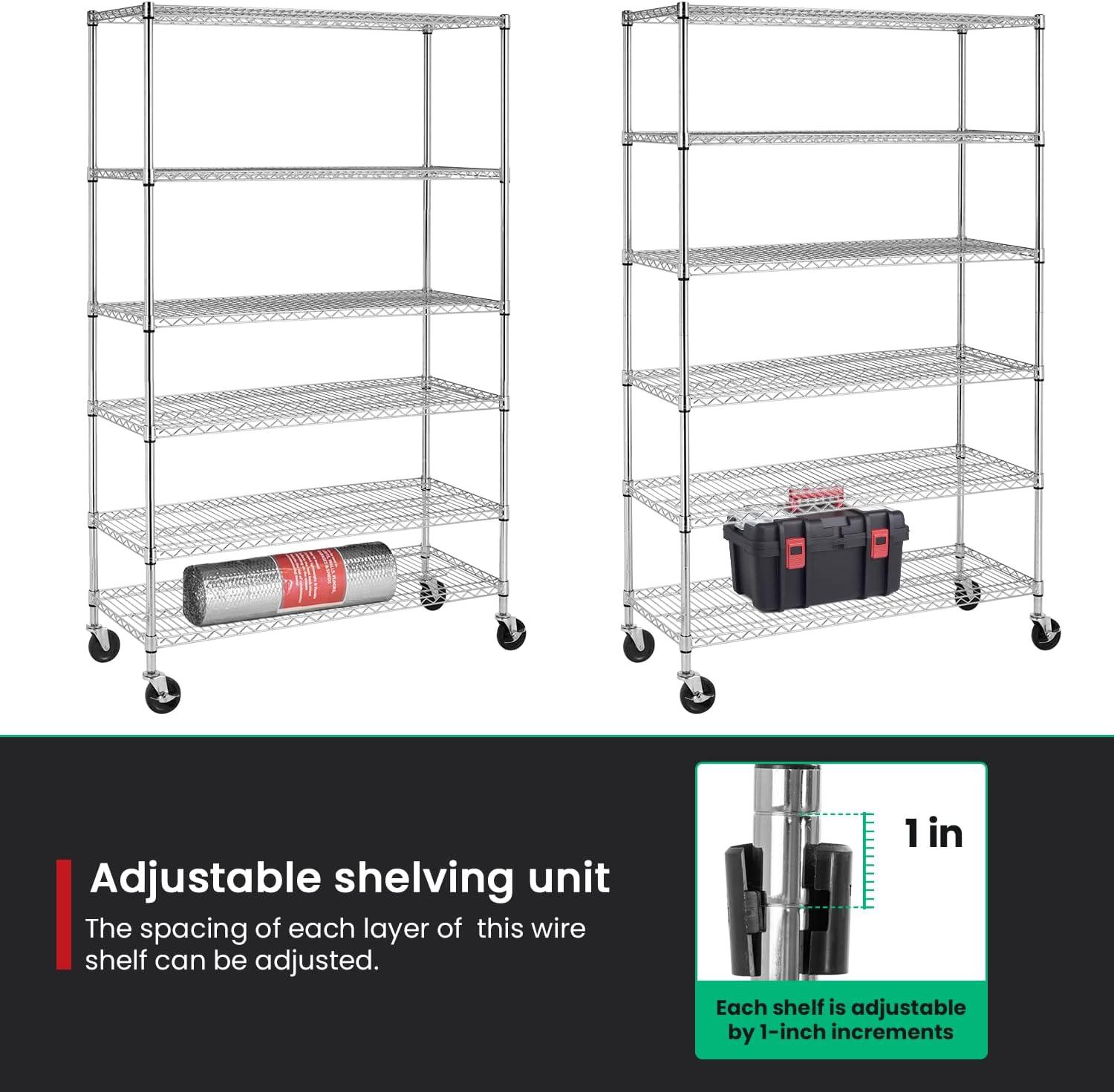 PayLessHere | 6-Tier Wire Shelf with Wheels | 48"x18"x82" | Chrome | Adjustable Racks | Heavy-Duty Storage Shelves, Holds Upto 510 lbs | Rust-Resistant, No-Tool Assembly | for Home, Garage Shelving(Chrome)