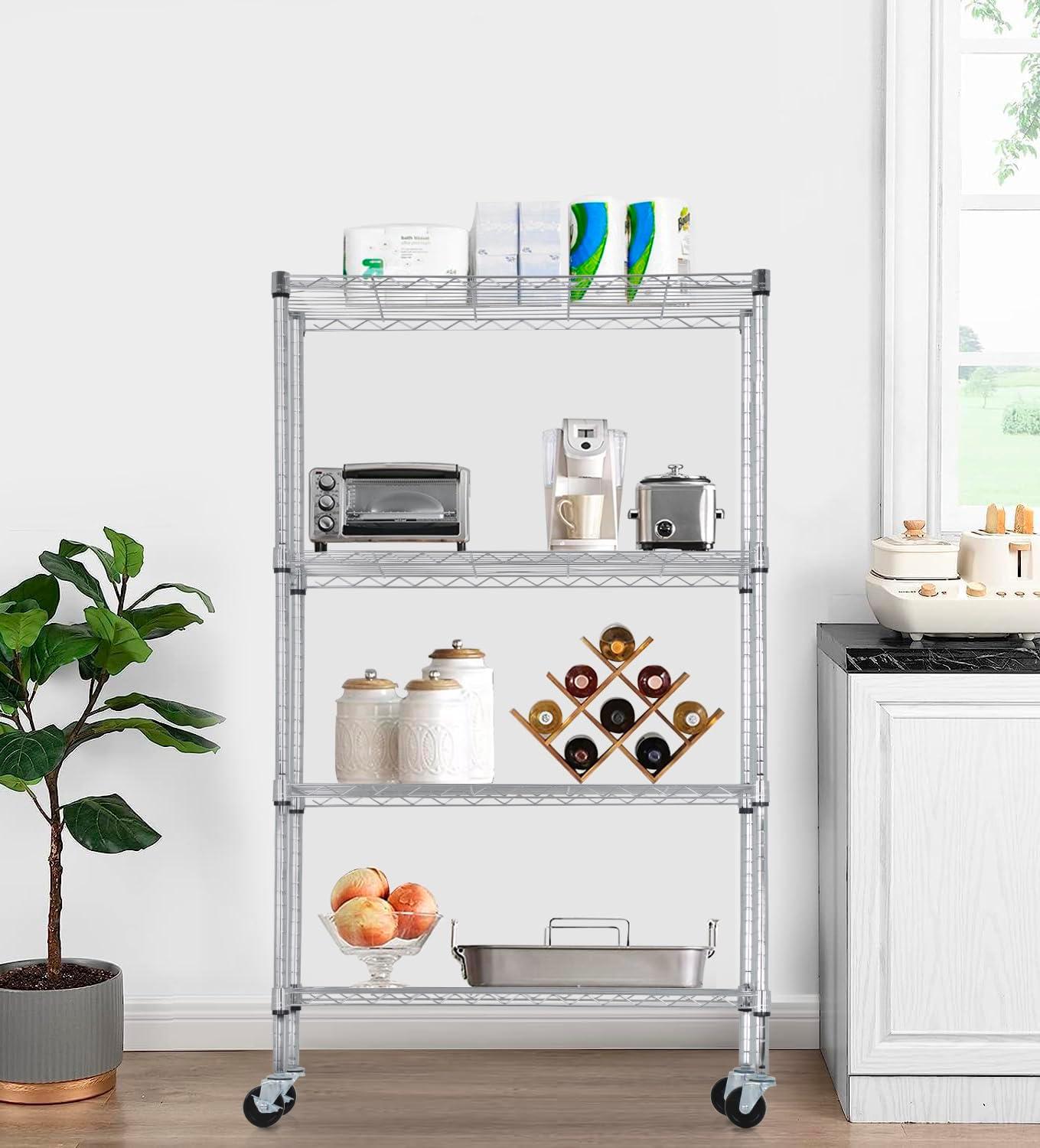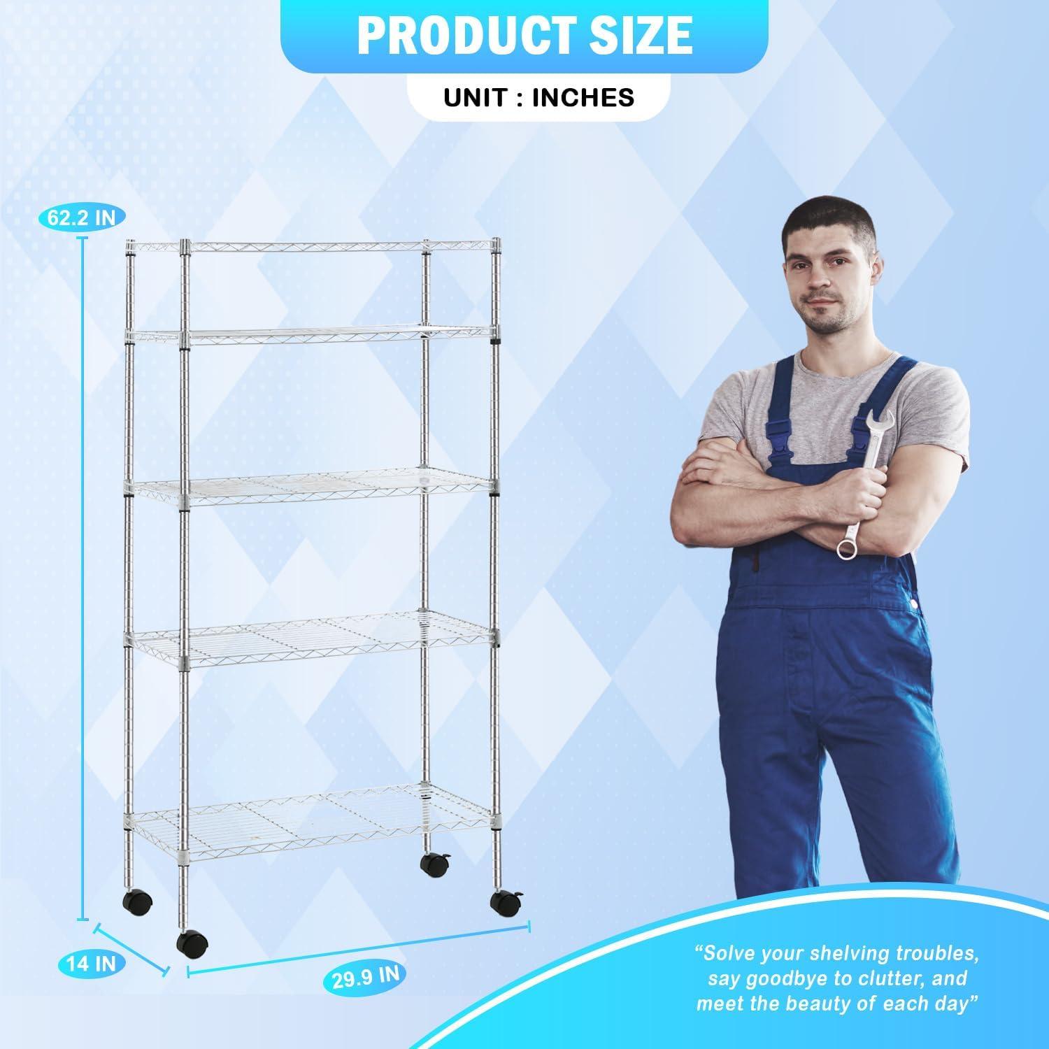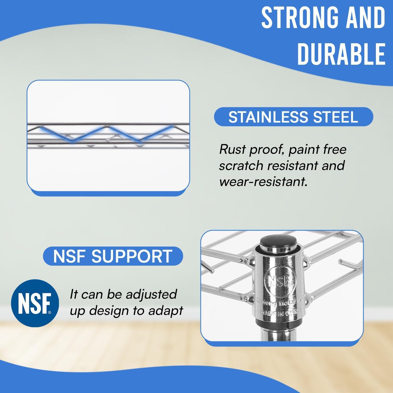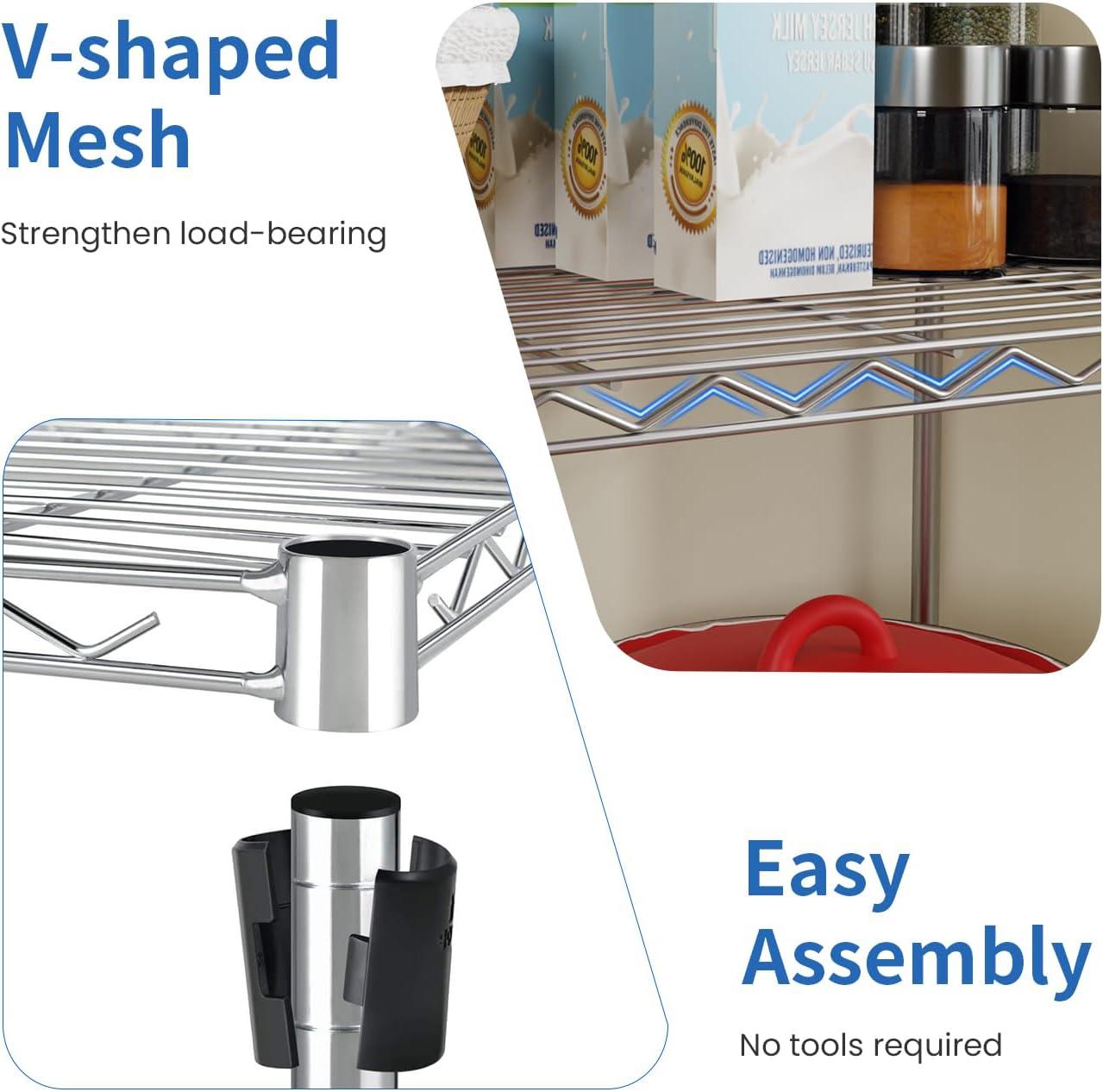 PayLessHere | 6-Tier Wire Shelf with Wheels | 48"x18"x82" | Chrome | Adjustable Racks | Heavy-Duty Storage Shelves, Holds Upto 510 lbs | Rust-Resistant, No-Tool Assembly | for Home, Garage Shelving(Chrome)