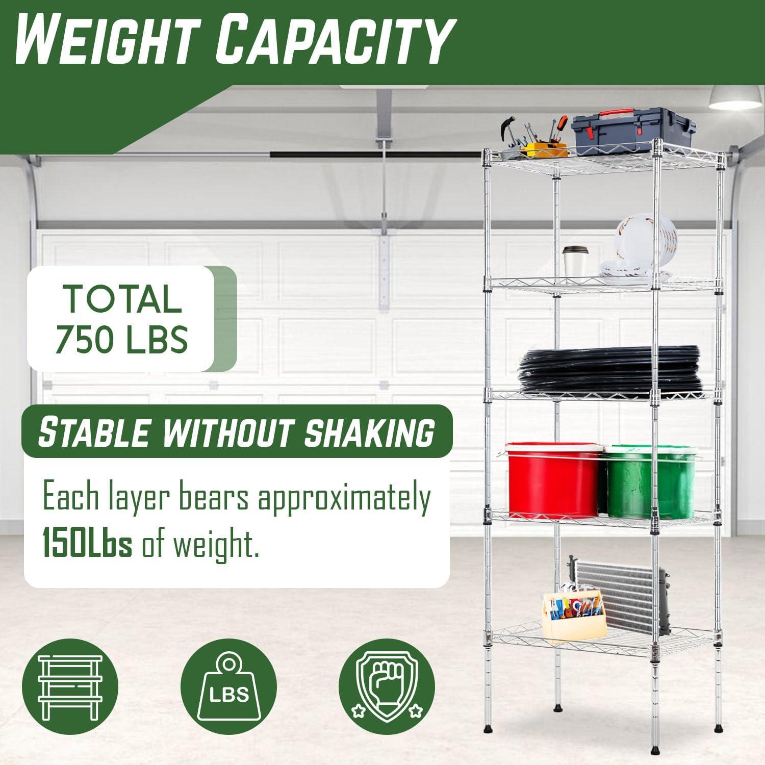 BUILT TO LAST: Made with rust-resistant high-quality pipes and steel wire, this heavy duty shelving unit offers long-lasting durability and support, ideal for garage storage shelves.