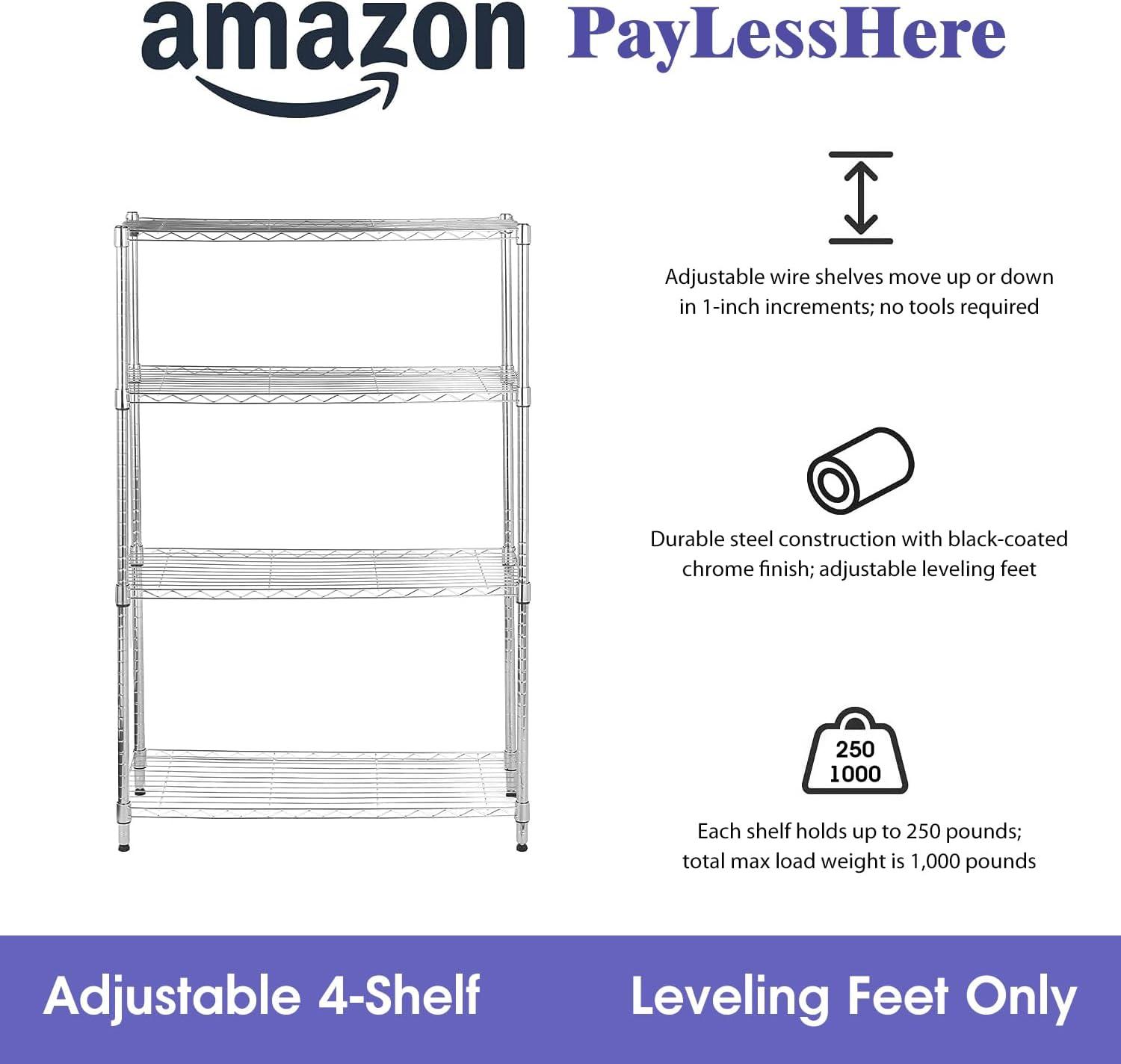 imageBestOffice 4Tier Wire Shelving Unit Steel Large Metal Shelf Organizer Garage Storage Shelves Heavy Duty NSF Certified Commercial Grade Height Adjustable Metal Rack 4000 LBS Capacity BlackBlack
