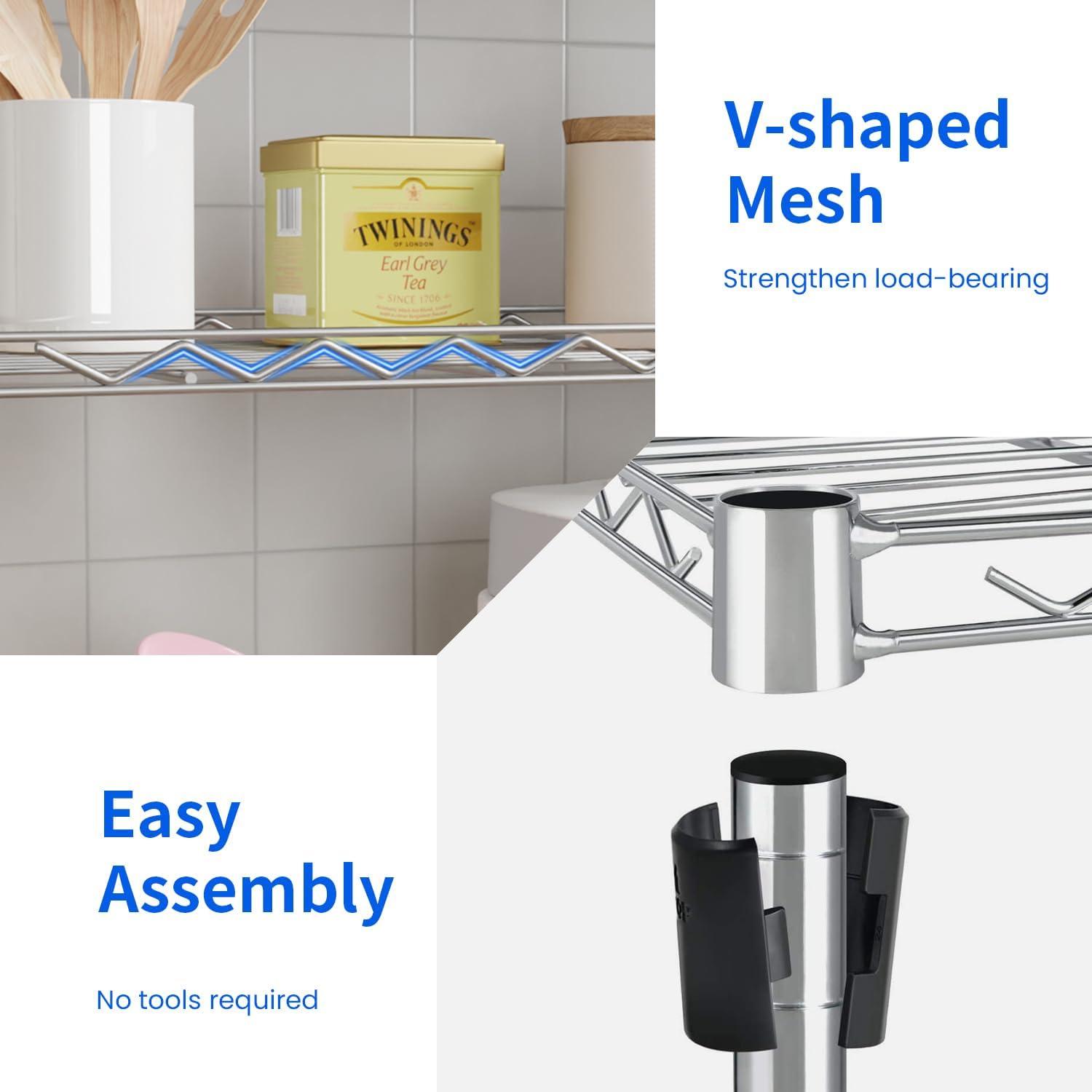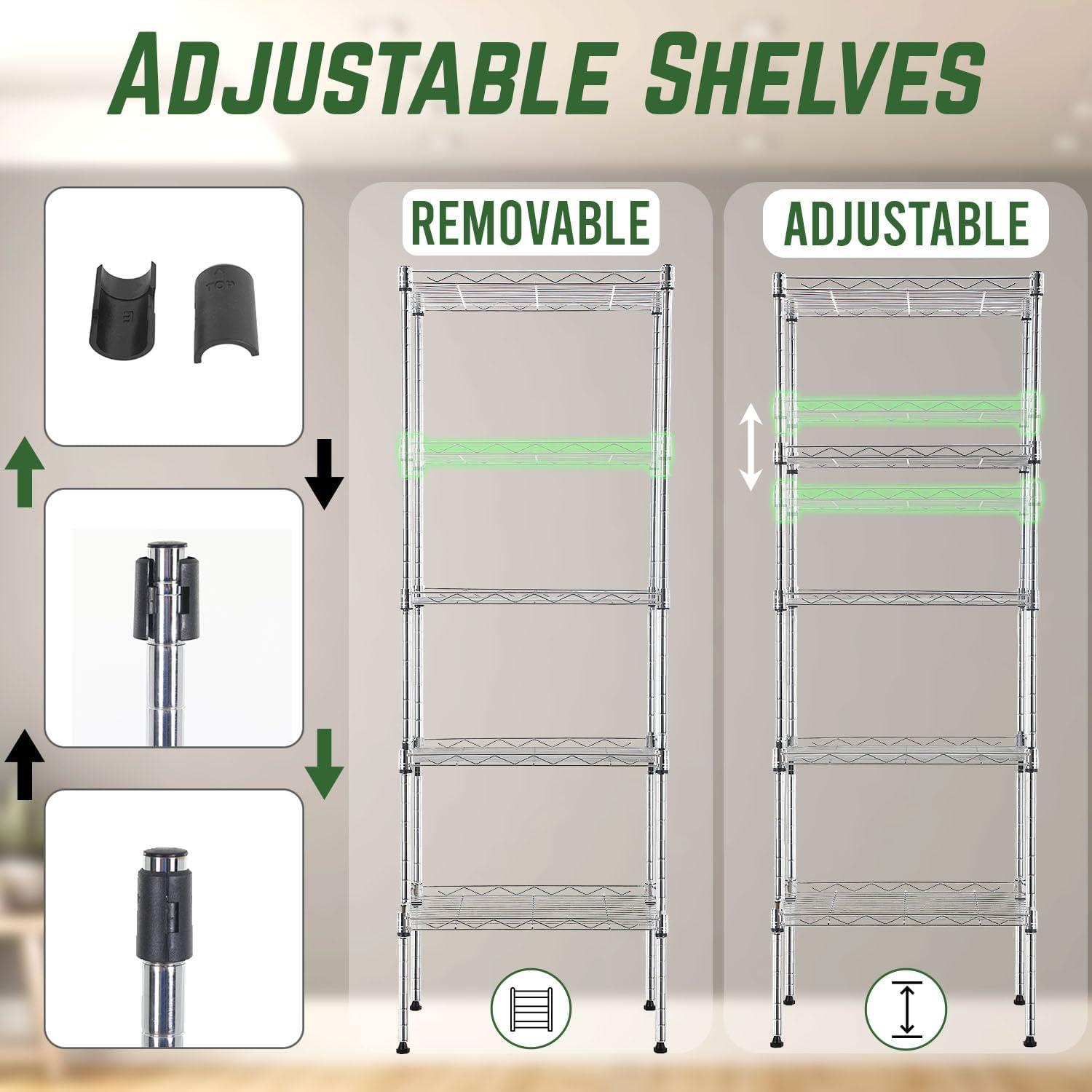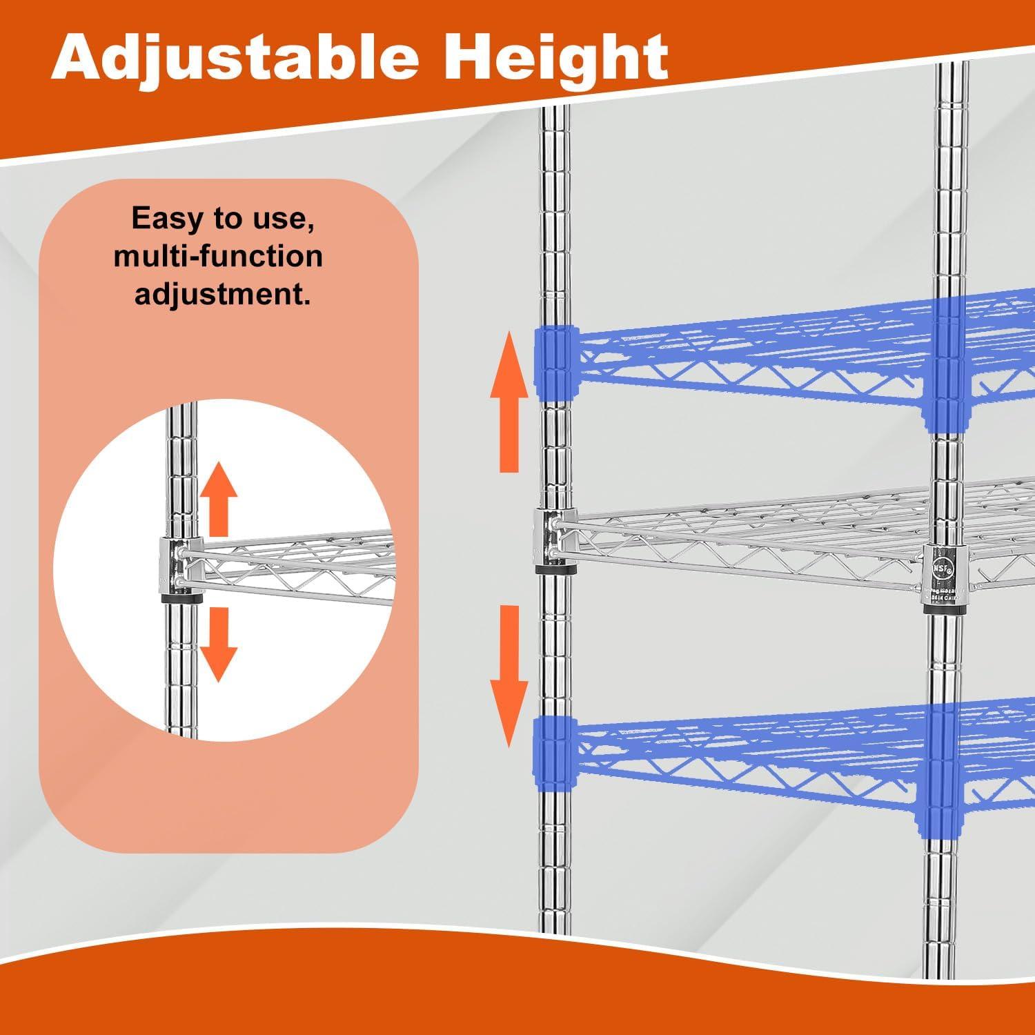 ADJUSTABLE DESIGN FOR FLEXIBILITY: Customize shelf spacing to fit tall, bulky, or oddly shaped items, perfect for adapting your wire shelf to evolving storage and organization needs.