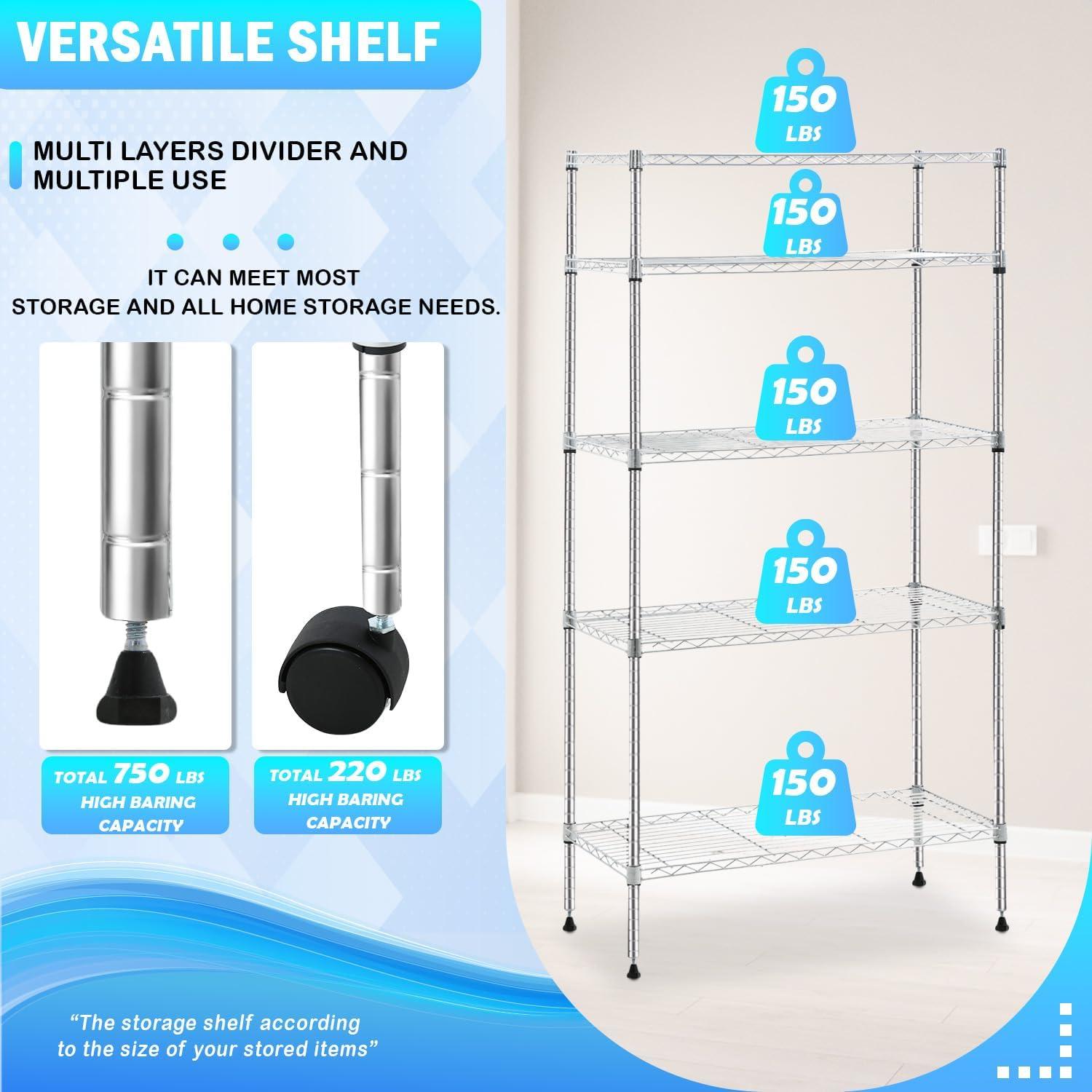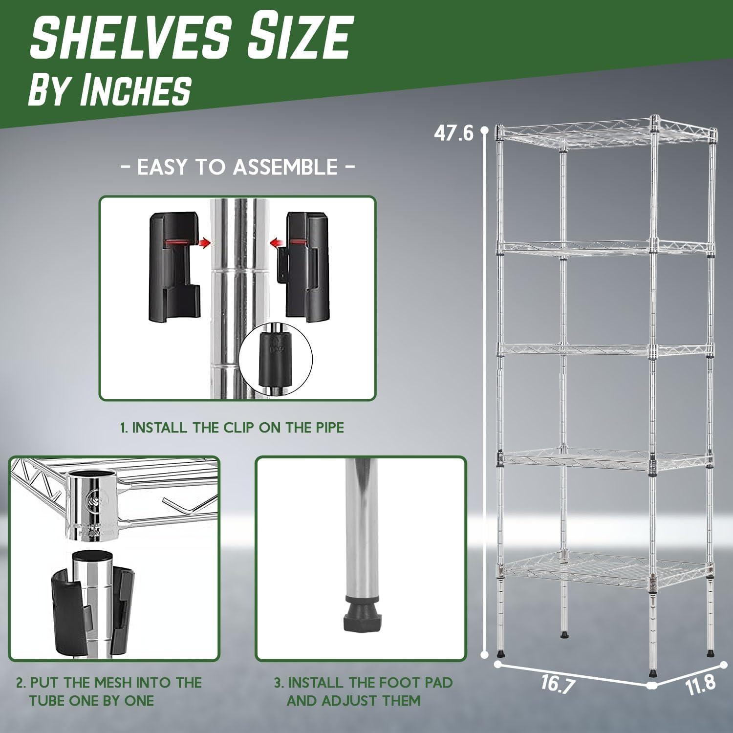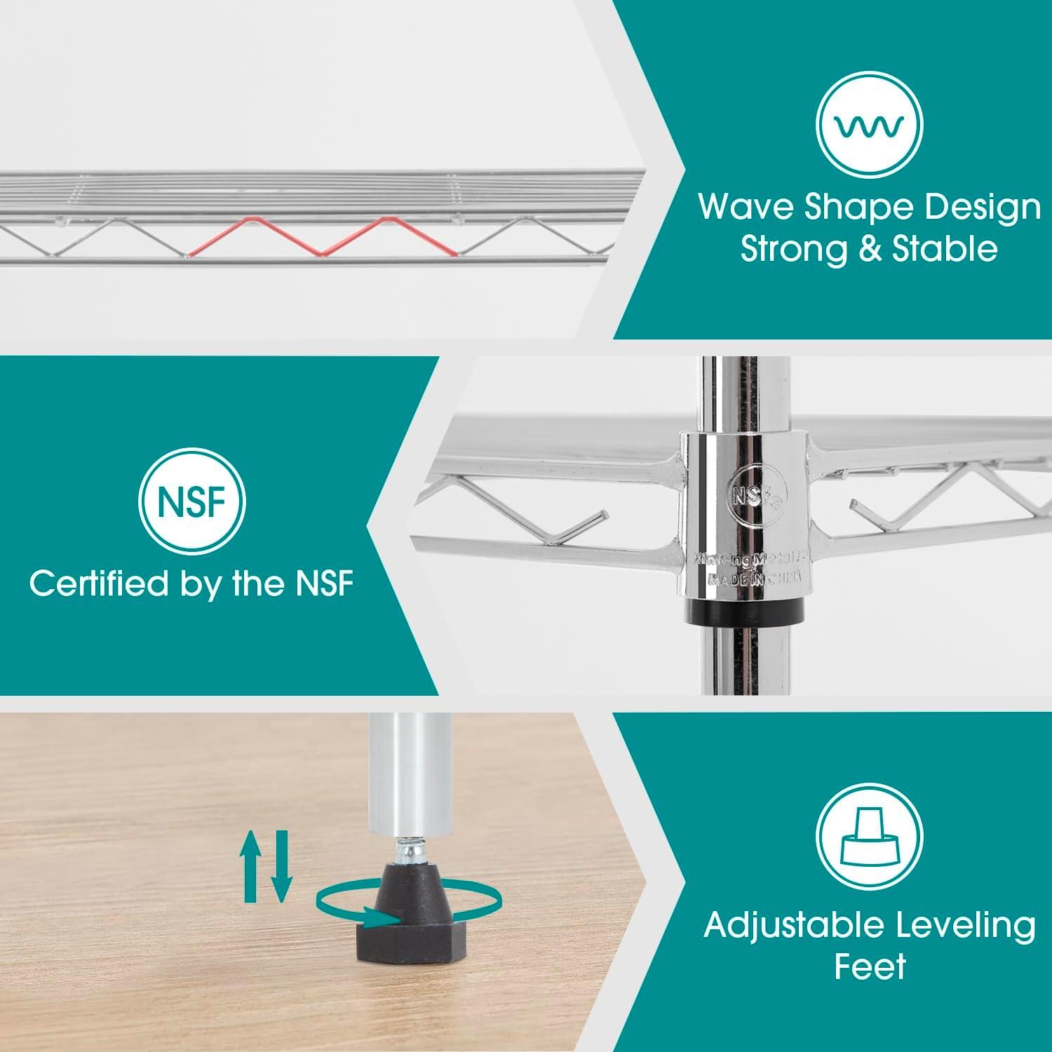 ADJUSTABLE DESIGN FOR FLEXIBILITY: Customize shelf spacing to fit tall, bulky, or oddly shaped items, perfect for adapting your wire shelf to evolving storage and organization needs.