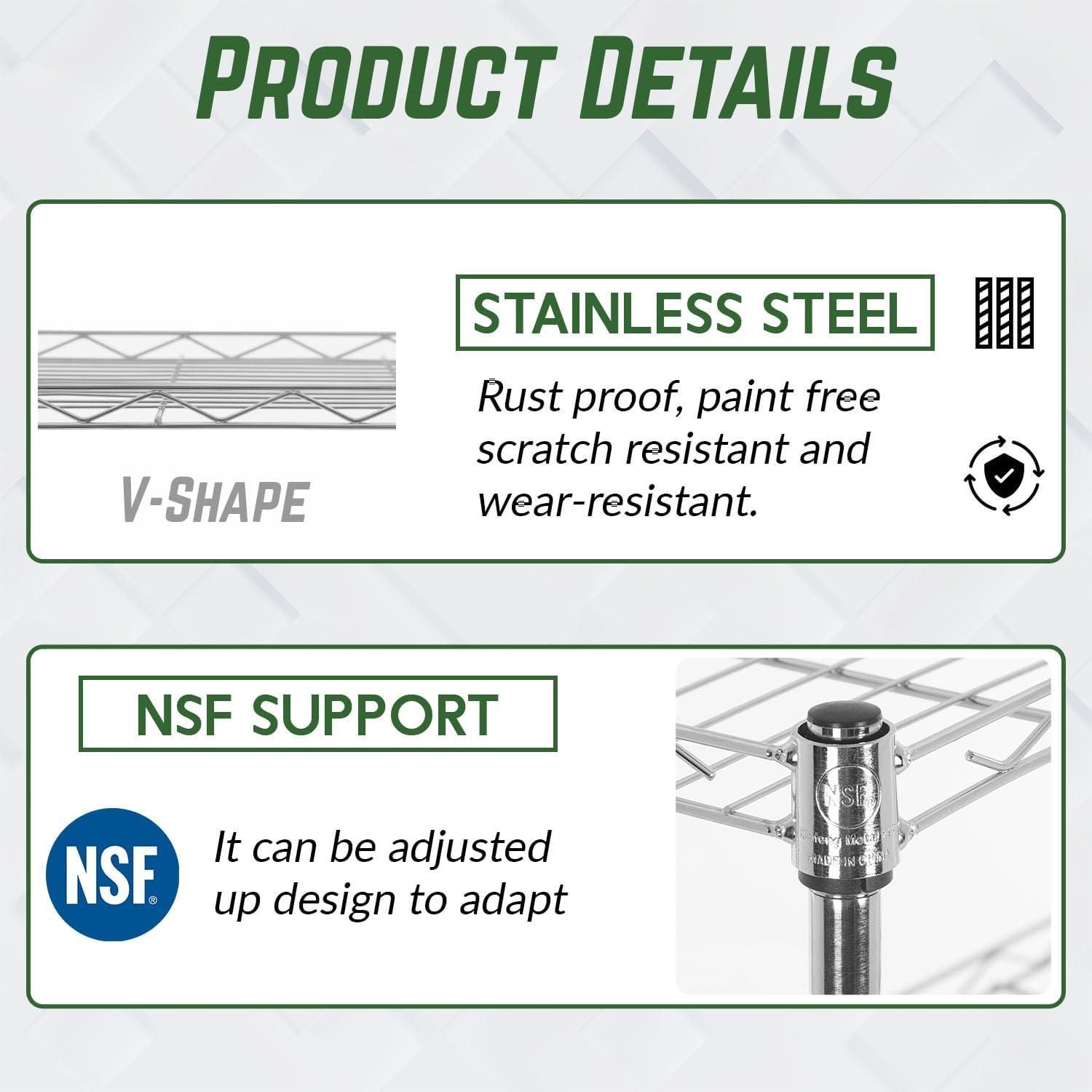 HEAVY-DUTY & VERSATILE STORAGE: Reinforced steel with V-shaped mesh holds up to 2100 lbs total (350 lbs per shelf) with feet levelers, or 510 lbs total with caster wheels for easy mobility.