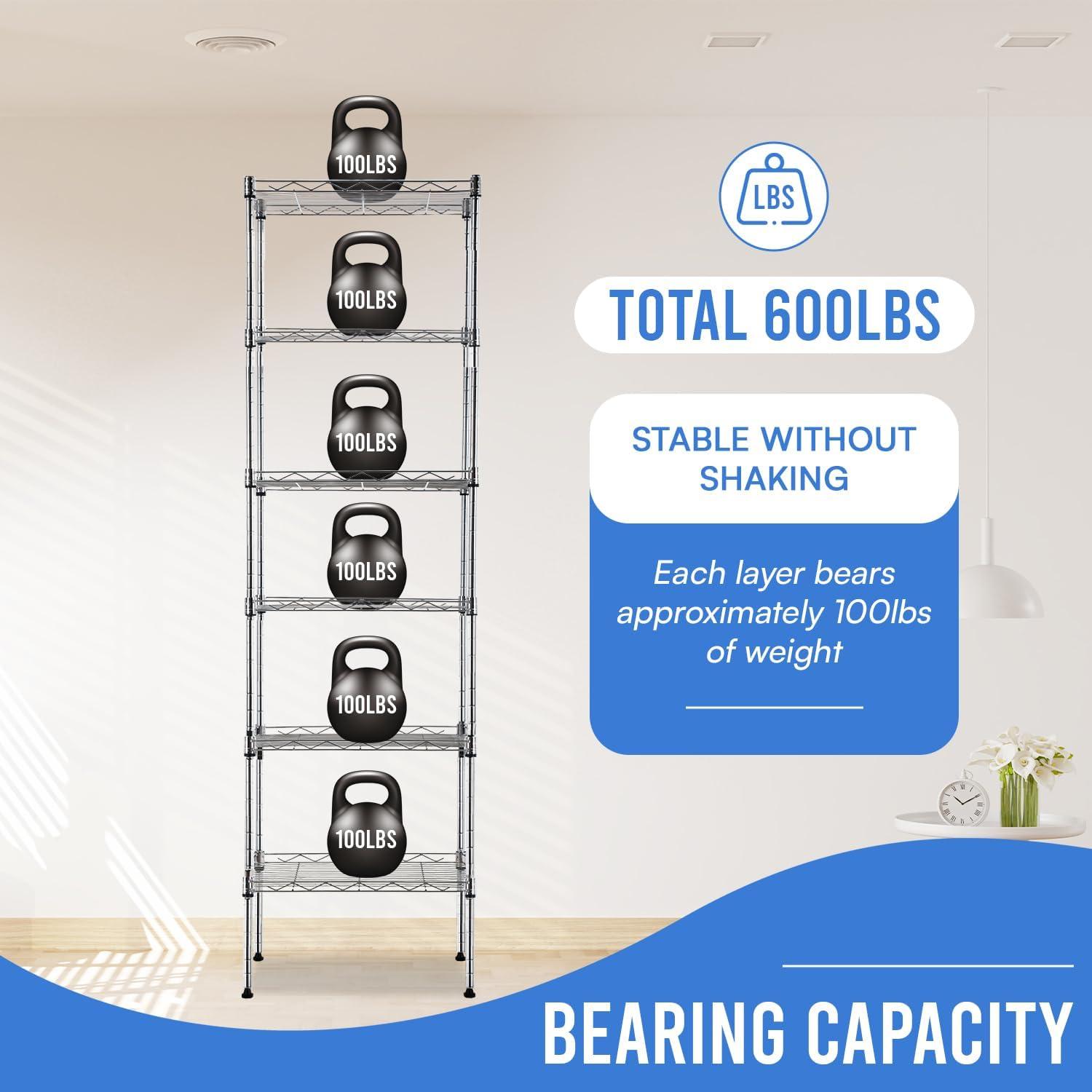 imagePayLessHere  6Tier Wire Shelf with Wheels  48quotx18quotx82quot  Chrome  Adjustable Racks  HeavyDuty Storage Shelves Holds Upto 510 lbs  RustResistant NoTool Assembly  for Home Garage ShelvingBlack