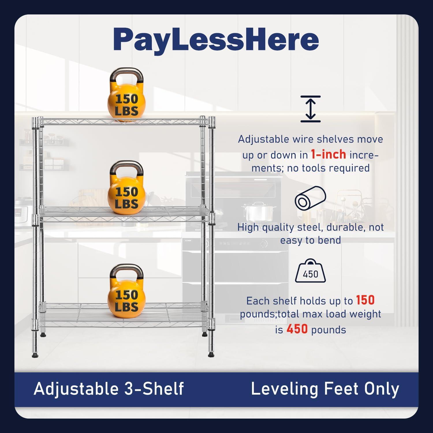PayLessHere | 6-Tier Wire Shelf with Wheels | 48″x18″x82″ | Chrome | Adjustable Racks | Heavy-Duty Storage Shelves, Holds Upto 510 lbs | Rust-Resistant, No-Tool Assembly | for Home, Garage Shelving(Chrome)